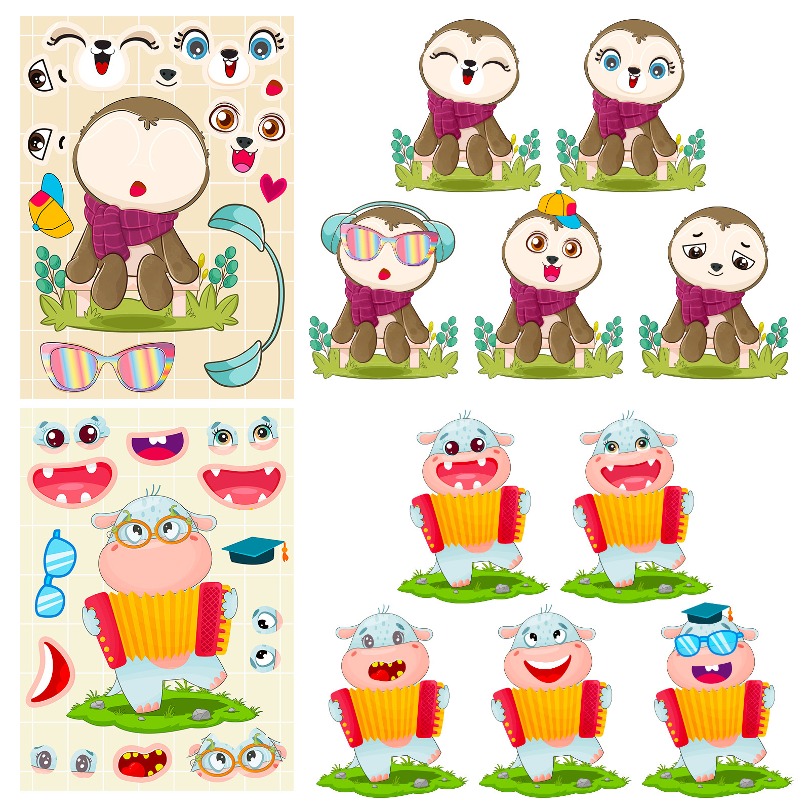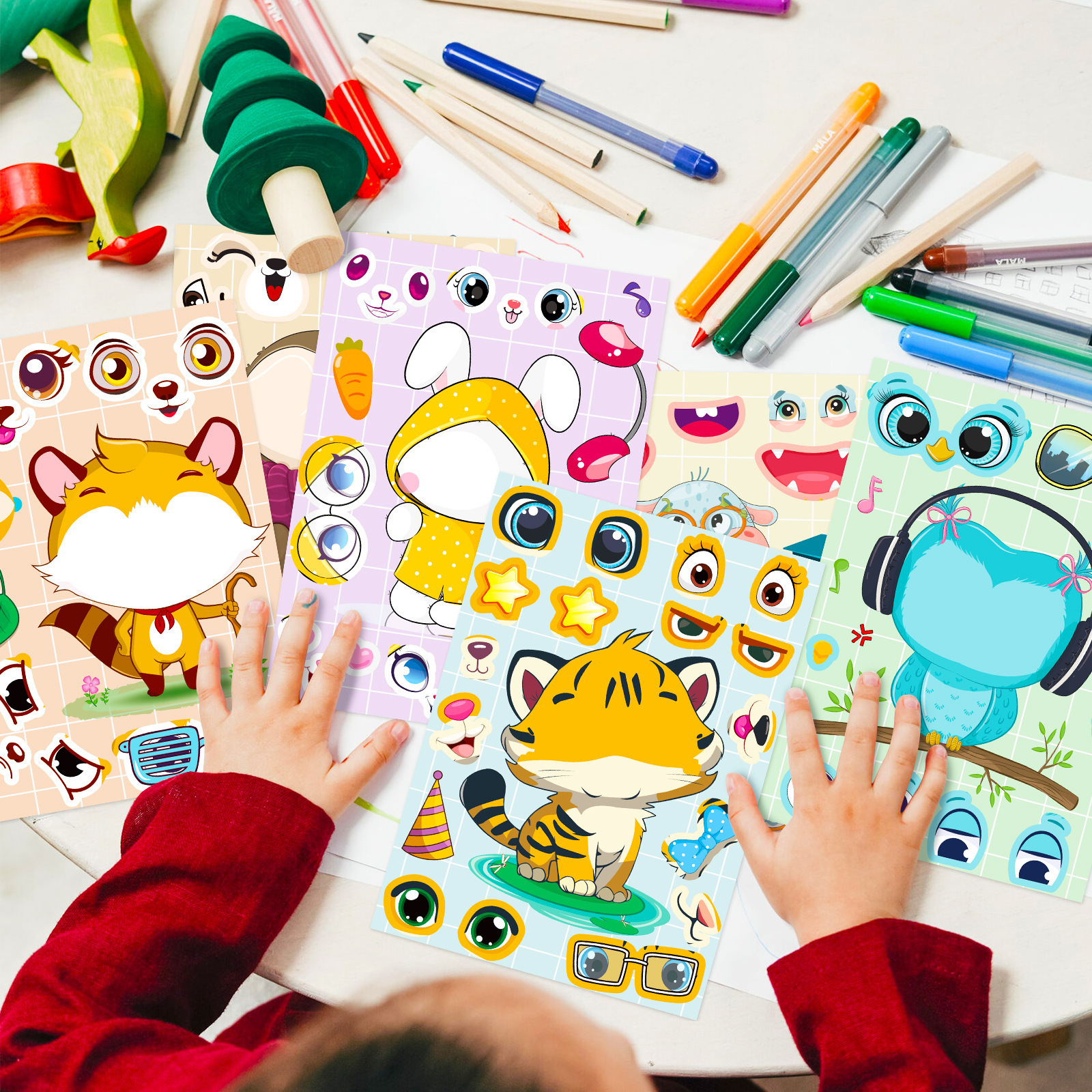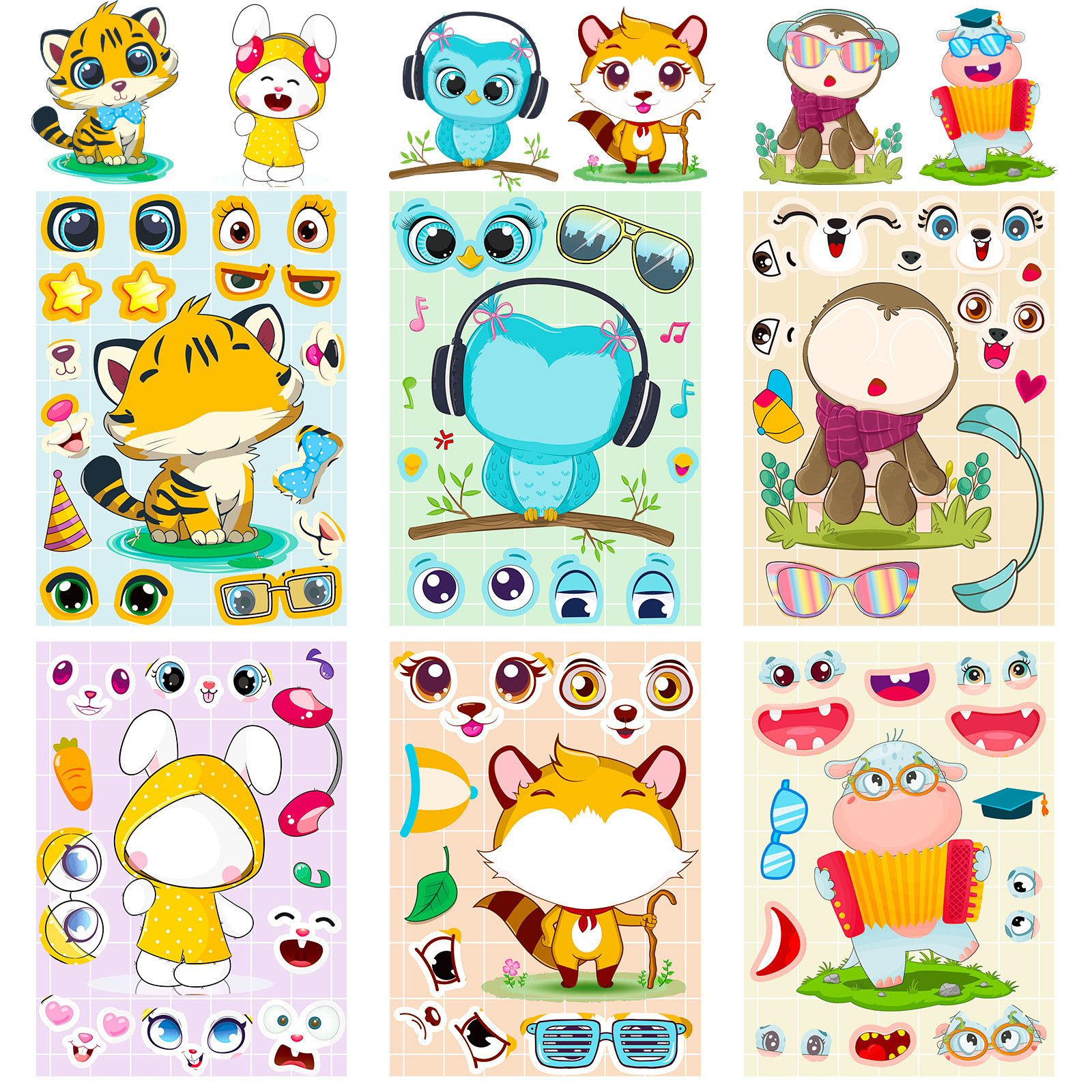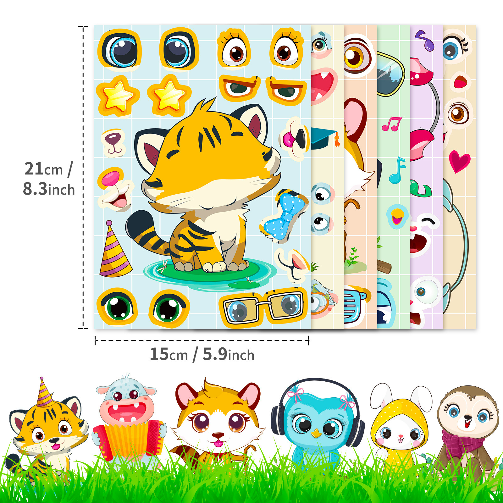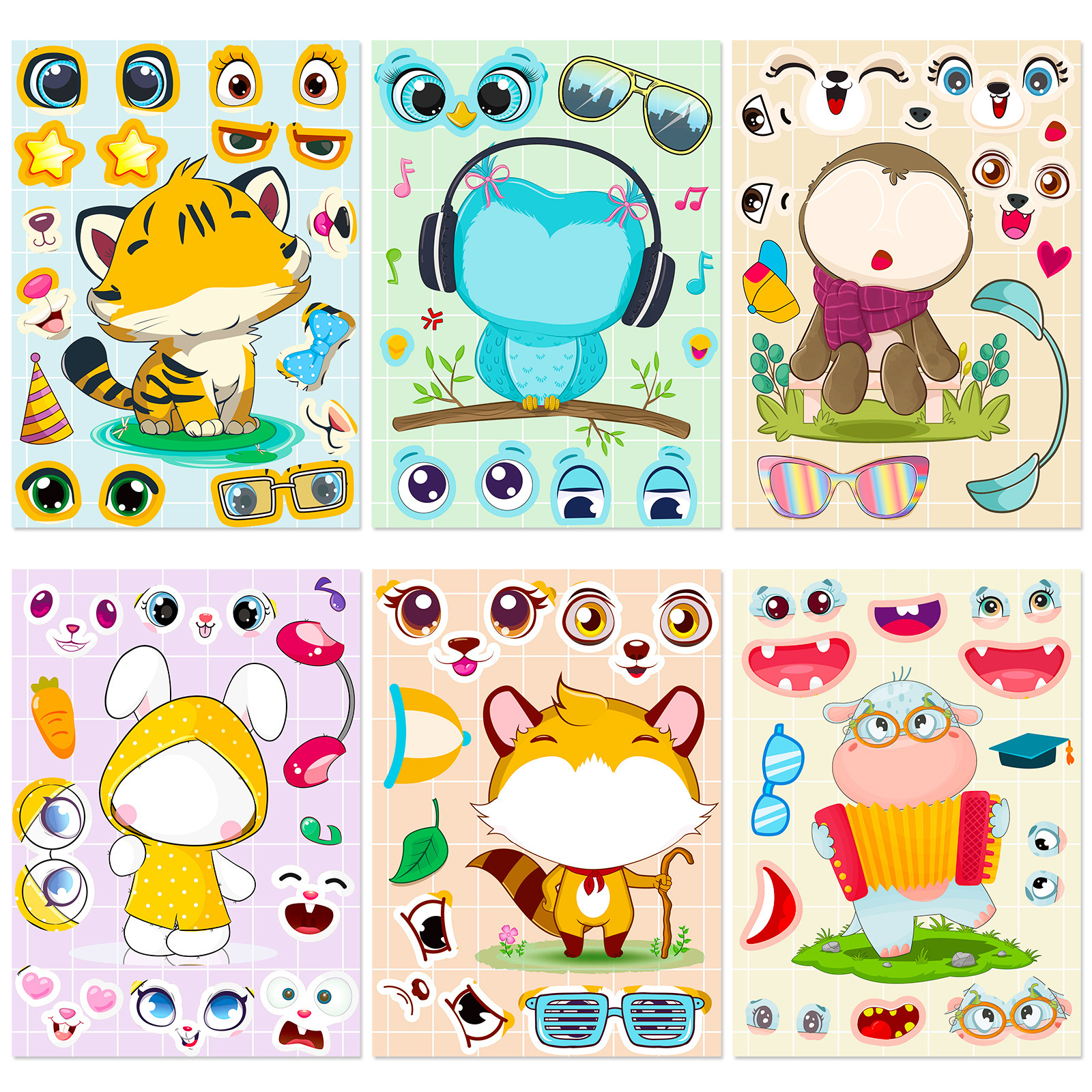 6 장/팩 어린이 교육 장난감 창조적 인 수제 DIY 만화 스티커 작은 동물 퍼즐 스티커 어린이 스티커