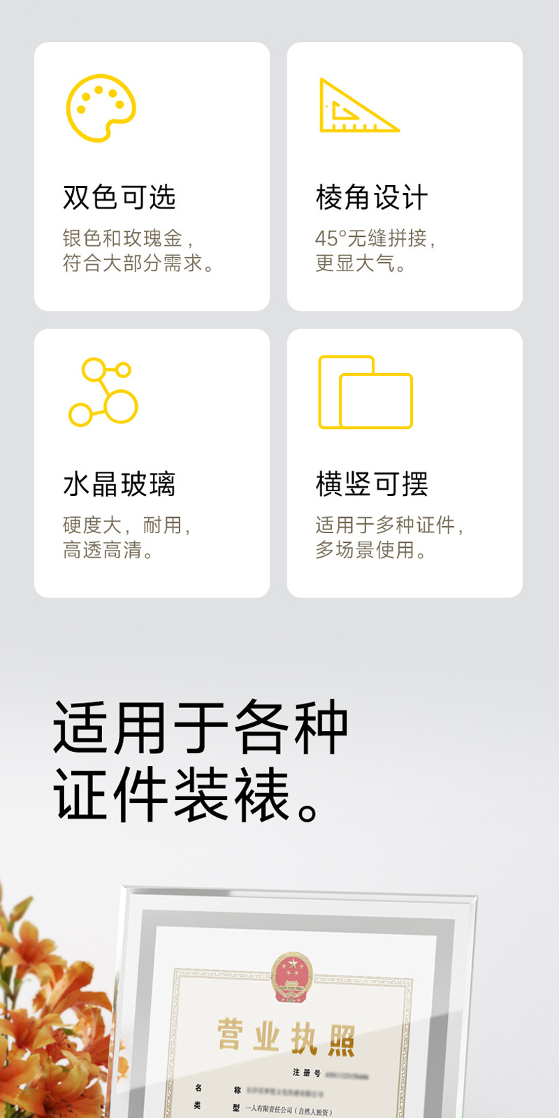 간단한 6 인치 7 인치 A4 투명 크리스탈 유리 사진 프레임 명예 인증서 사진 프레임 사진 프레임 도매