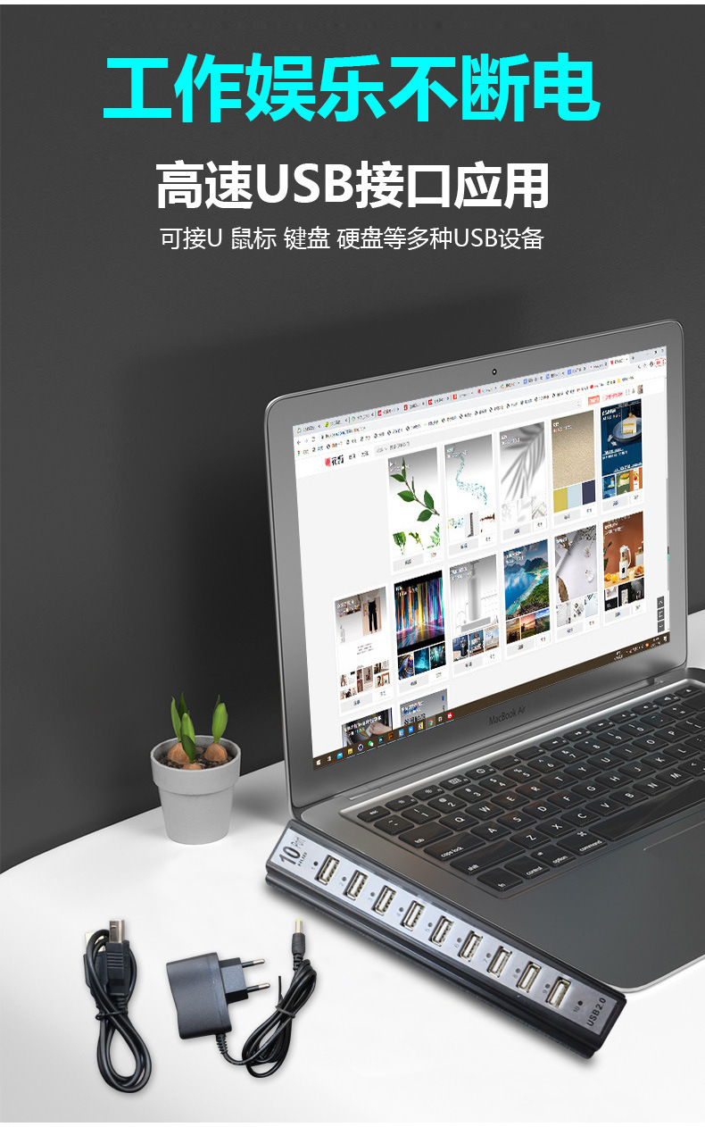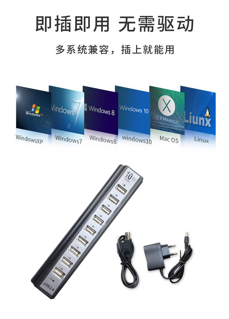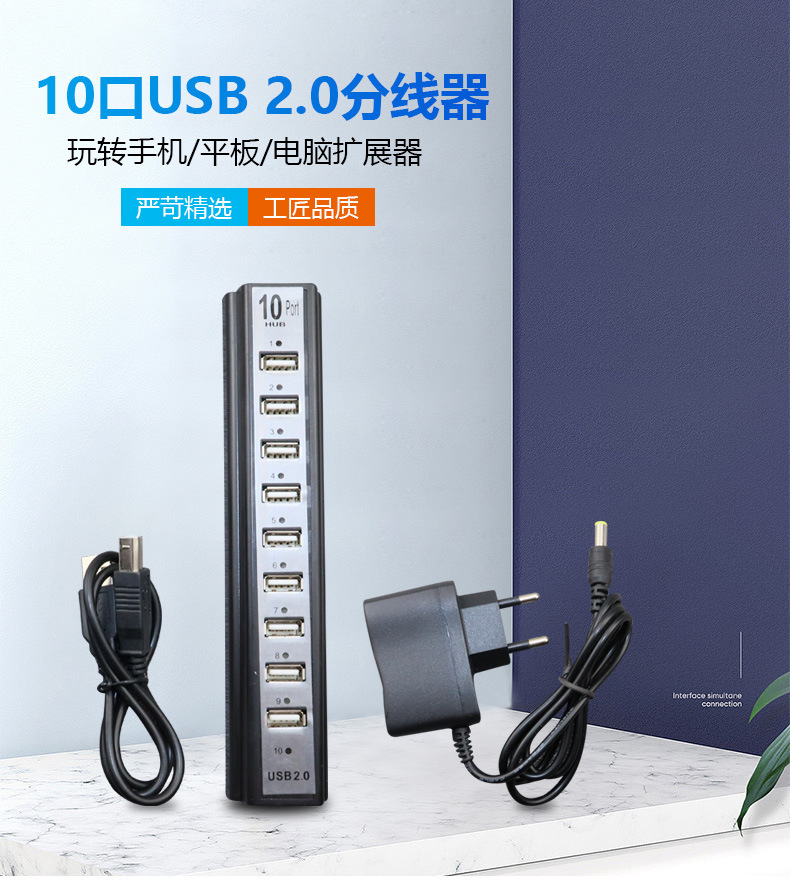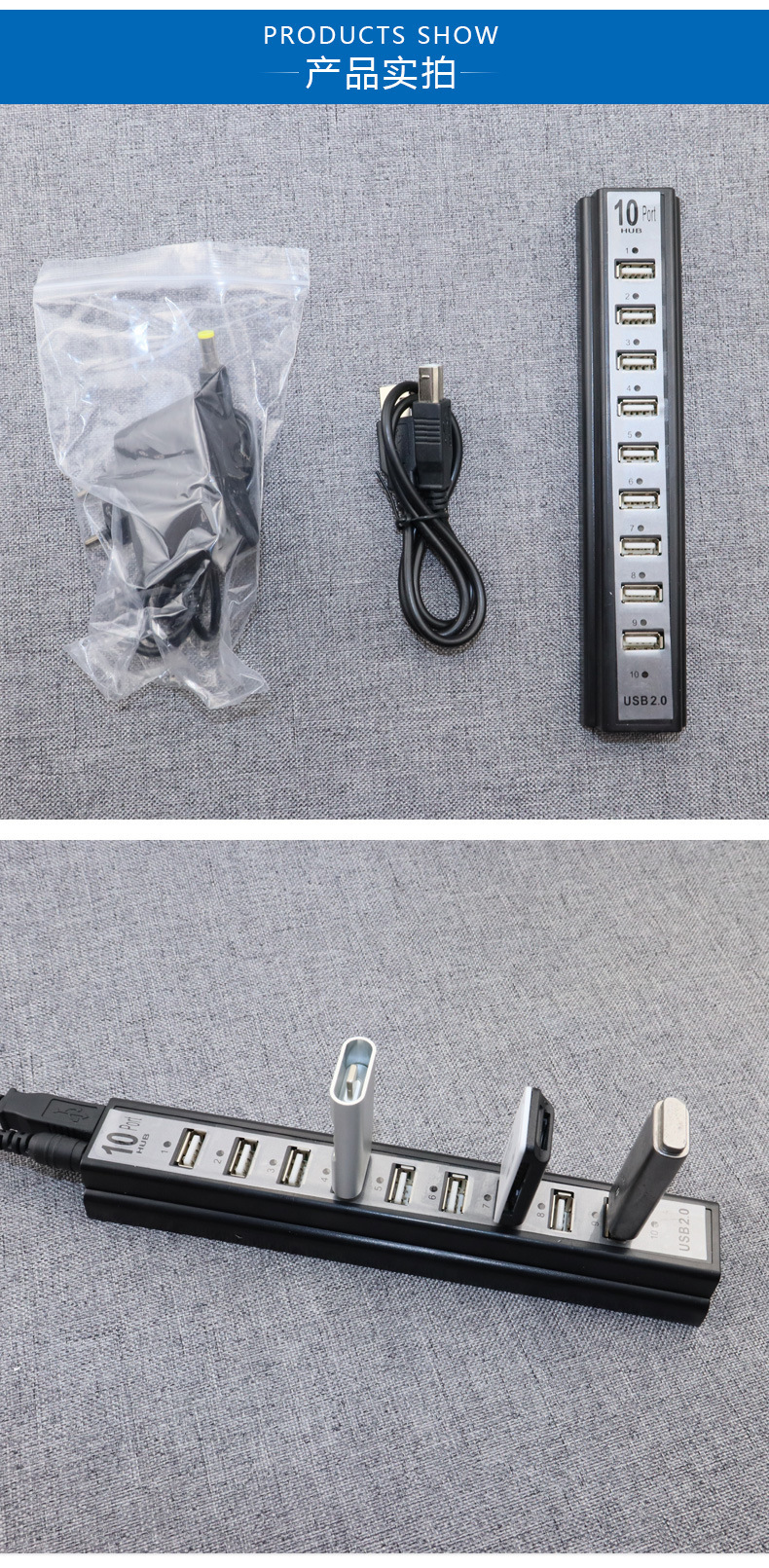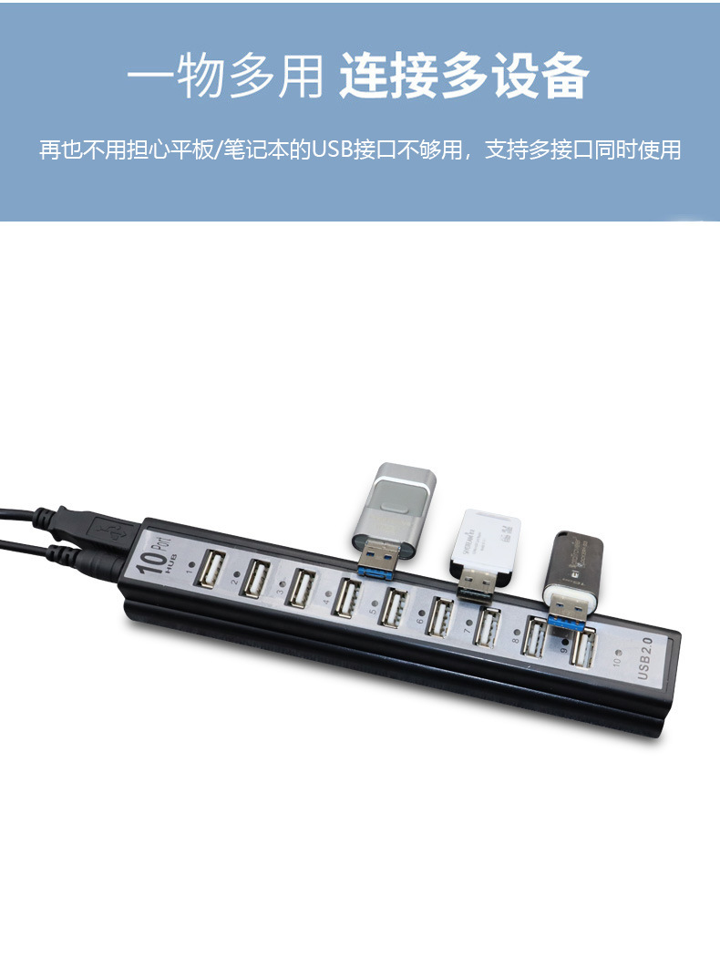 USB 2.0허브 10 포트 스플리터 USB2.0HUB 10 포트 1 대 10 익스텐더