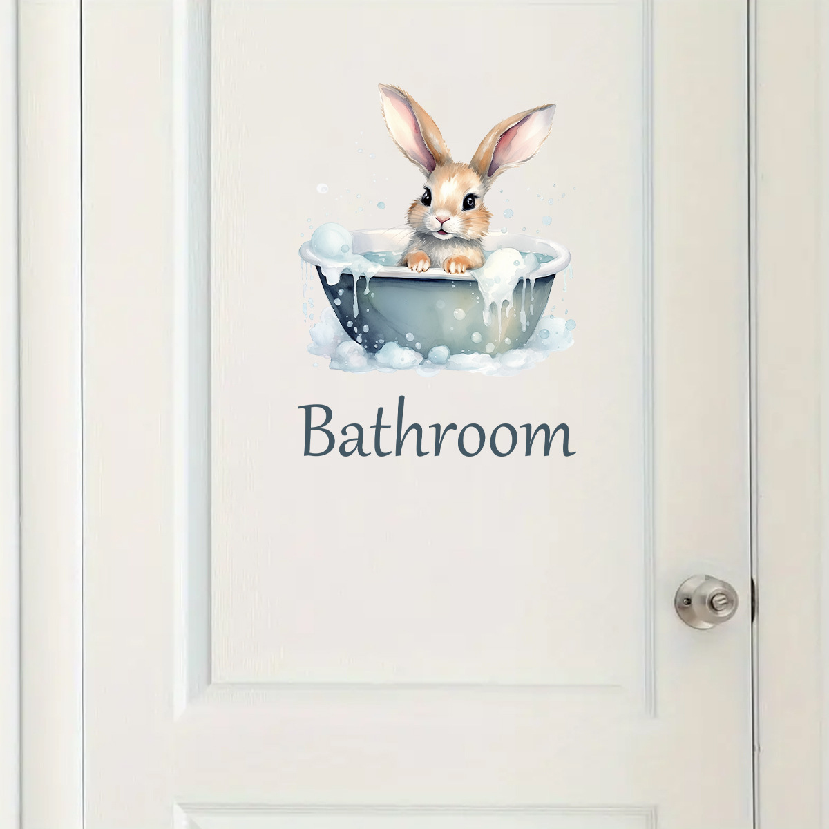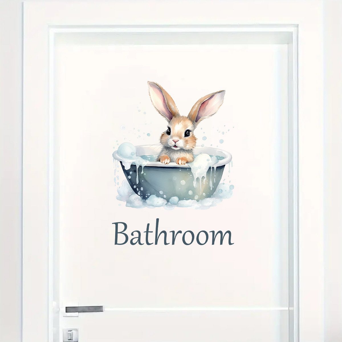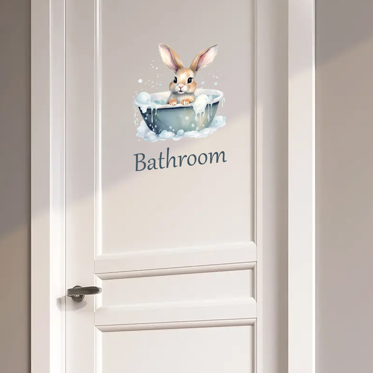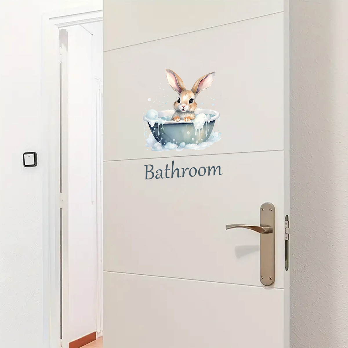 BR0104C 만화 거품 목욕 귀여운 토끼 자기 접착 문 스티커 벽 스티커 욕실 화장실 방 장식 스티커