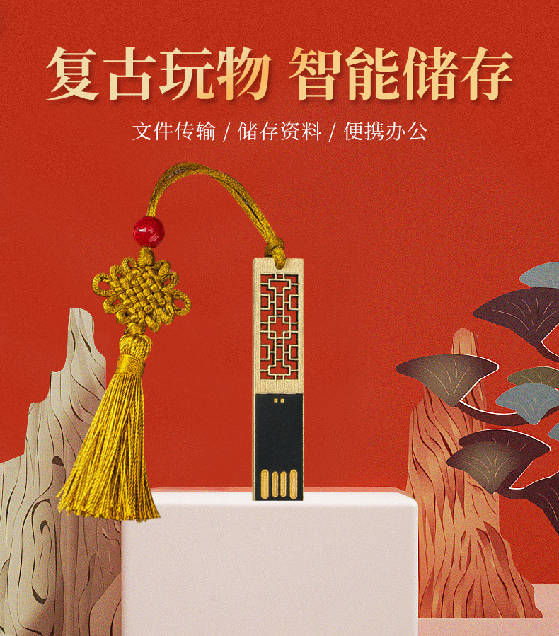 • 자금성 [레트로 오일 가장자리 나무 펜 16G 창 꽃 U 디스크 4 선 전원 공급 장치] 4 피스 레드