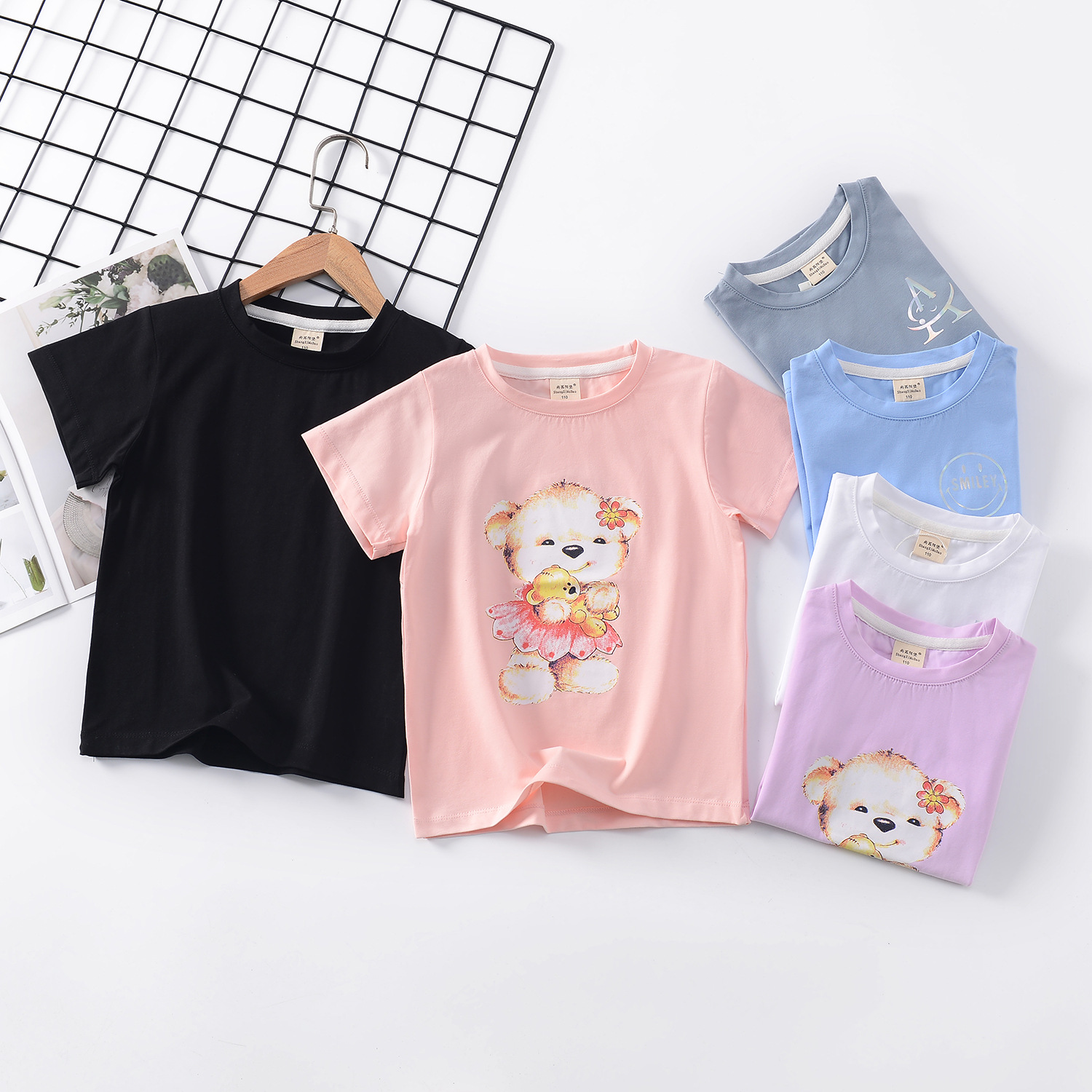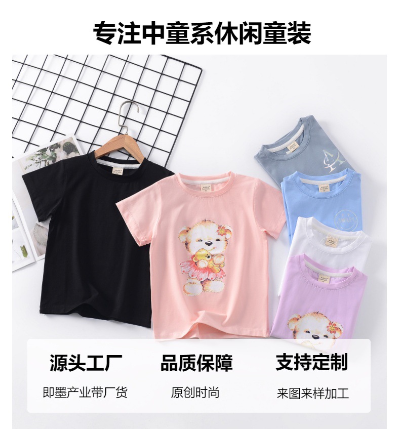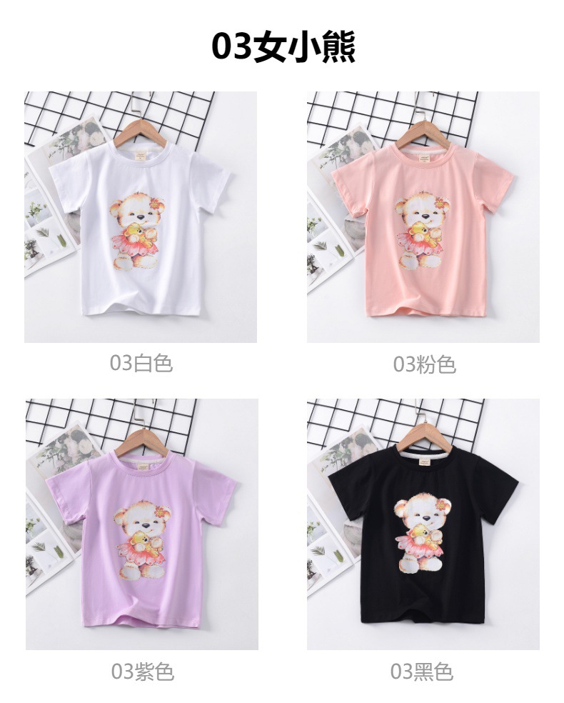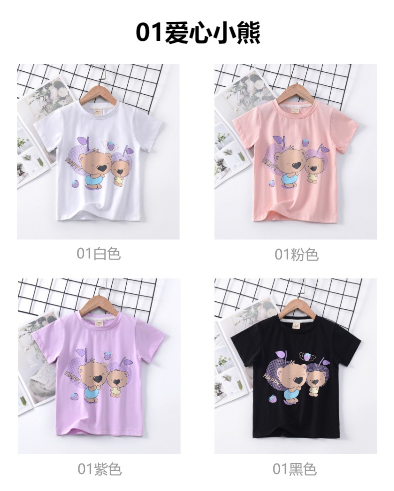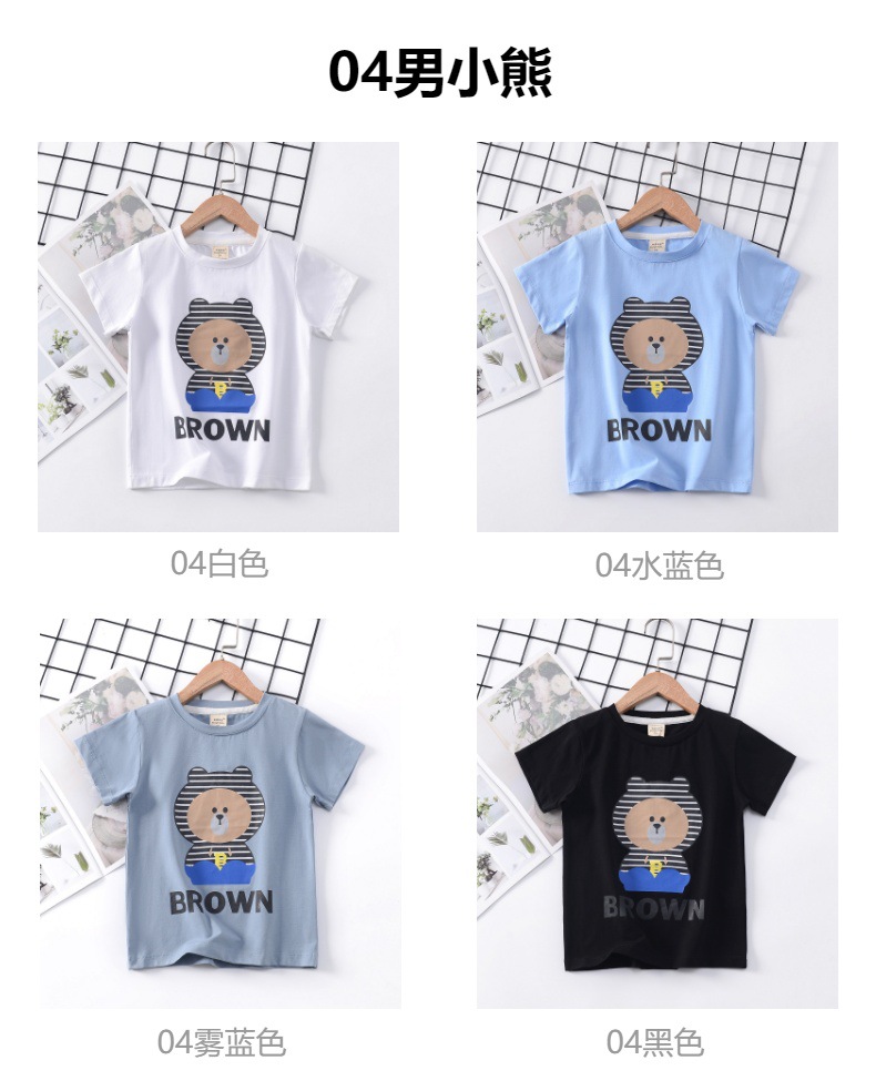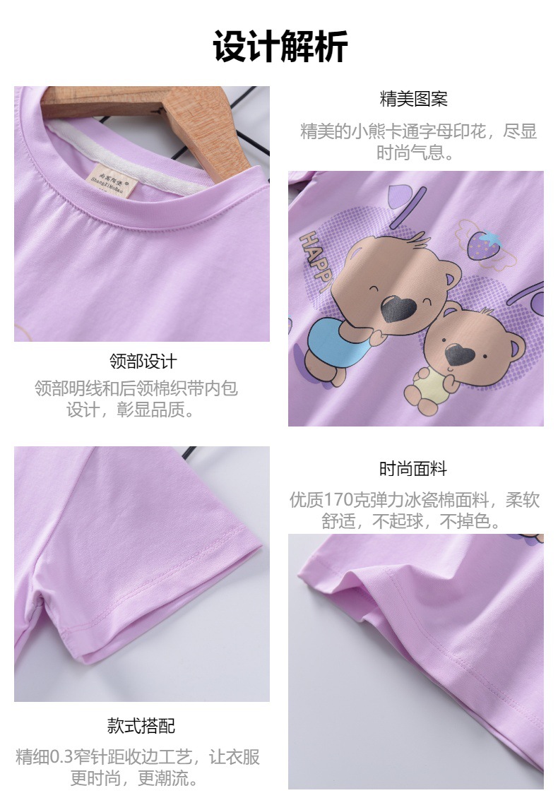 2024 년 여름 새로운 한국 스타일 어린이 반팔 곰 인쇄 소녀 티셔츠 얼음 도자기 면편지 소년 티셔츠 아동복스토어 가기