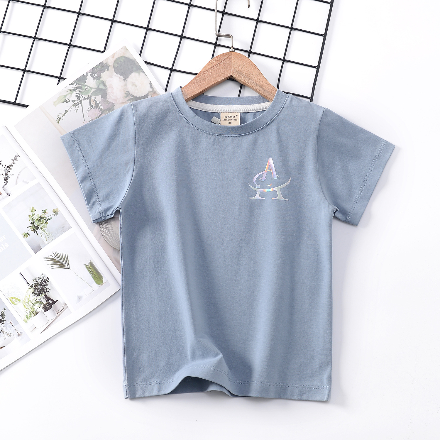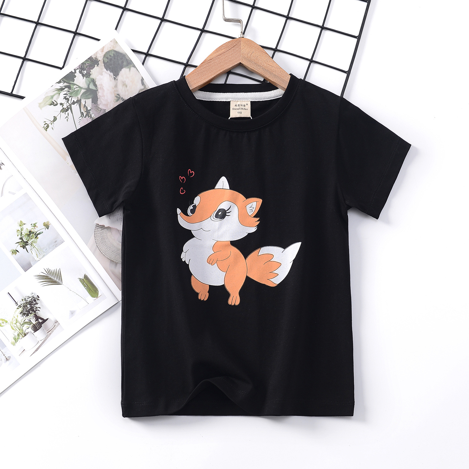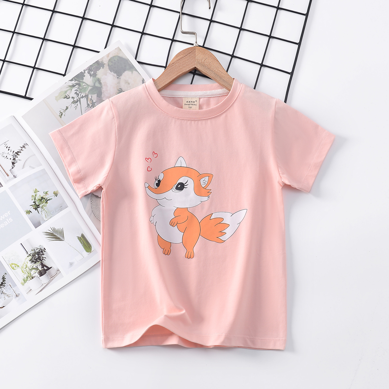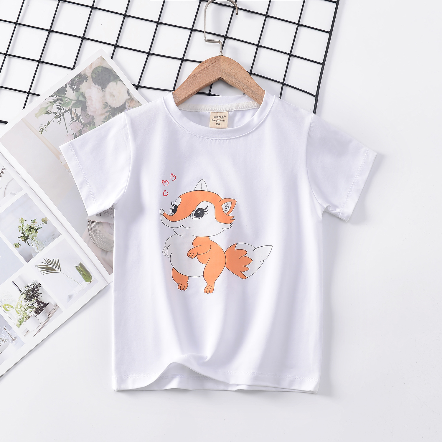 2024 년 여름 새로운 한국 스타일 어린이 반팔 곰 인쇄 소녀 티셔츠 얼음 도자기 면편지 소년 티셔츠 아동복스토어 가기