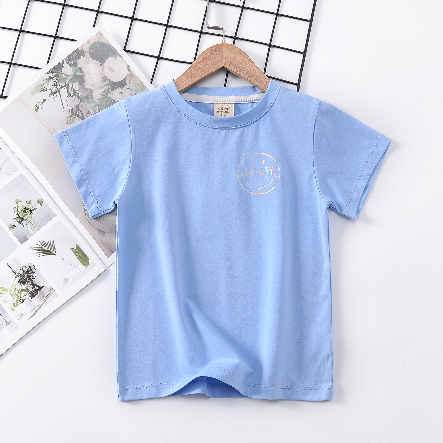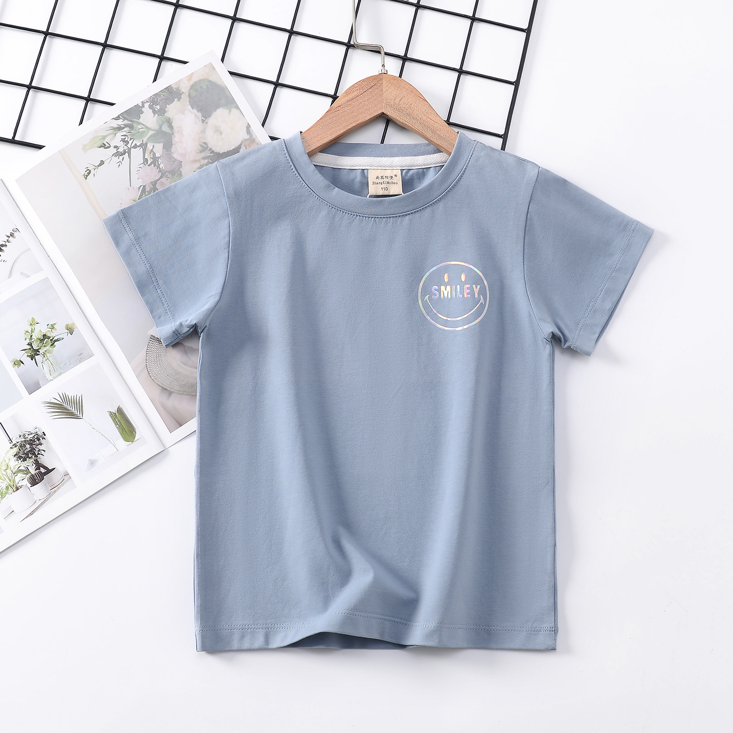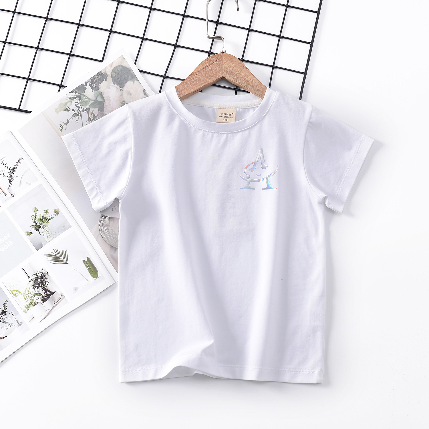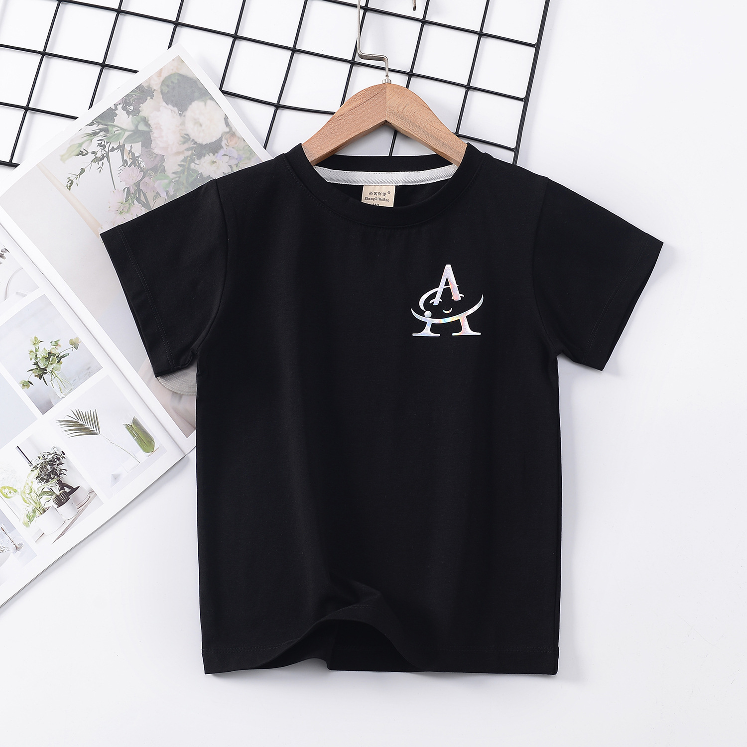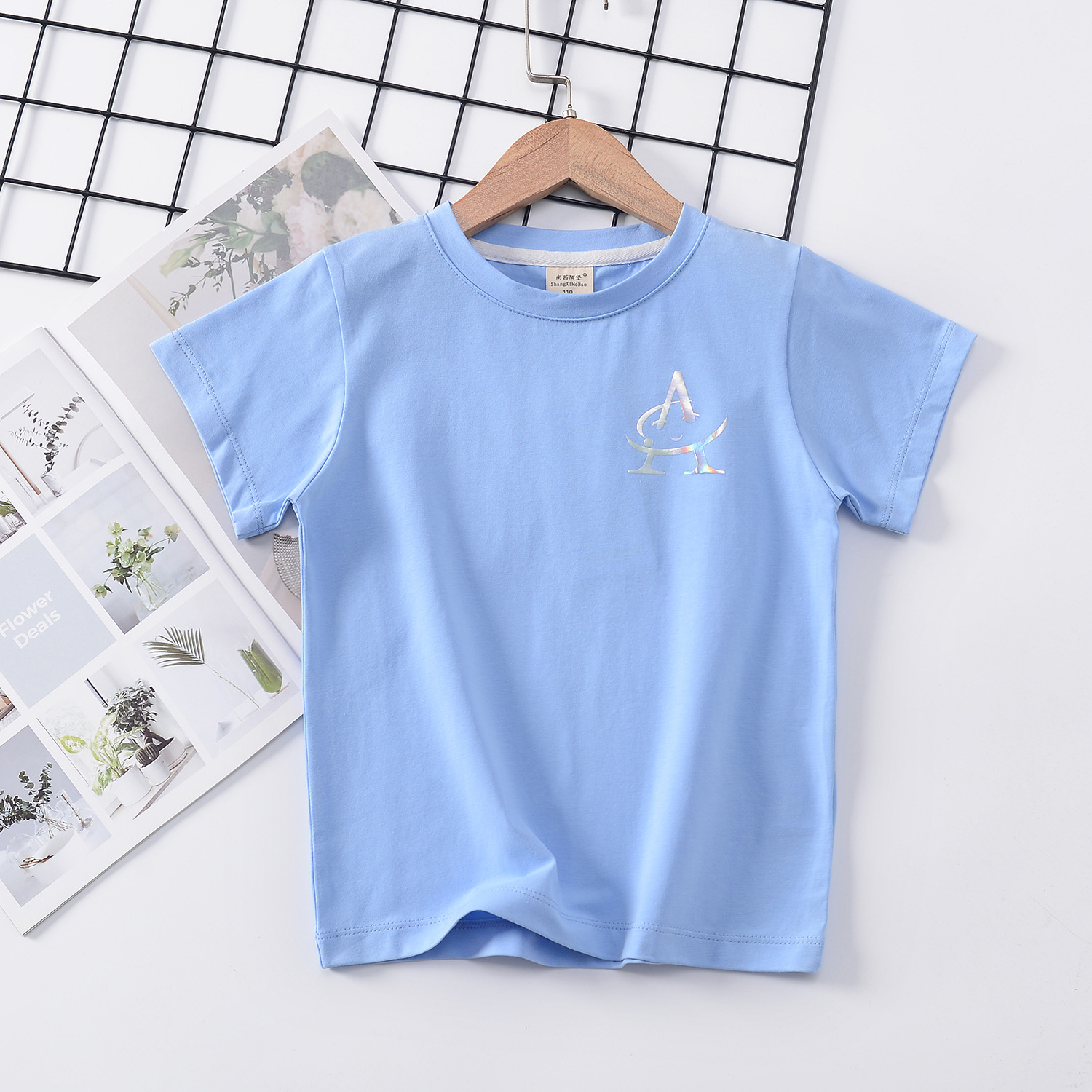 2024 년 여름 새로운 한국 스타일 어린이 반팔 곰 인쇄 소녀 티셔츠 얼음 도자기 면편지 소년 티셔츠 아동복스토어 가기