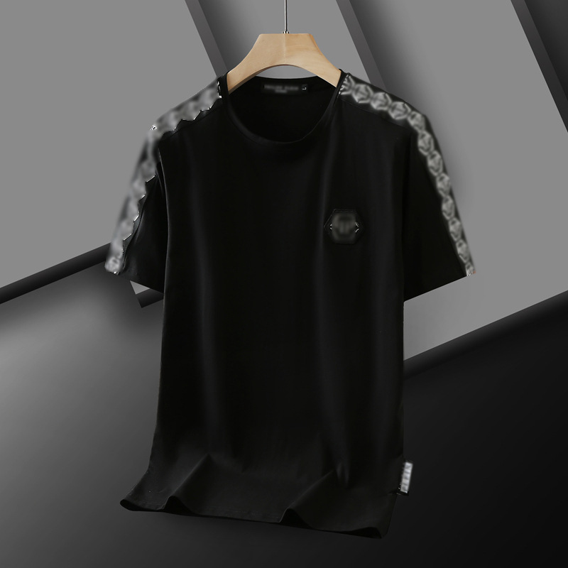 2024 봄과 여름 새로운 패션 브랜드 PP 남성 티셔츠 하이 퀄리티 간단한 리본 플러스 사이즈 둥근 목 짧은 소매 남성베이스