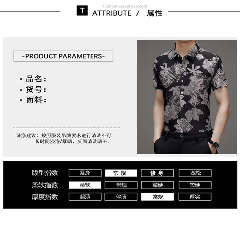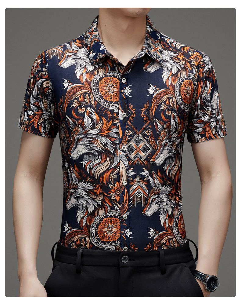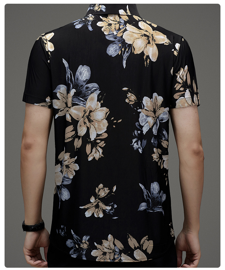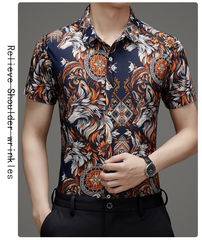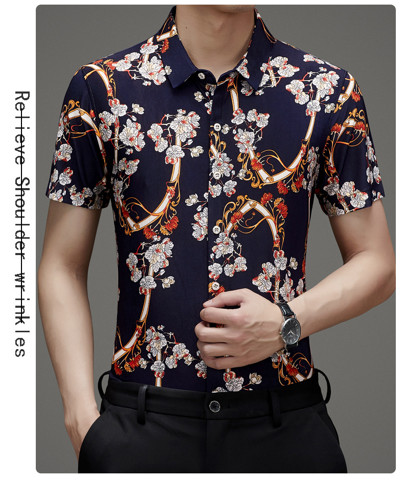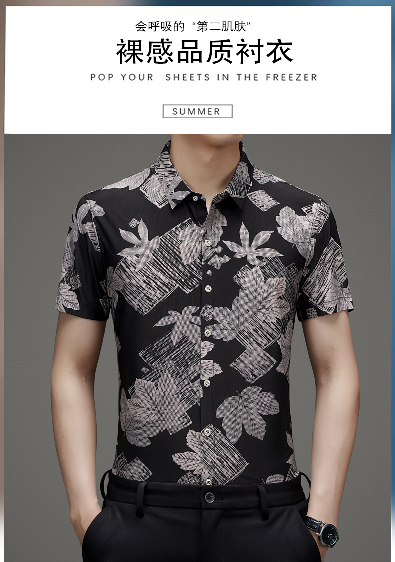 해변 여행 자카드 아이스 실크 셔츠 남자의 반팔 새로운 중년 및 젊은 여름 캐주얼 비 다림질 옷깃 최고 유행 남성스토어 가기