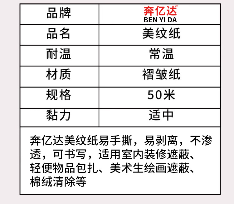 Benyida 마스킹 테이프 스프레이 페인트 마스킹 벽 장식 Traceless Tearable 접착제 없음 강한 접착 종이 테이프 도매