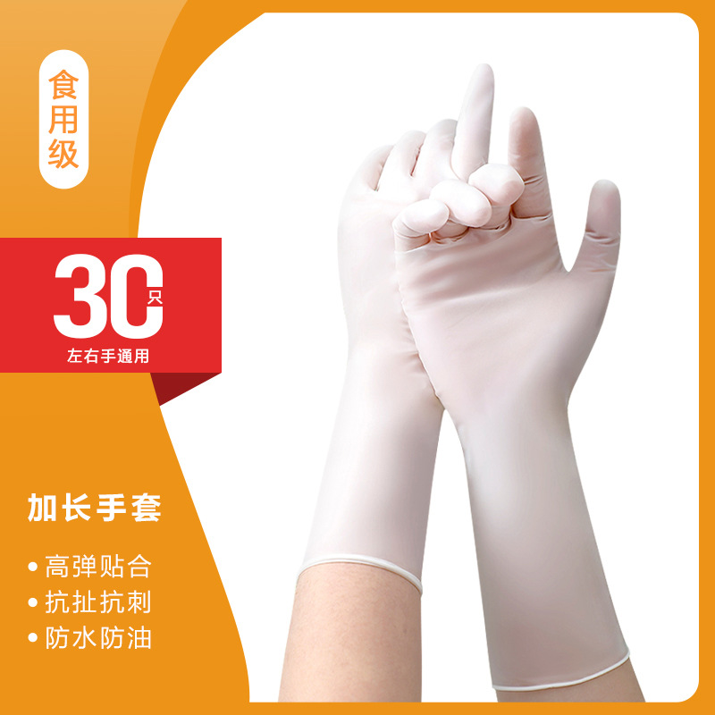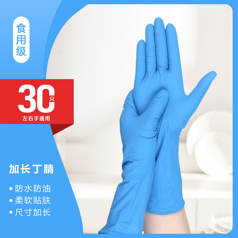 강방 12 인치 확장 블루 니트릴 방수 장갑 미세 내구성 가정용 주방 청소 식품 가공 패턴 염색 자수스토어 가기