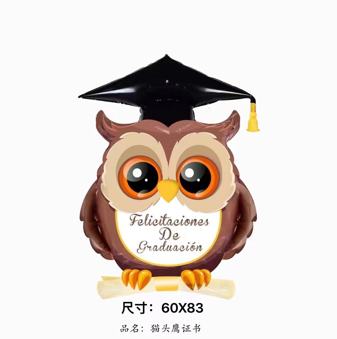 아마존 크로스보더 졸업 시리즈 팬더 올빼미 박사 알루미늄 필름 풍선 장식 소품 알루미늄 호일 만화 모양
