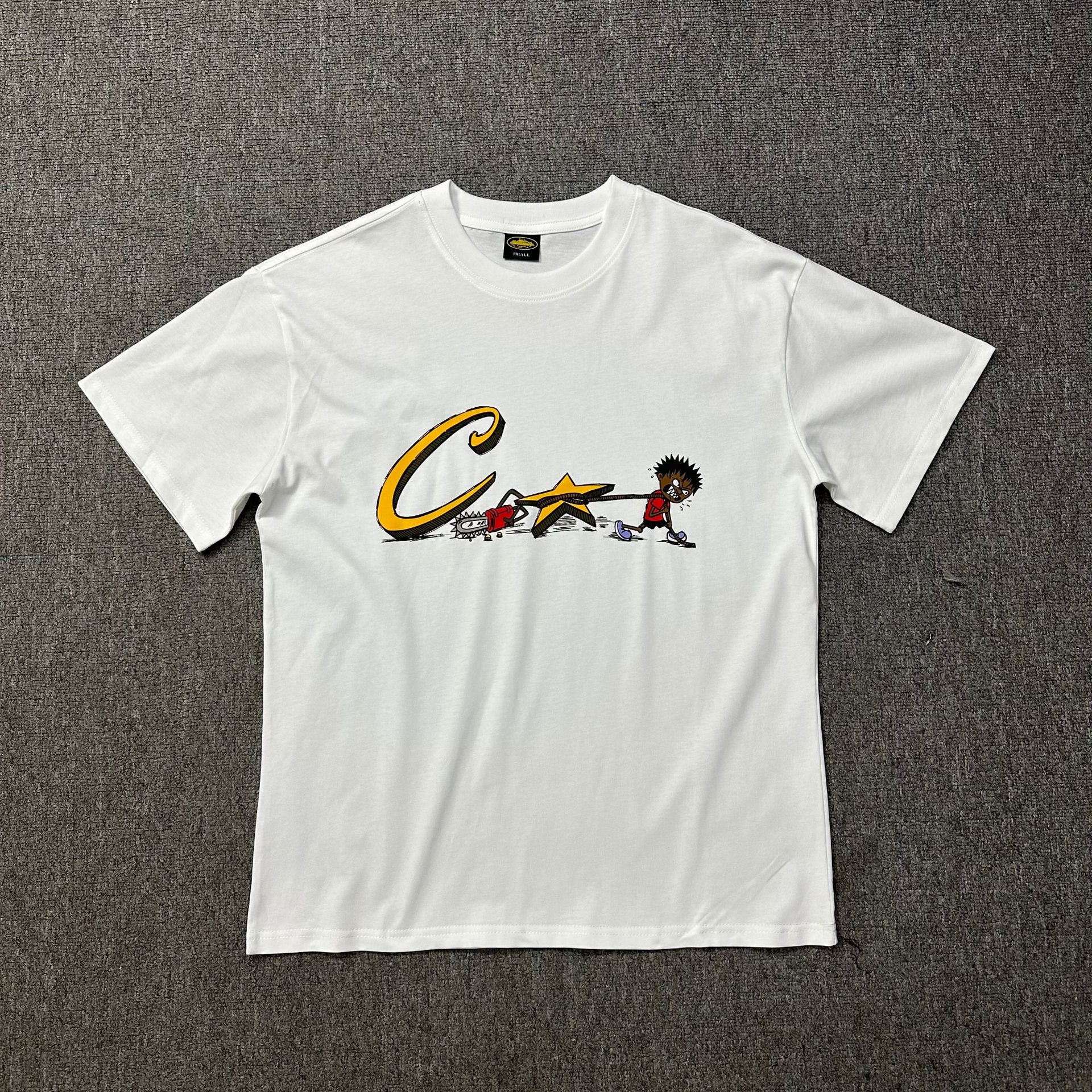 Corteiz 시리즈 폭탄 인쇄 짧은 소매 하이 스트리트 유럽과 미국 스타일 캐주얼 힙합 하프 슬리브 탑 남성과 여성