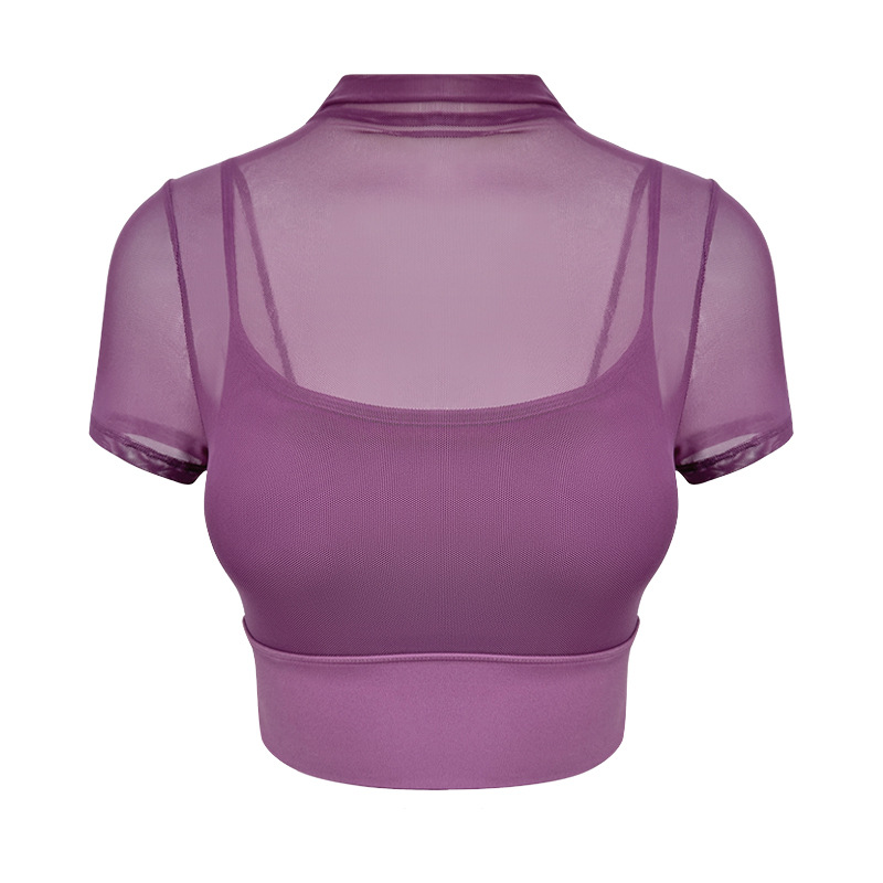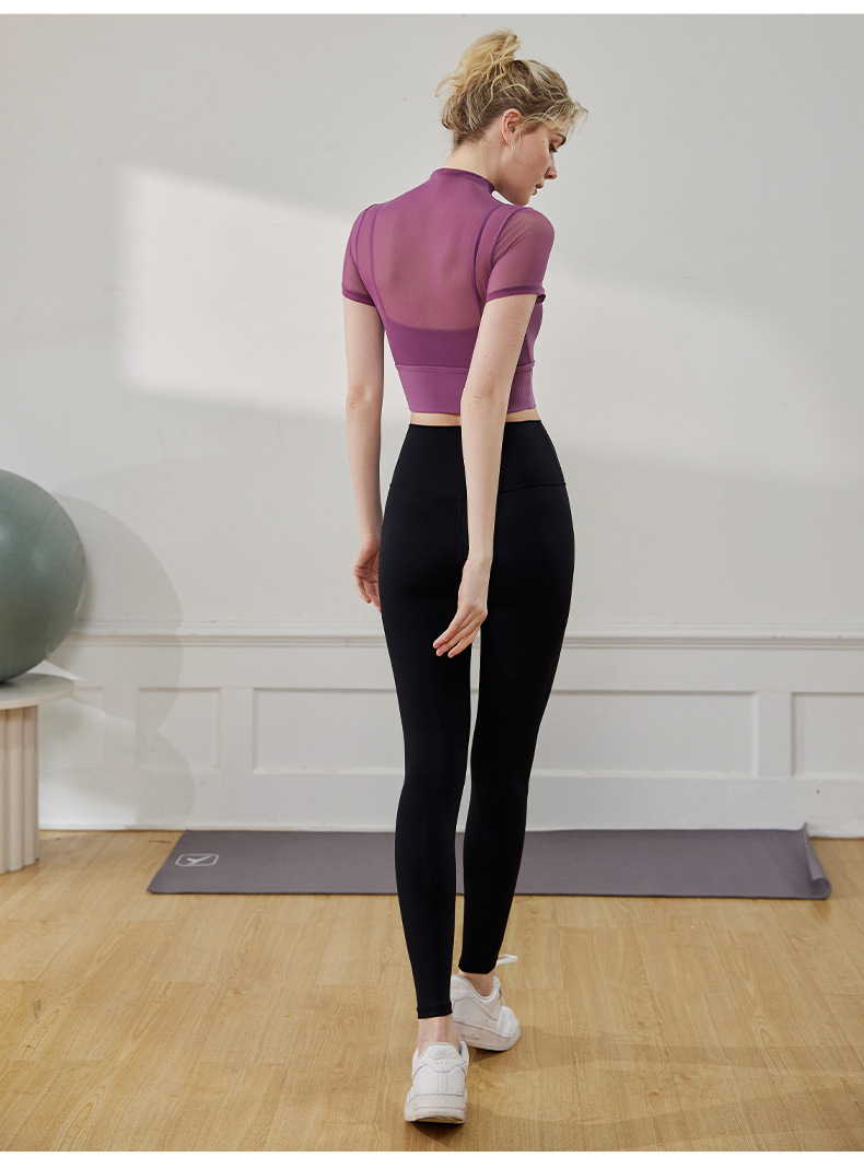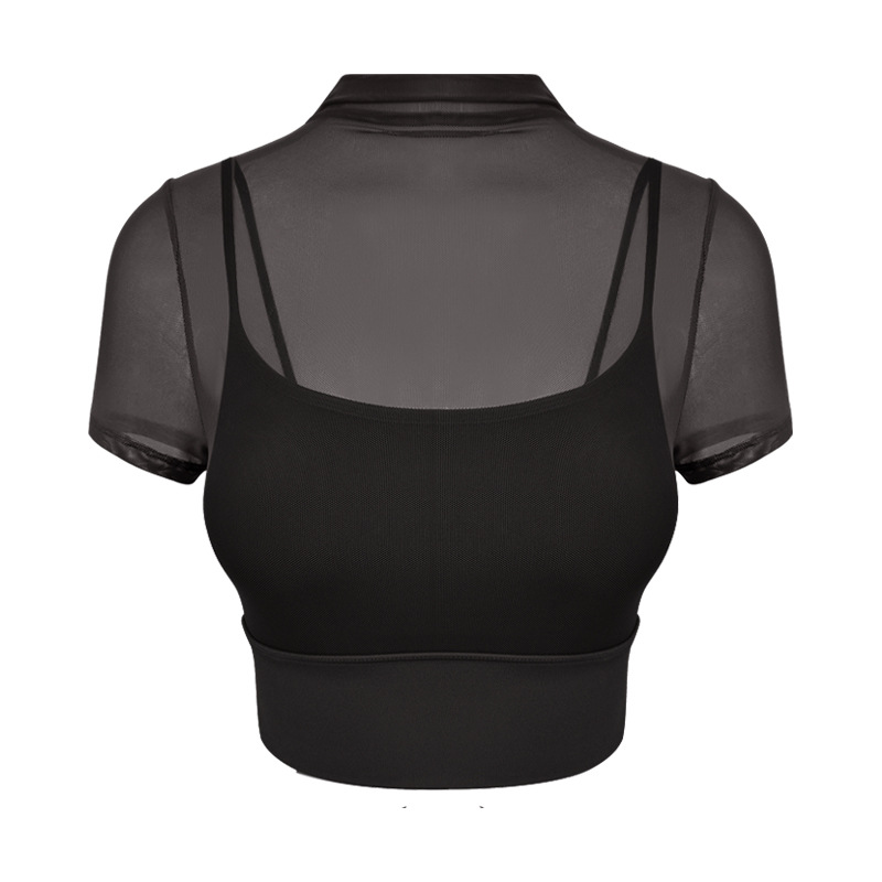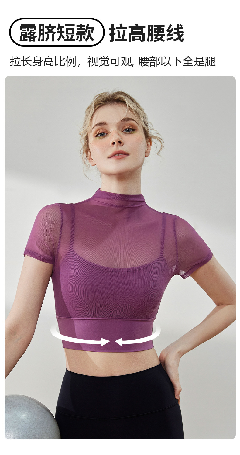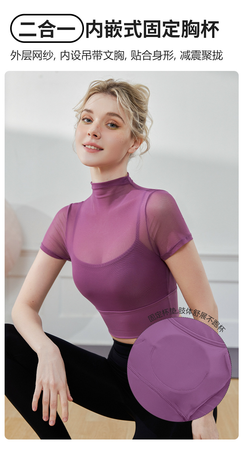 요가 세트 여성의 여름 국경 메쉬 가짜 투피스 피트니스 세트 스포츠 훈련 반팔 조끼 탑