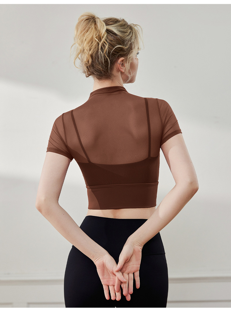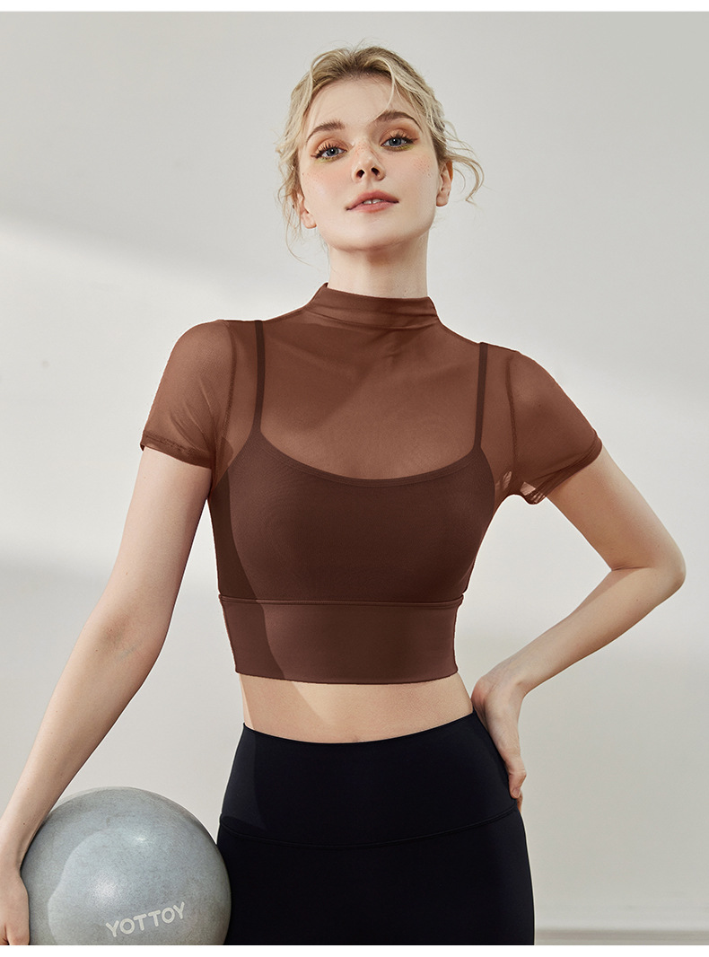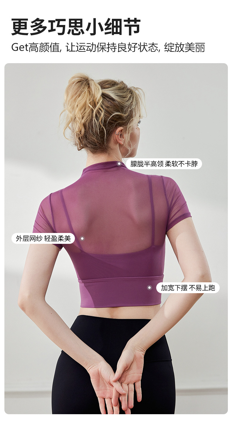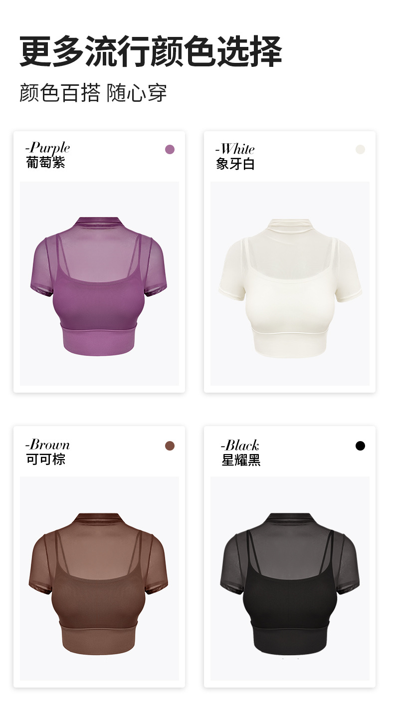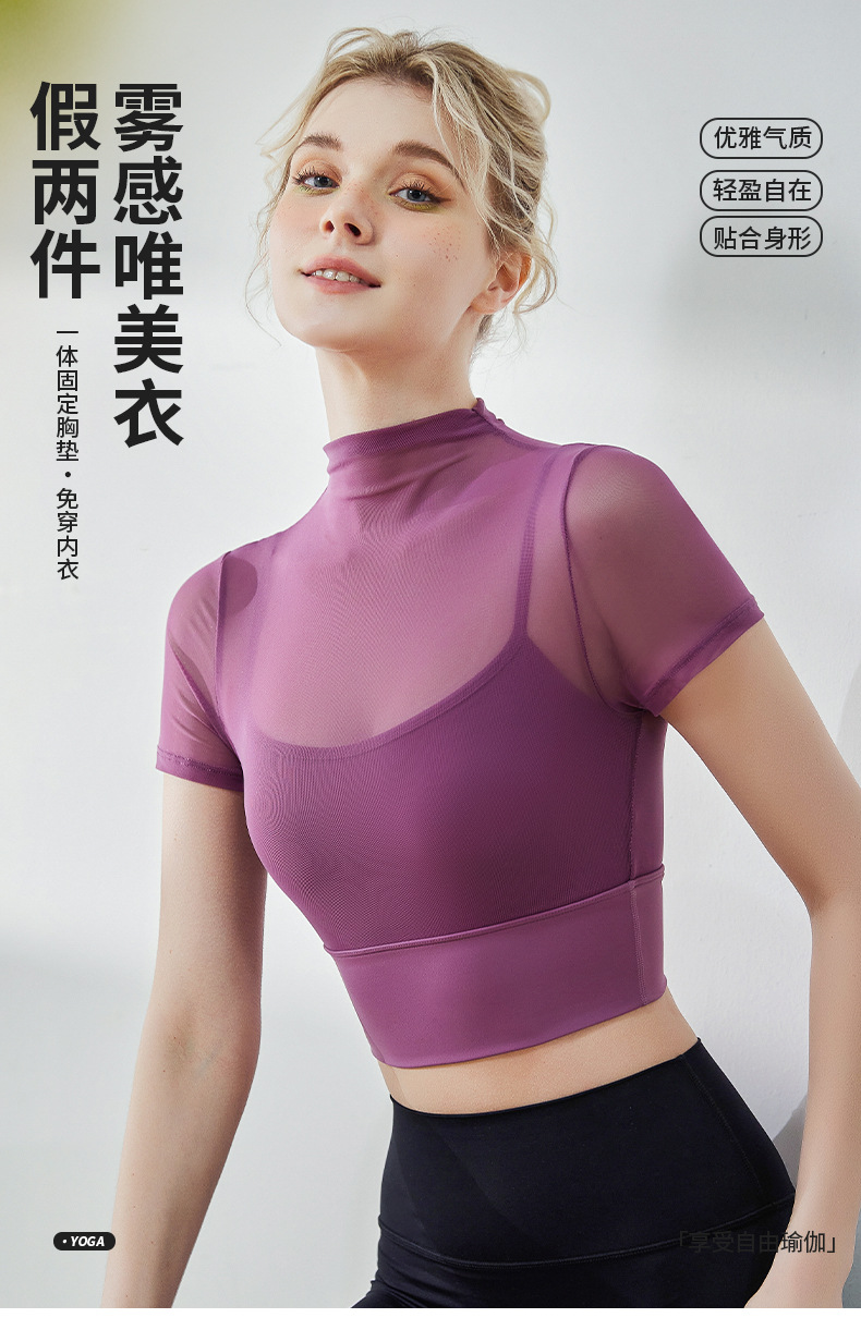 요가 세트 여성의 여름 국경 메쉬 가짜 투피스 피트니스 세트 스포츠 훈련 반팔 조끼 탑스토어 가기