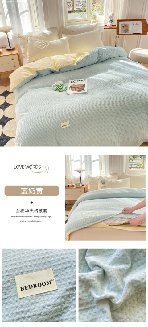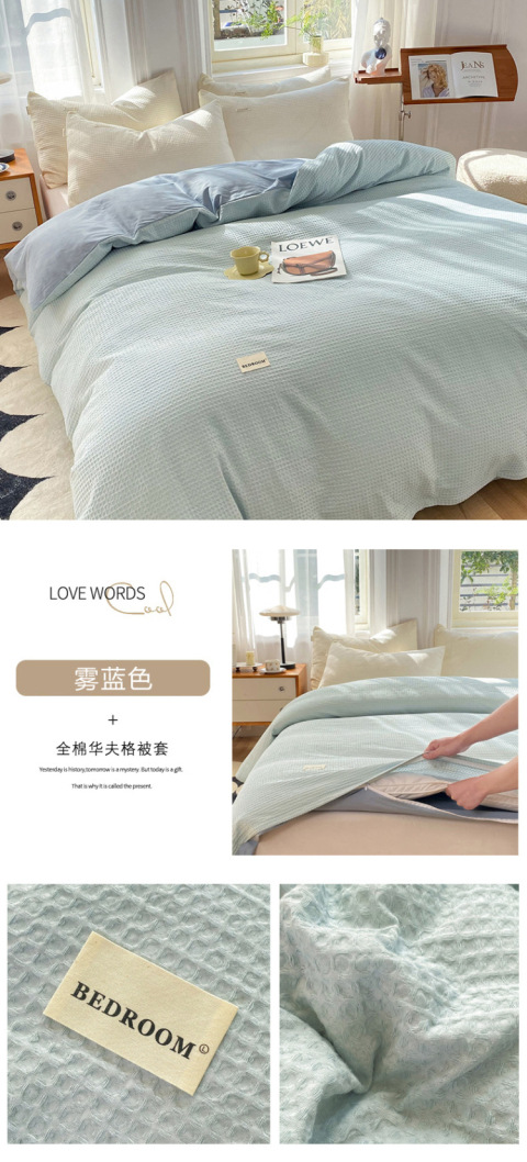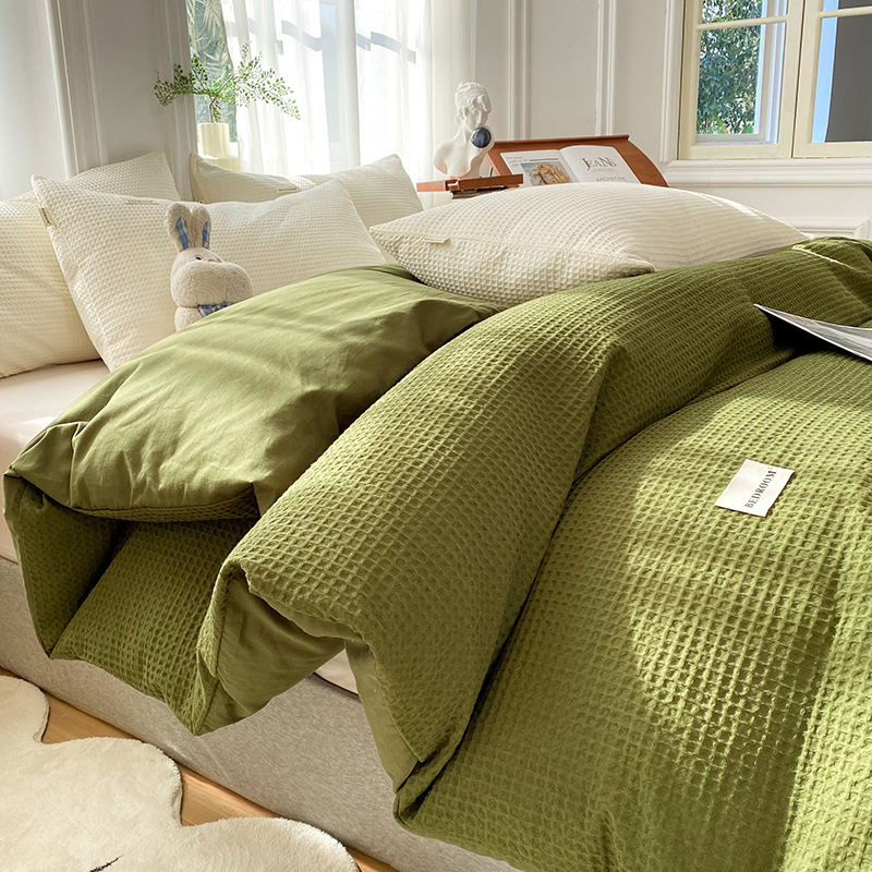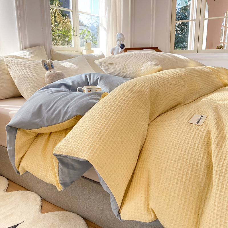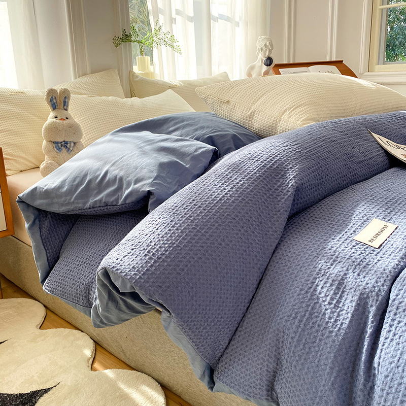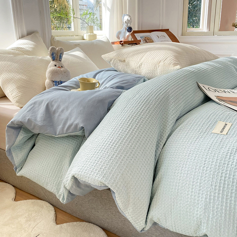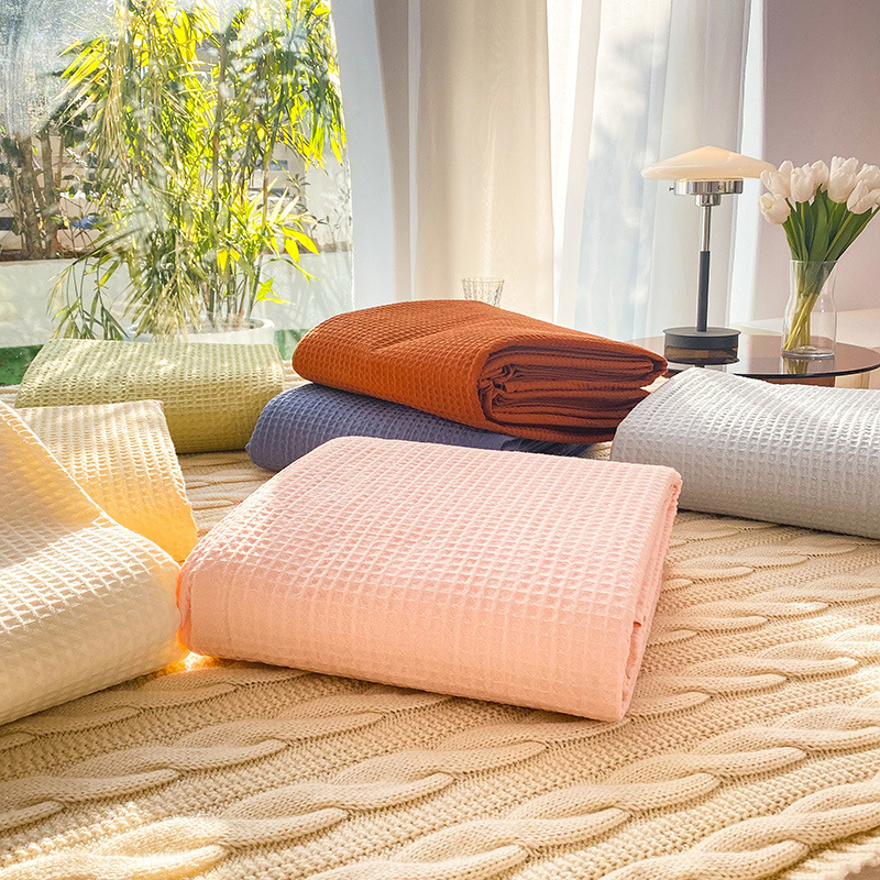 면 클래스 A 모체 및 유아 와플 싱글 피스 퀼트 커버 100 면 기숙사 싱글 더블 퀼트 커버 베갯벌 3 피스 세트 도매