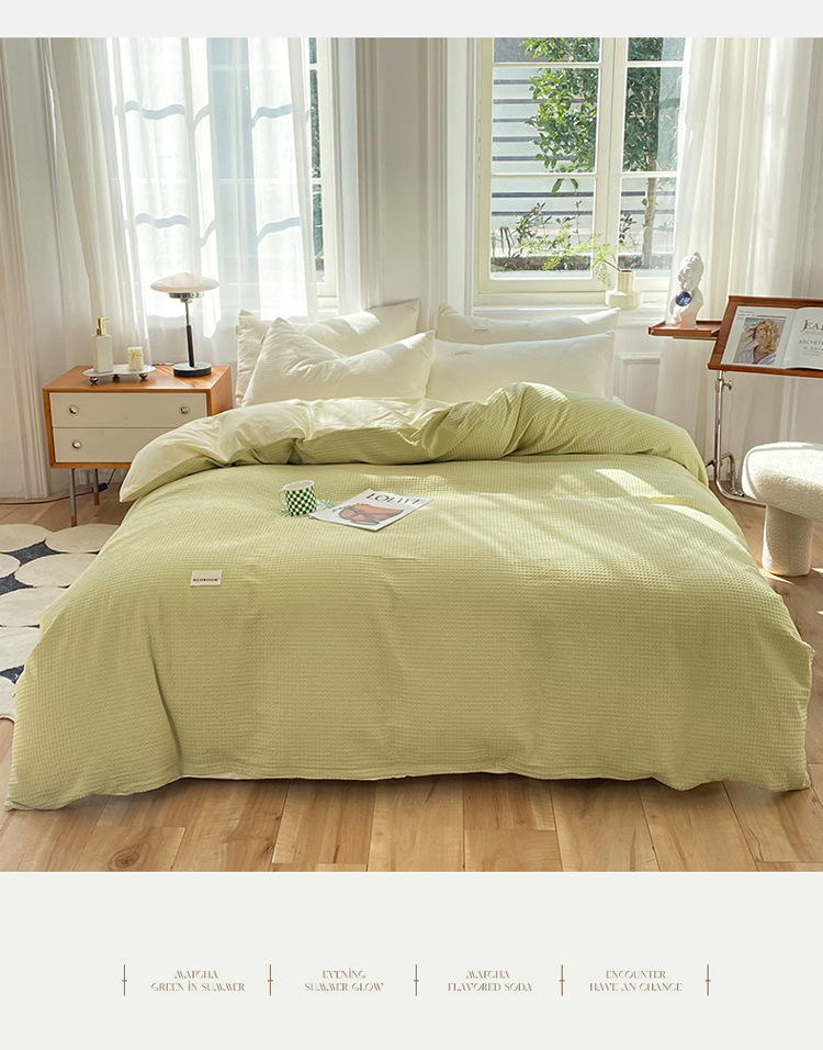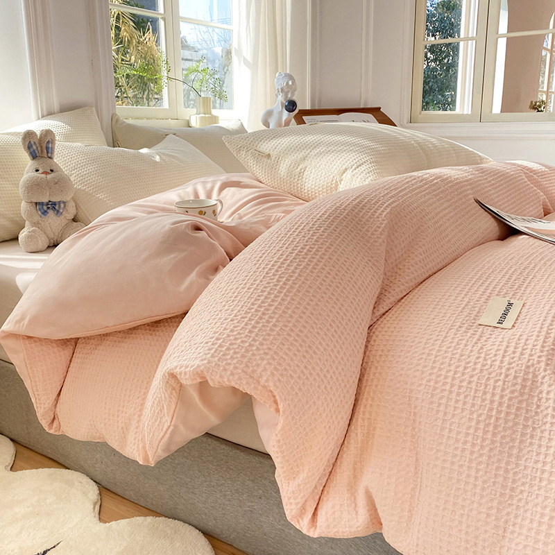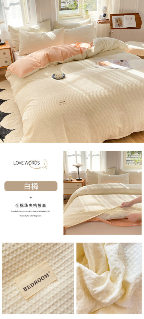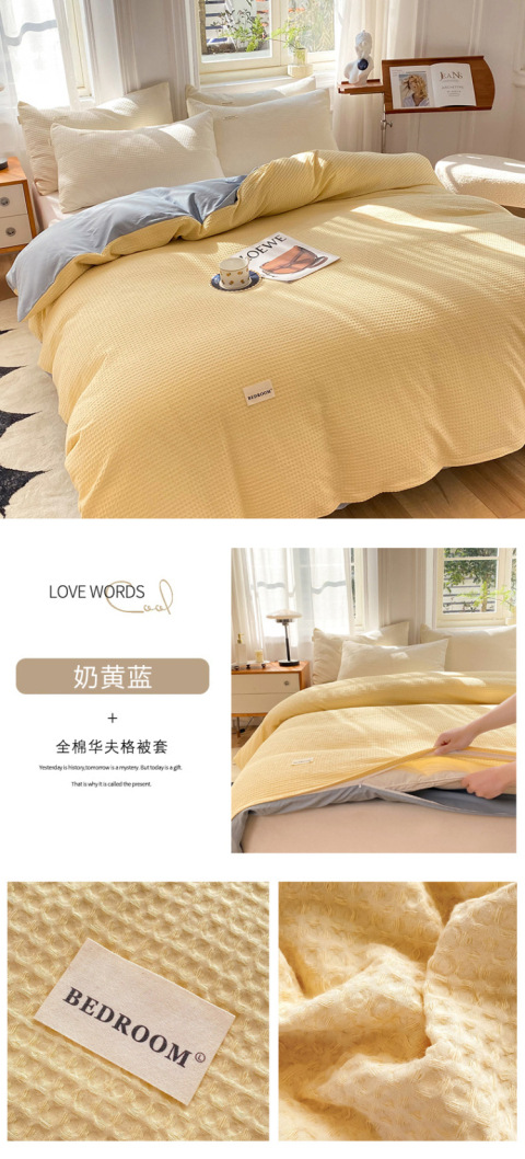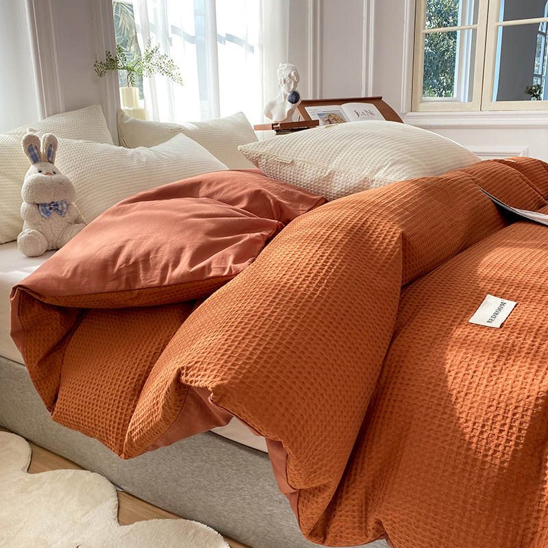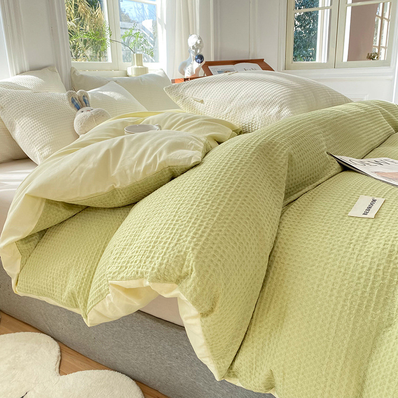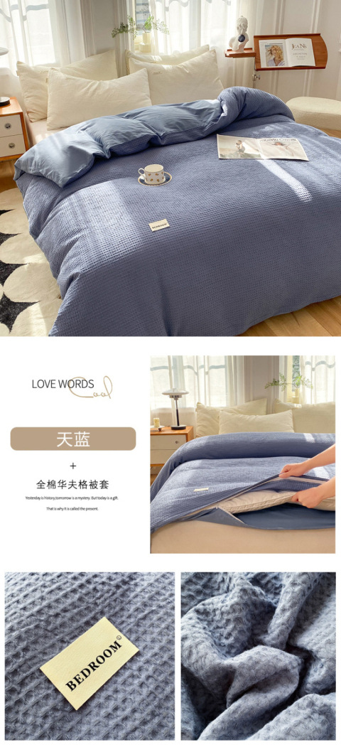 면 클래스 A 모체 및 유아 와플 싱글 피스 퀼트 커버 100 면 기숙사 싱글 더블 퀼트 커버 베갯벌 3 피스 세트 도매