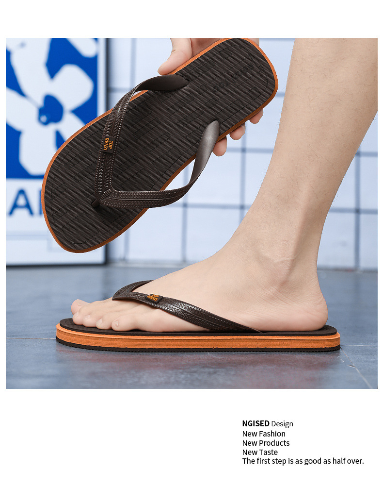 새로운 오픈 Toe Flip-Flops 남자 여름 비 슬립 마모 방지 외부 착용 플립 플롭 샌들 남성용 캐주얼 트렌디 샌들스토어 가기