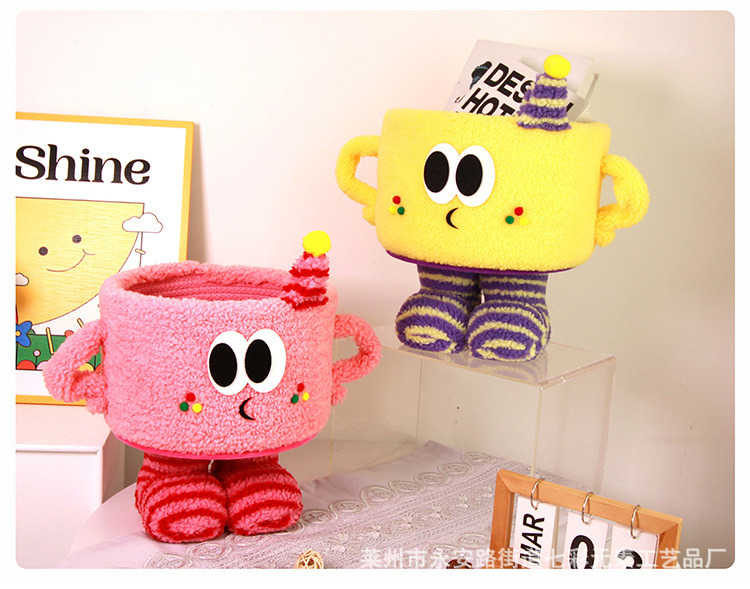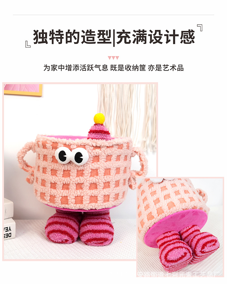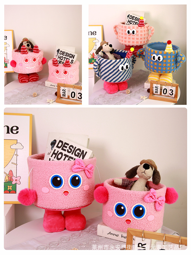 만화 캐릭터 괴물 모양 수납 바구니, 잡동사니 및 간식 바구니, 인터넷 인기 도파민 양털 대형 정리 바구니