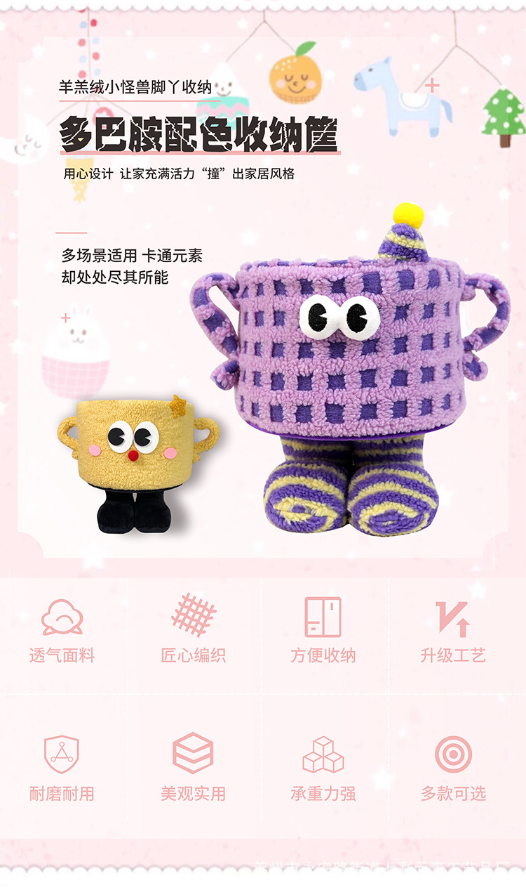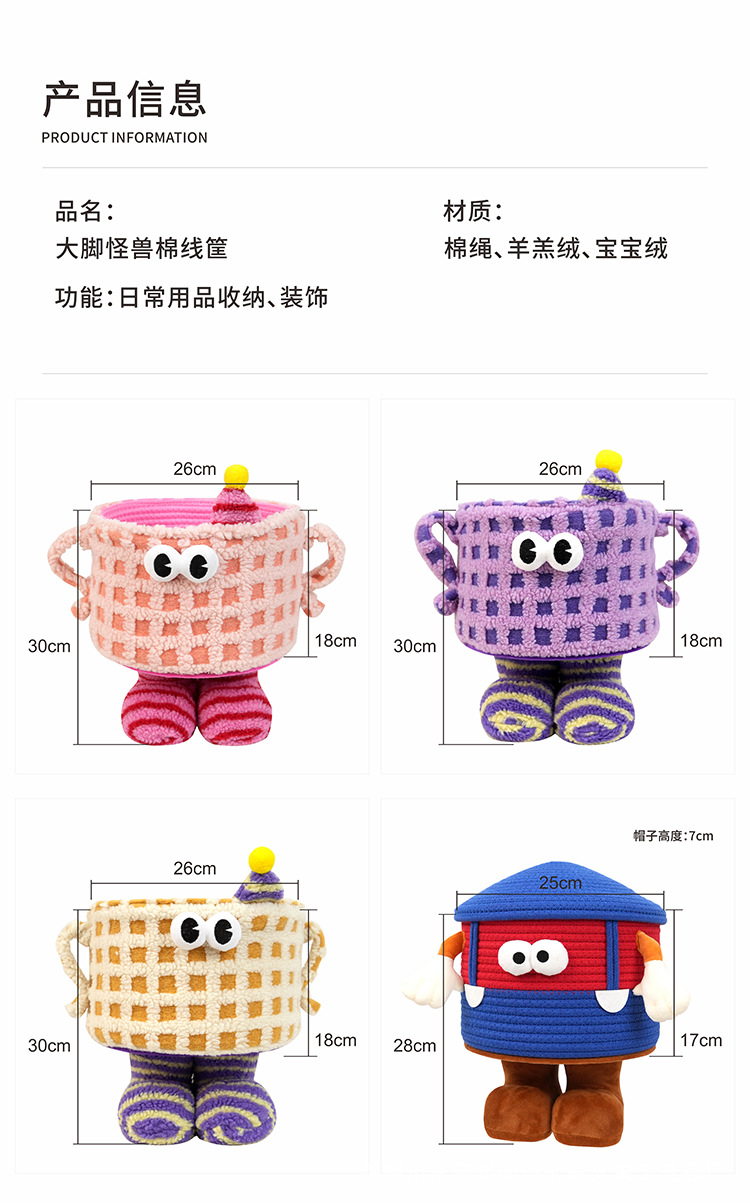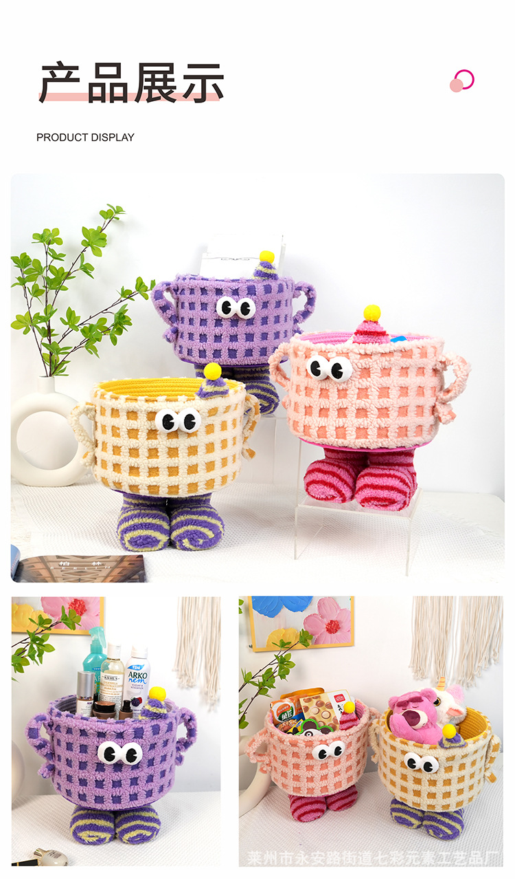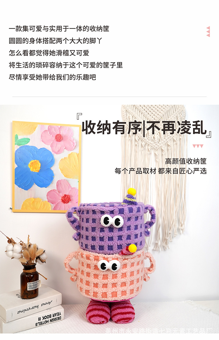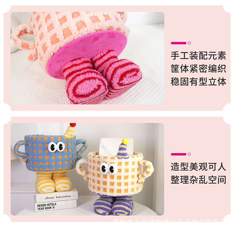 만화 캐릭터 괴물 모양 수납 바구니, 잡동사니 및 간식 바구니, 인터넷 인기 도파민 양털 대형 정리 바구니스토어 가기