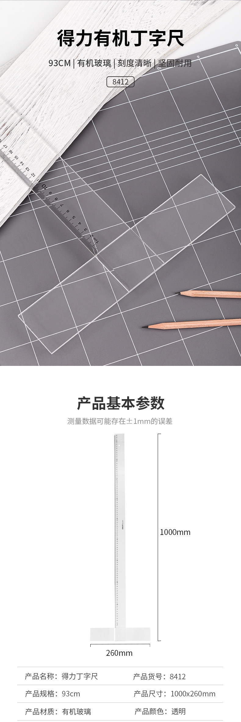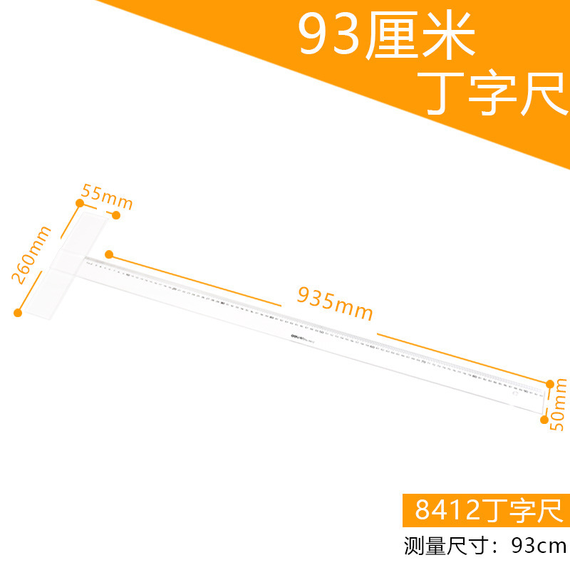 델리 8410/8412 유기 T 자형 통치자 60cm/93cm 투명 T 자형 엔지니어링 드로잉 통치자스토어 가기