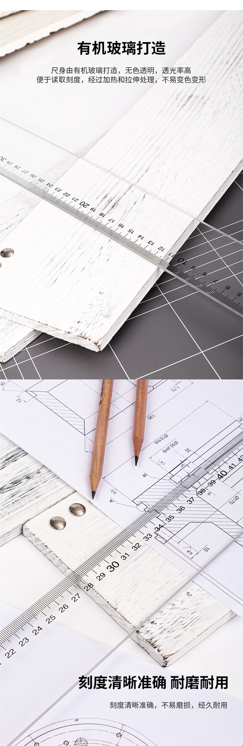 델리 8410/8412 유기 T 자형 통치자 60cm/93cm 투명 T 자형 엔지니어링 드로잉 통치자