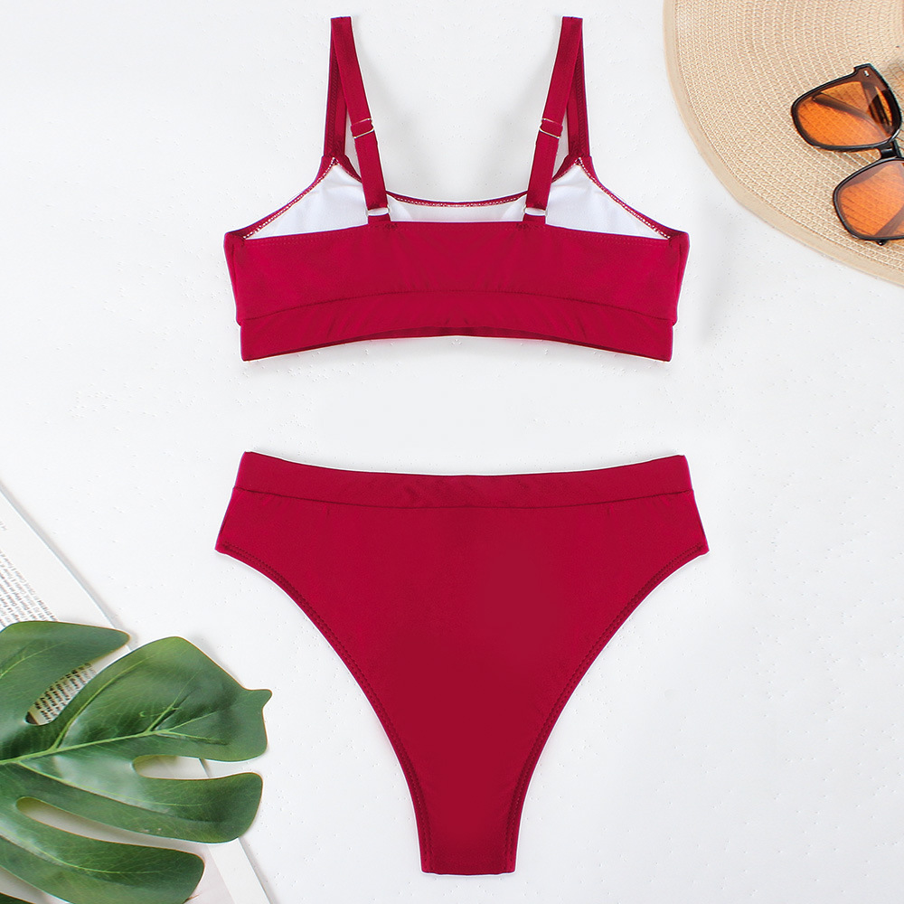 2024 새로운 아마존 AliExpress 유럽과 미국의 컬러 매칭 보수적 수영복 수영복 여성 하이 포크 수집 섹시