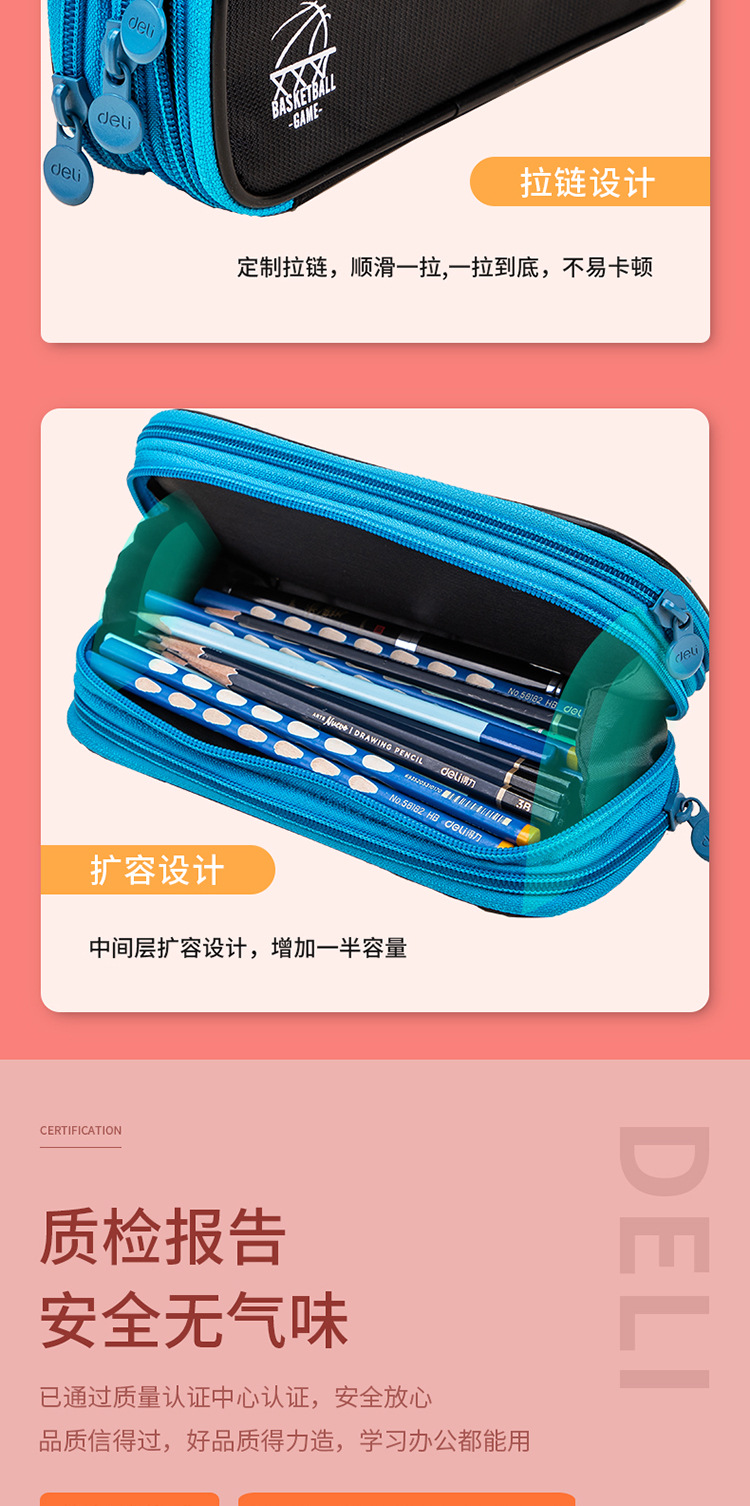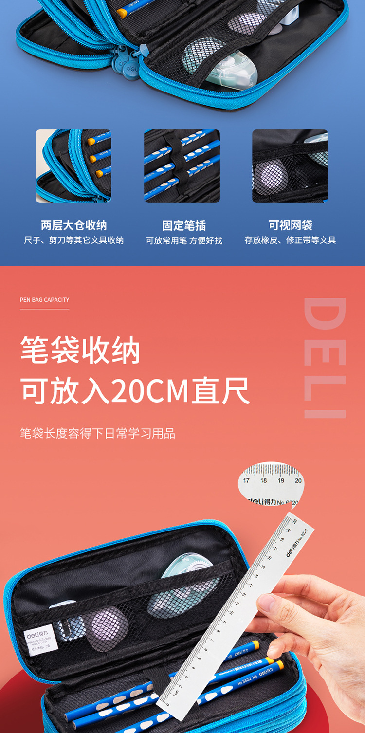 델리 대용량 3 층 연필 케이스 초등학생 중학교 소년 다기능을위한 고가치 간단한 문구 상자스토어 가기