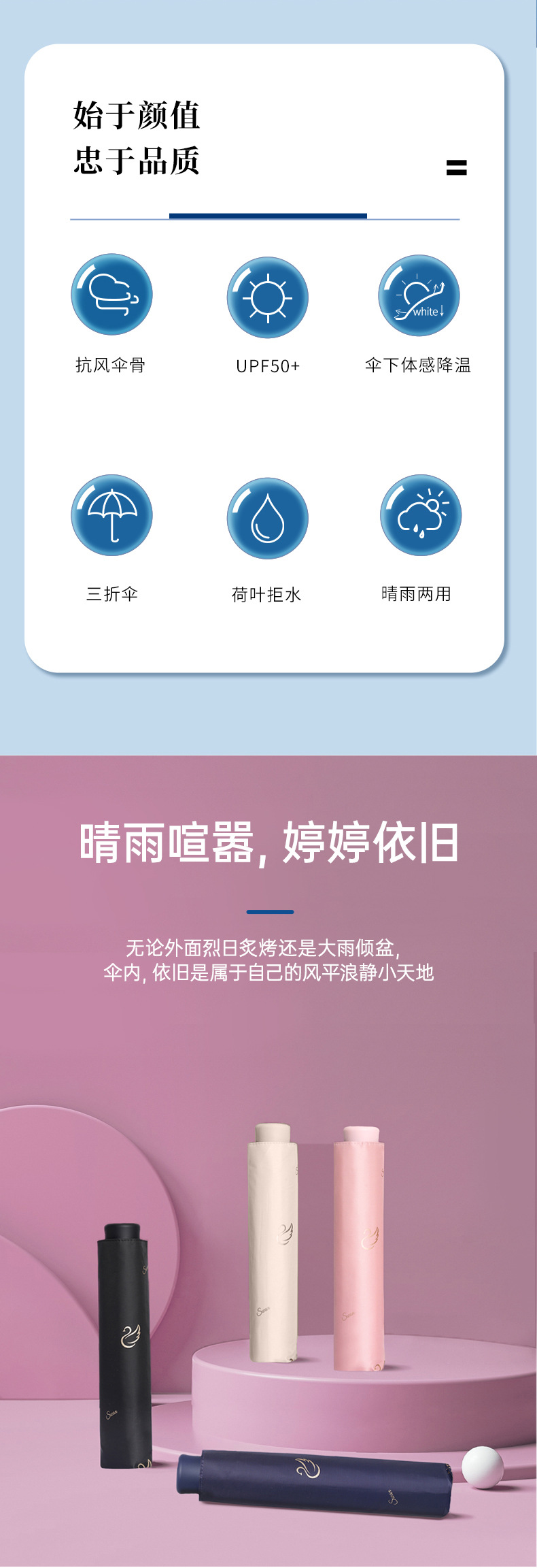 뉴 파라다이스 우산 3 배 햇살 우산 초경량 소형 휴대용 3 배 브론징 비와 남성과 여성을위한 맑음 우산