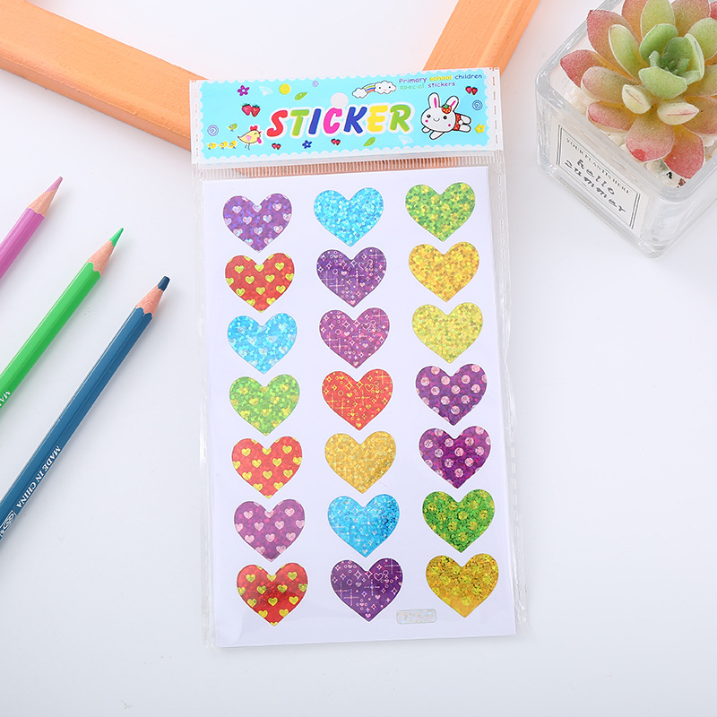 국경 간 레이저 핸드북 사랑 스티커 다채로운 복숭아 하트 보상 스티커 고가치 플래시 하트 모양의 DIY 장식 스티커스토어 가기