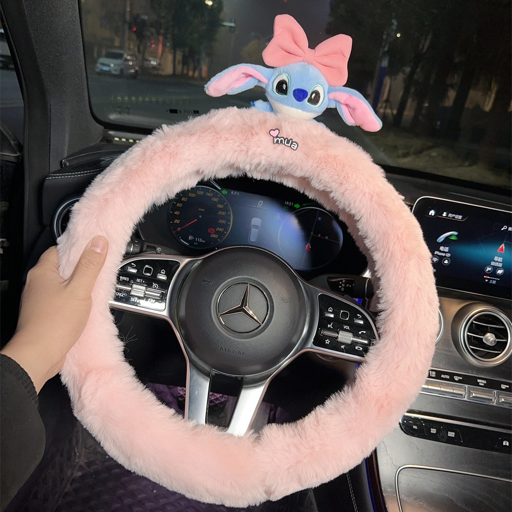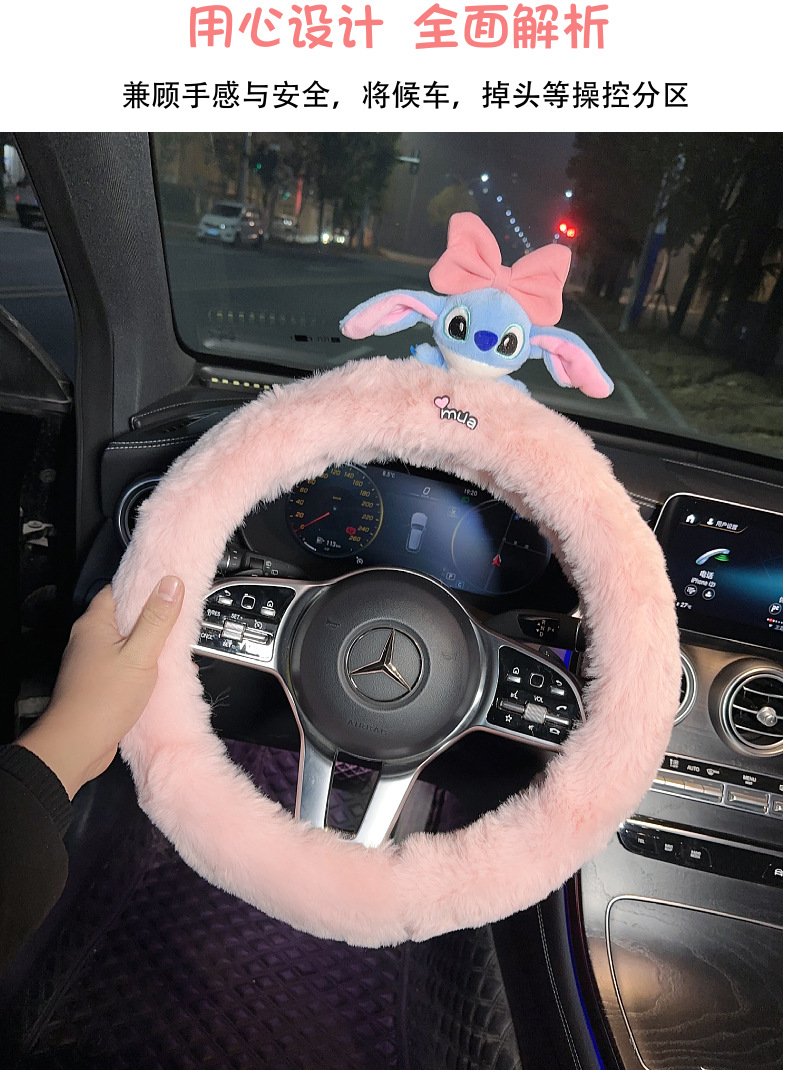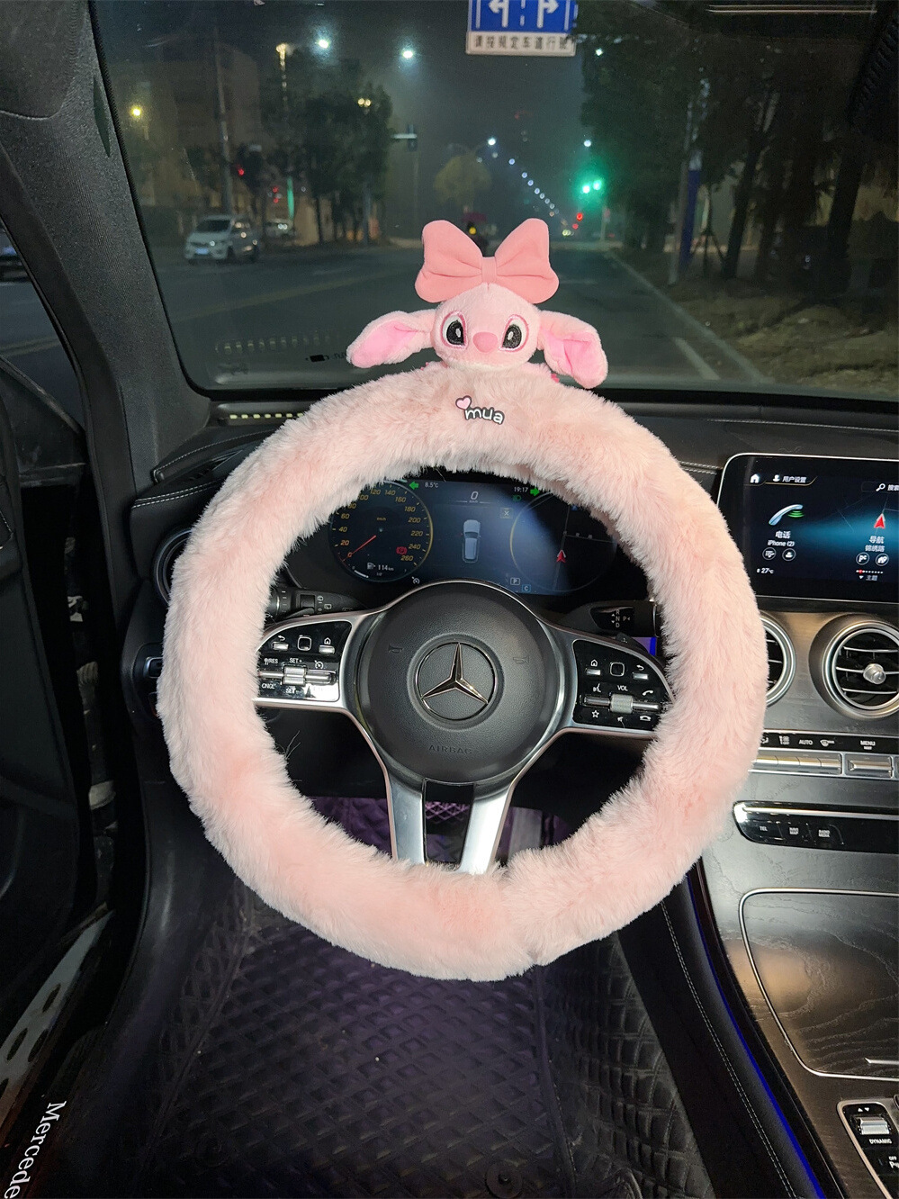 • 핑크 플러시 스티어링 휠 커버 스타일 1