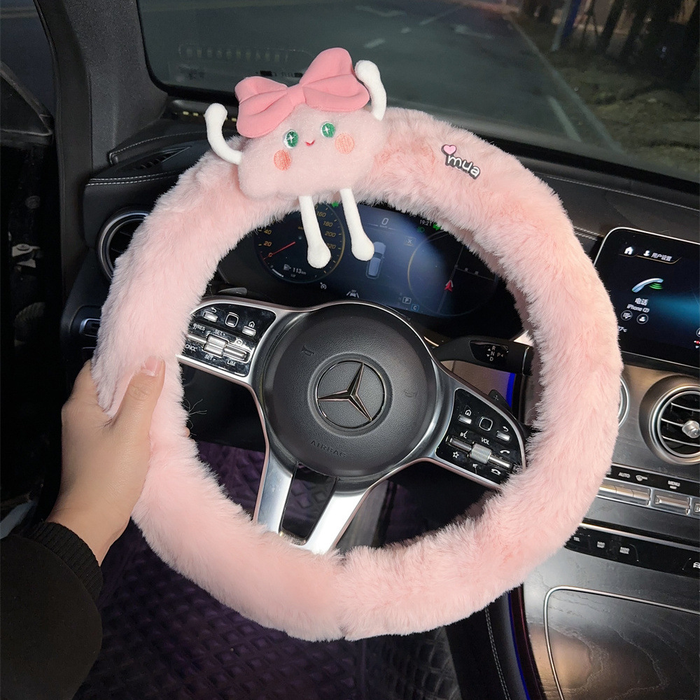 자동차 스티어링 휠 커버 하이 엔드 유니버설 미끄럼 방지 귀여운 겨울 시즌 플러시 따뜻한 신선한 간단한 자동차 핸들 커버 여신