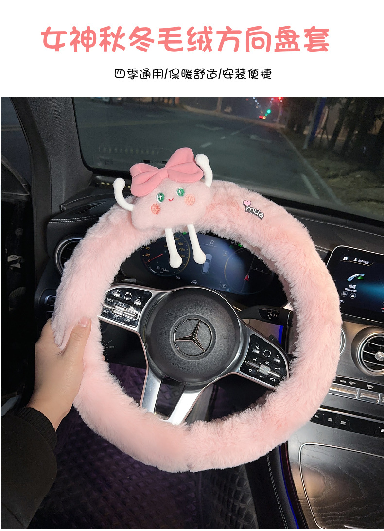 • 핑크 플러시 스티어링 휠 커버 스타일 4