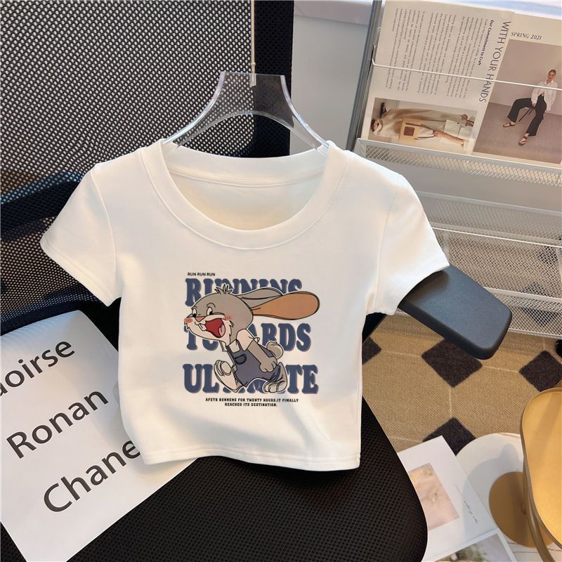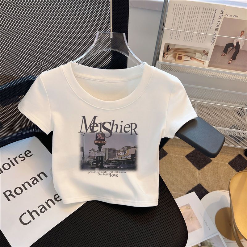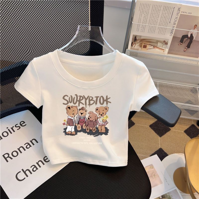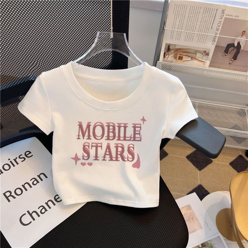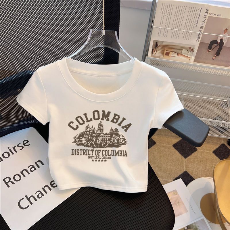 여자 반팔 티셔츠 높은 허리 여름 새 어린이 흰색 반소매 최고 유행 0186A015스토어 가기