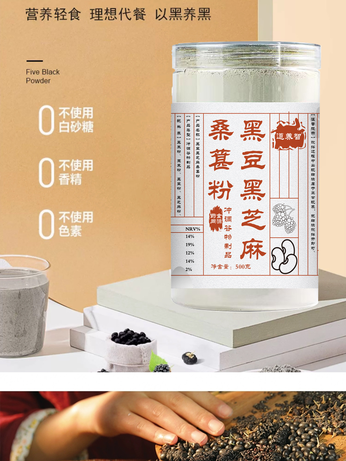 Pudao Yangzhi 검은 참깨, 뽕나무 및 호두 분말, 영양가 있는 아침 식사 대체 음료, 통곡물 OEM 맞춤형 대체품