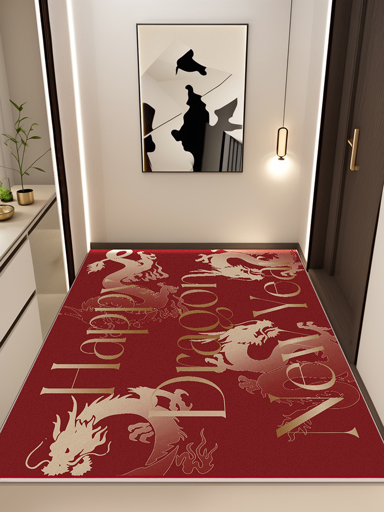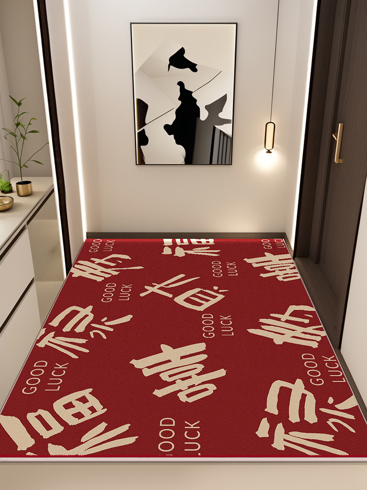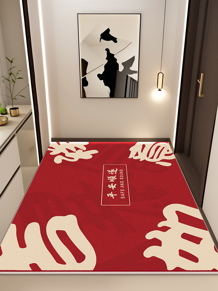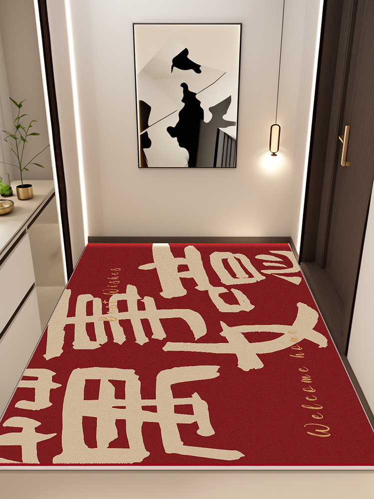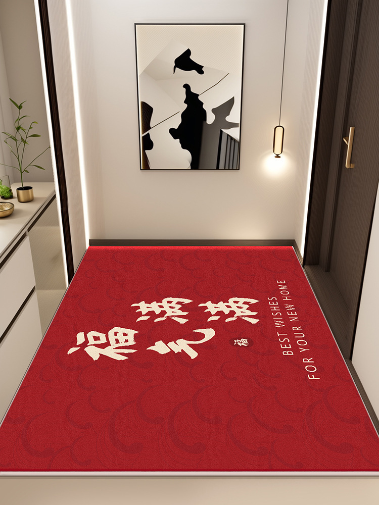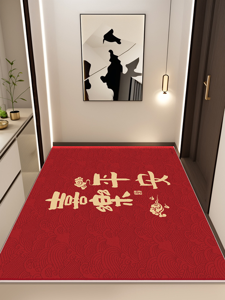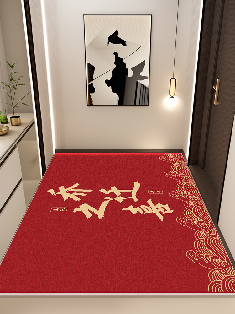 새로운 중국 스타일 고급 레드 도어 매트 크리스탈 벨벳 홈 카펫 분위기 장식 거실 소파 복도 발 문지르는 매트