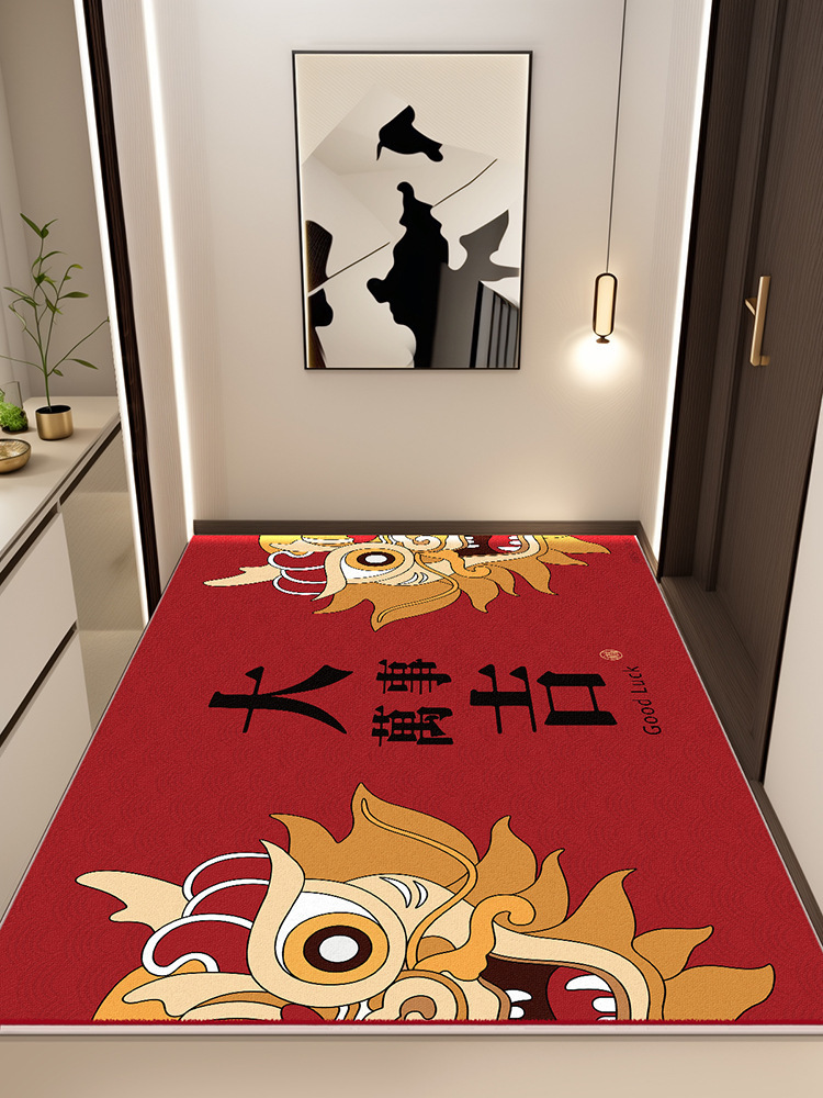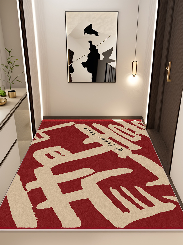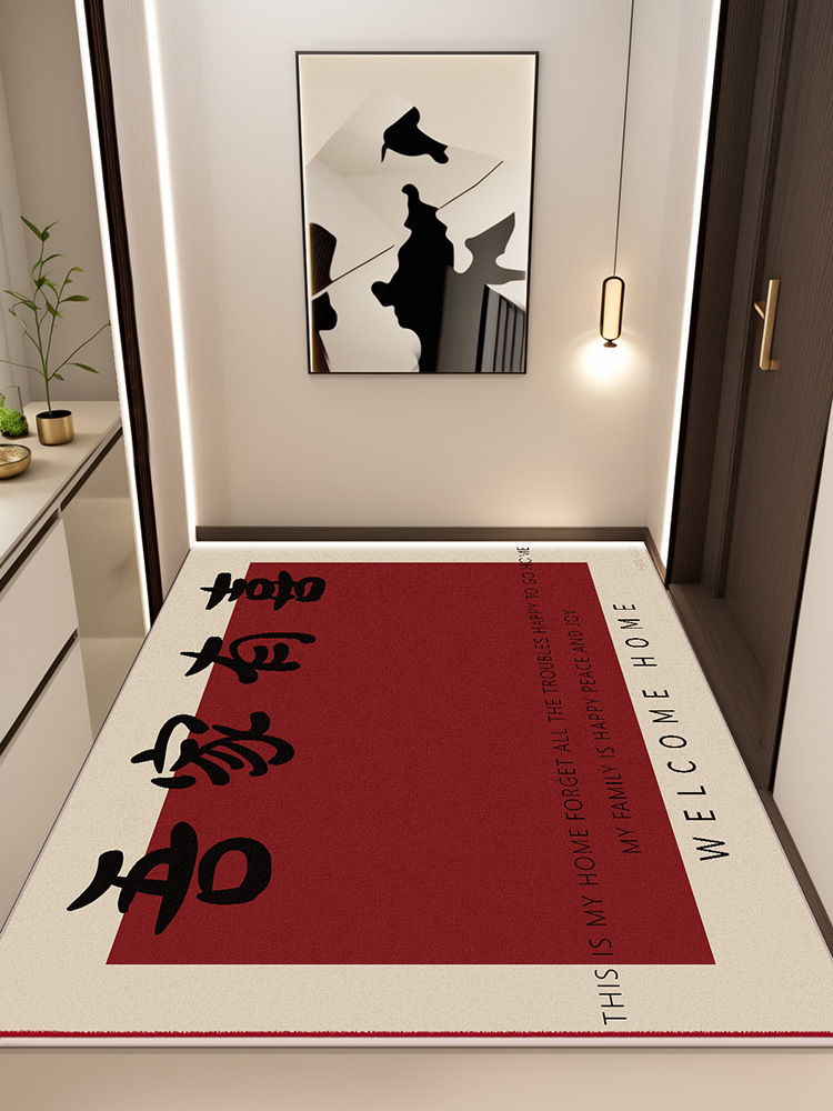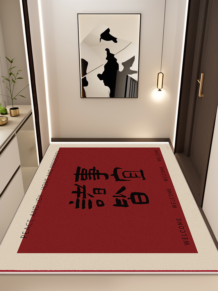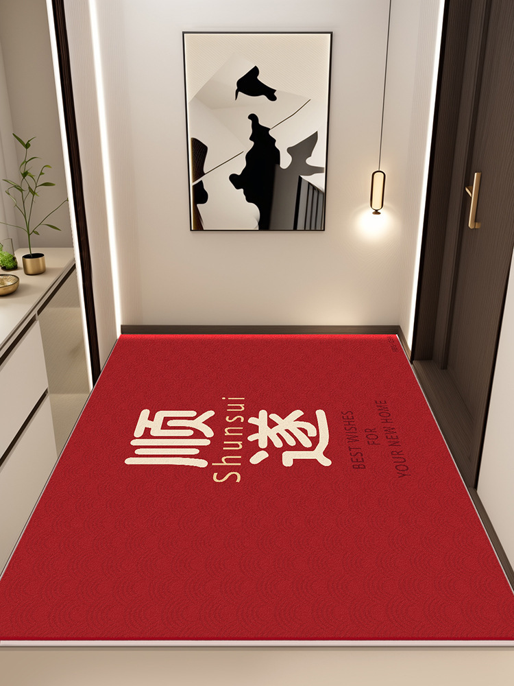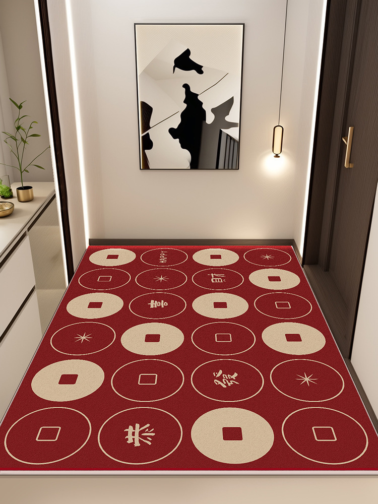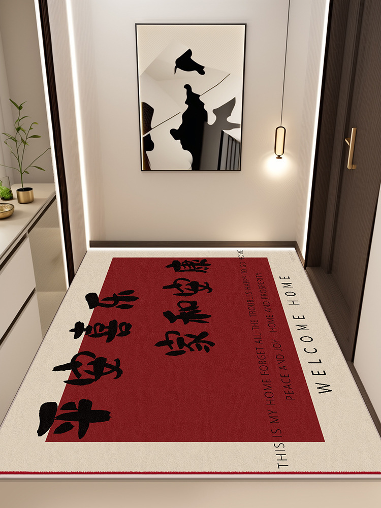 새로운 중국 스타일 고급 레드 도어 매트 크리스탈 벨벳 홈 카펫 분위기 장식 거실 소파 복도 발 문지르는 매트