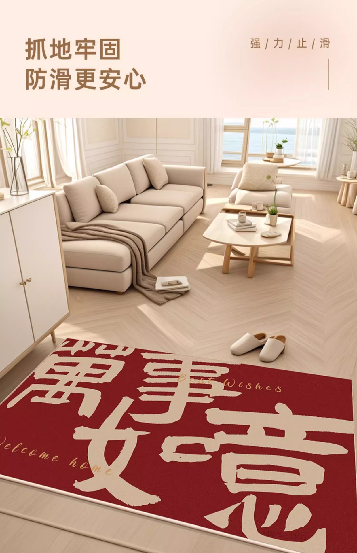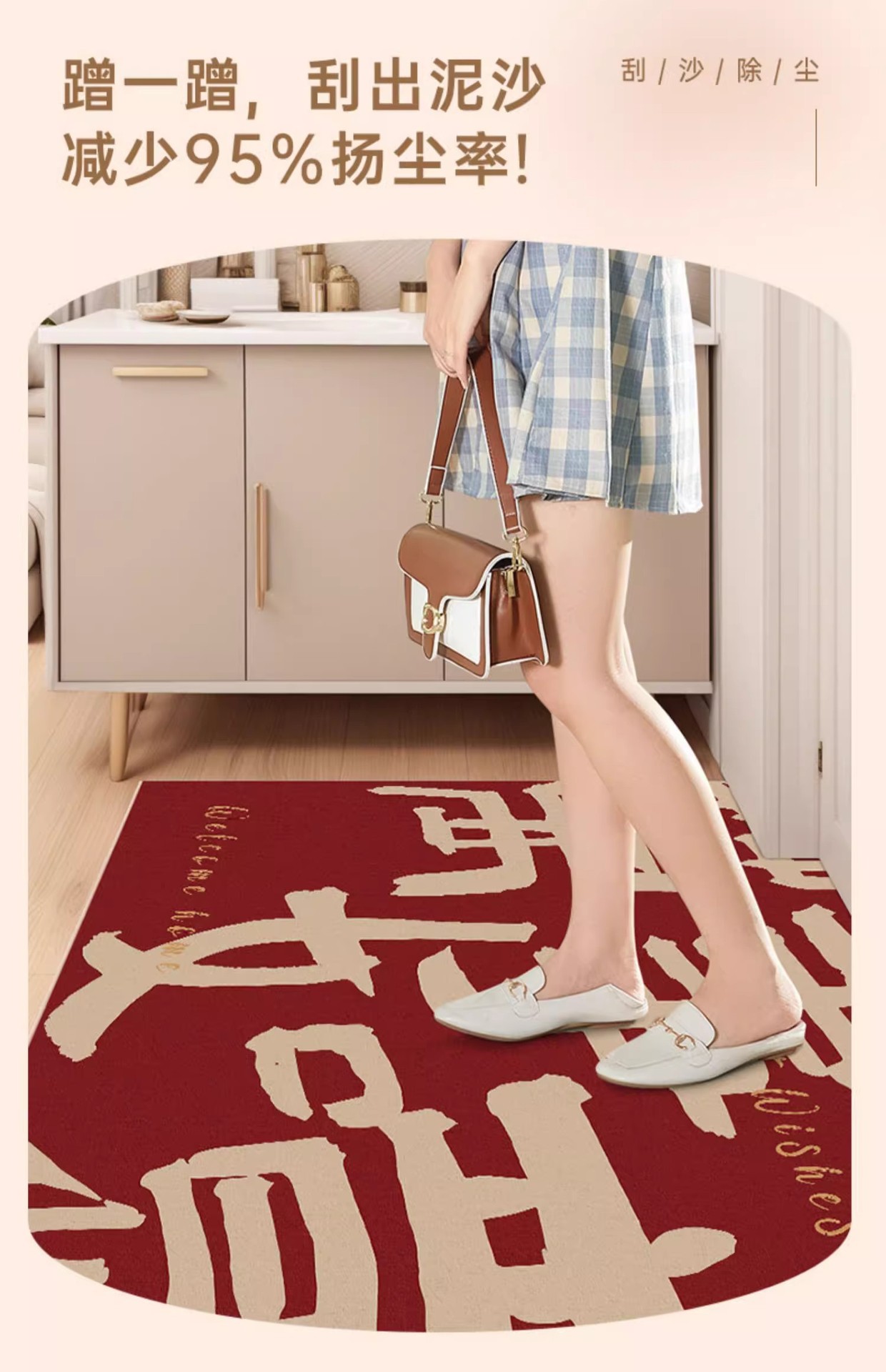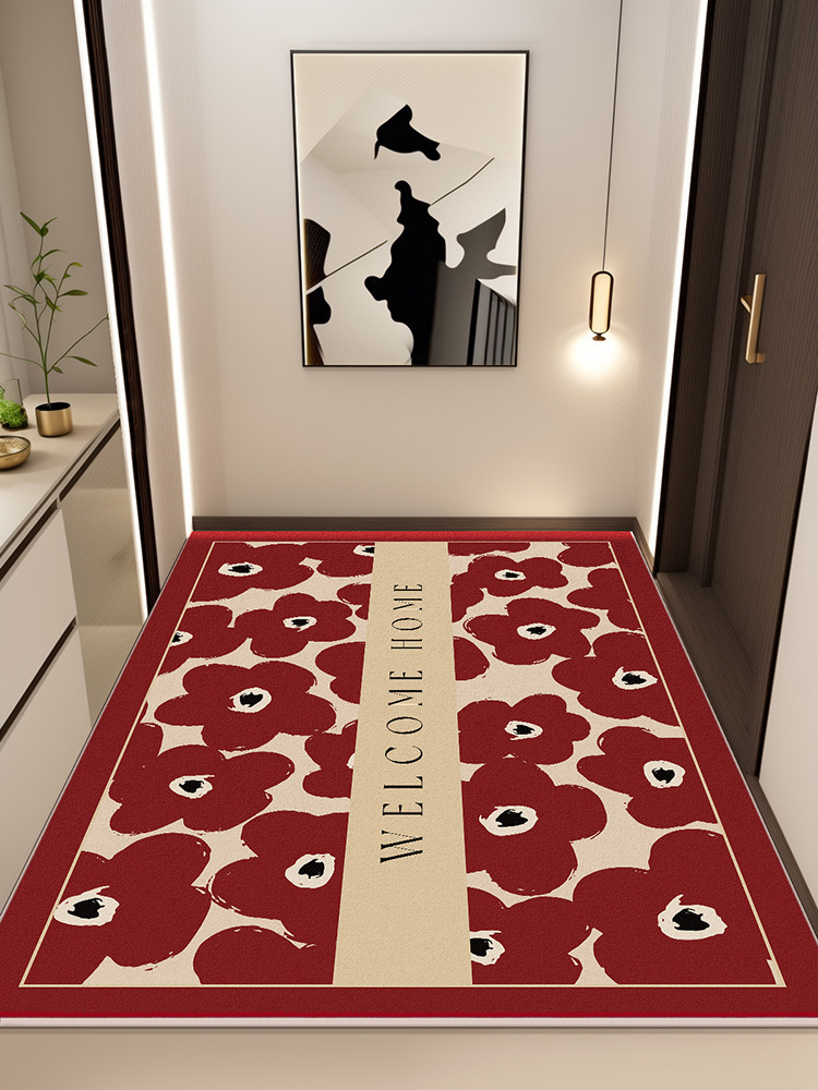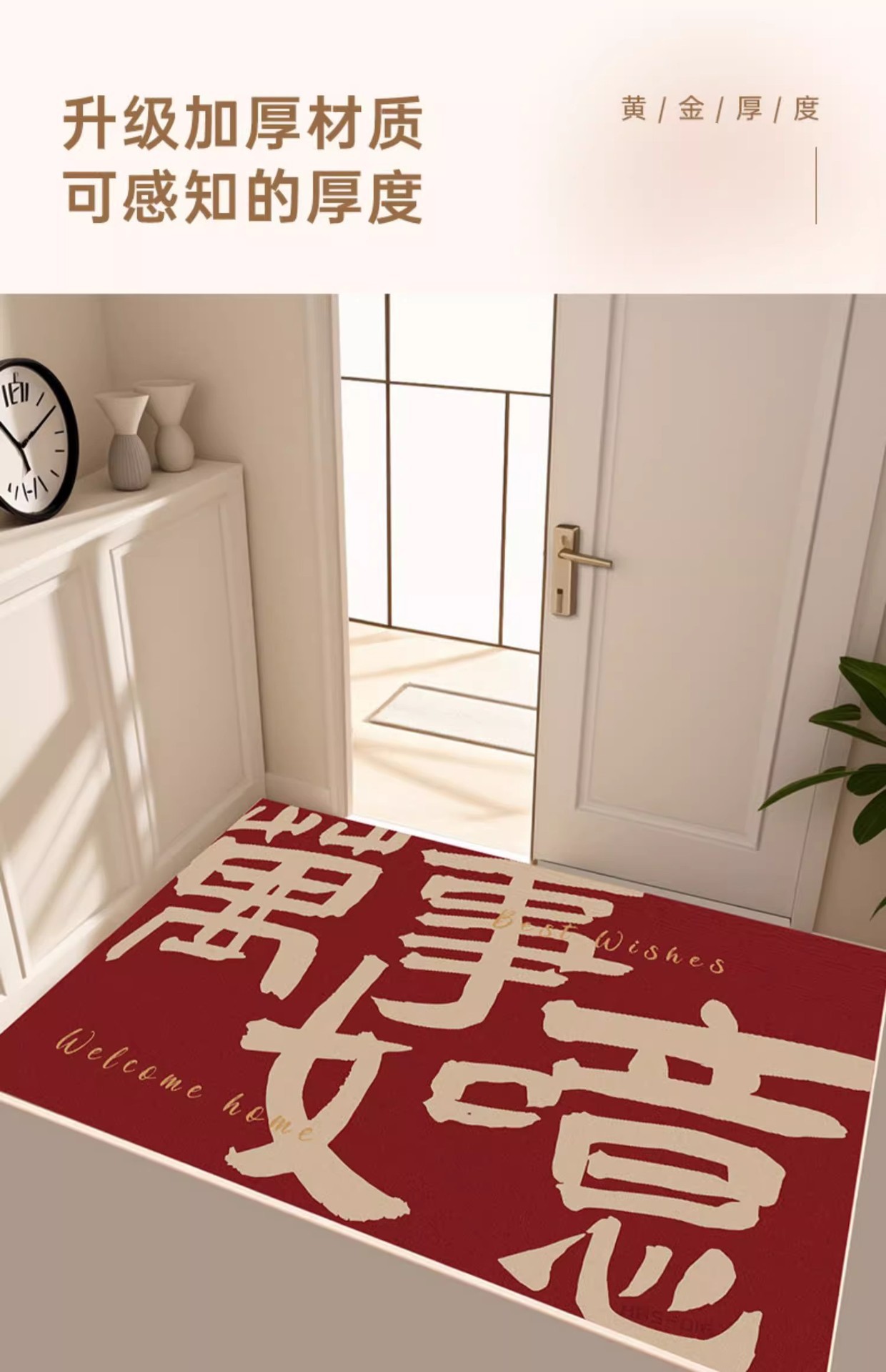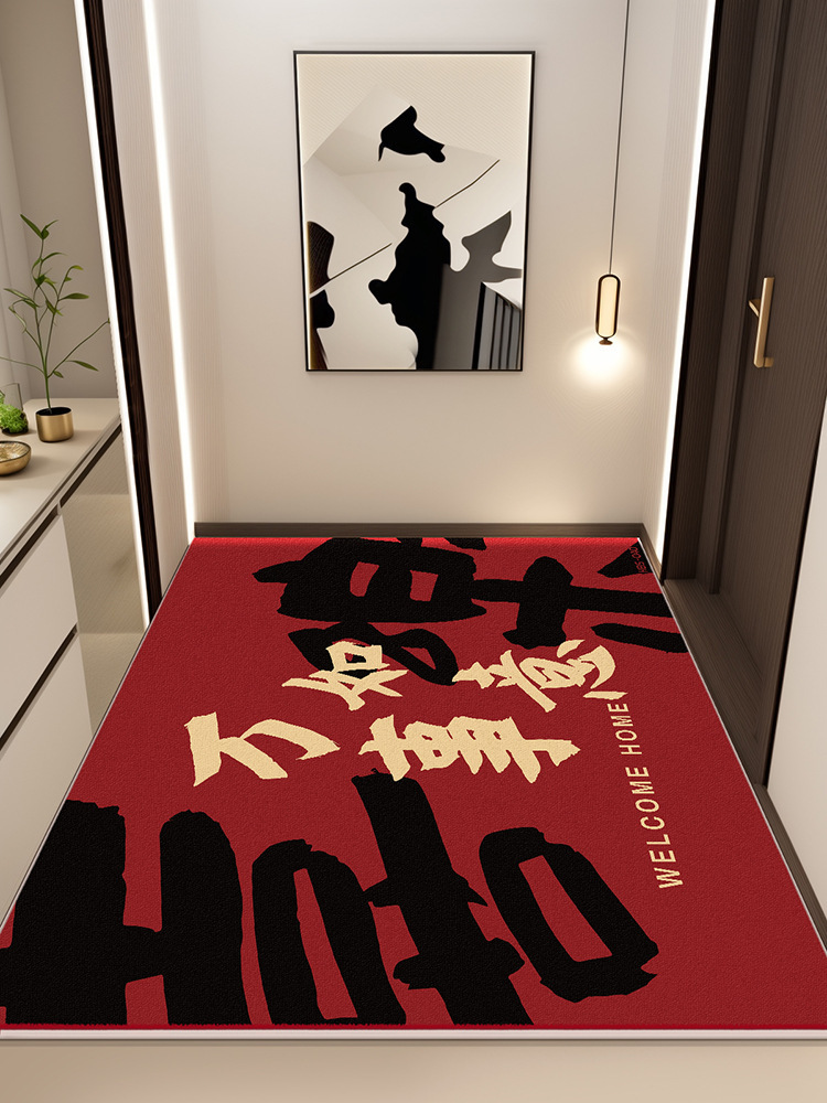 새로운 중국 스타일 고급 레드 도어 매트 크리스탈 벨벳 홈 카펫 분위기 장식 거실 소파 복도 발 문지르는 매트