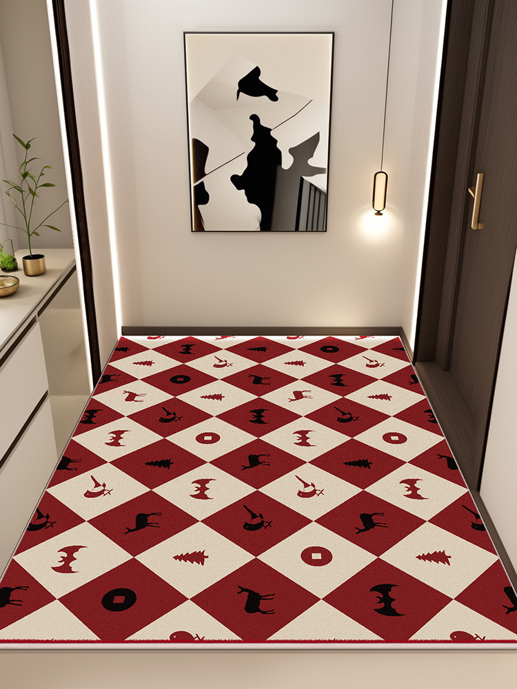 새로운 중국 스타일 고급 레드 도어 매트 크리스탈 벨벳 홈 카펫 분위기 장식 거실 소파 복도 발 문지르는 매트스토어 가기