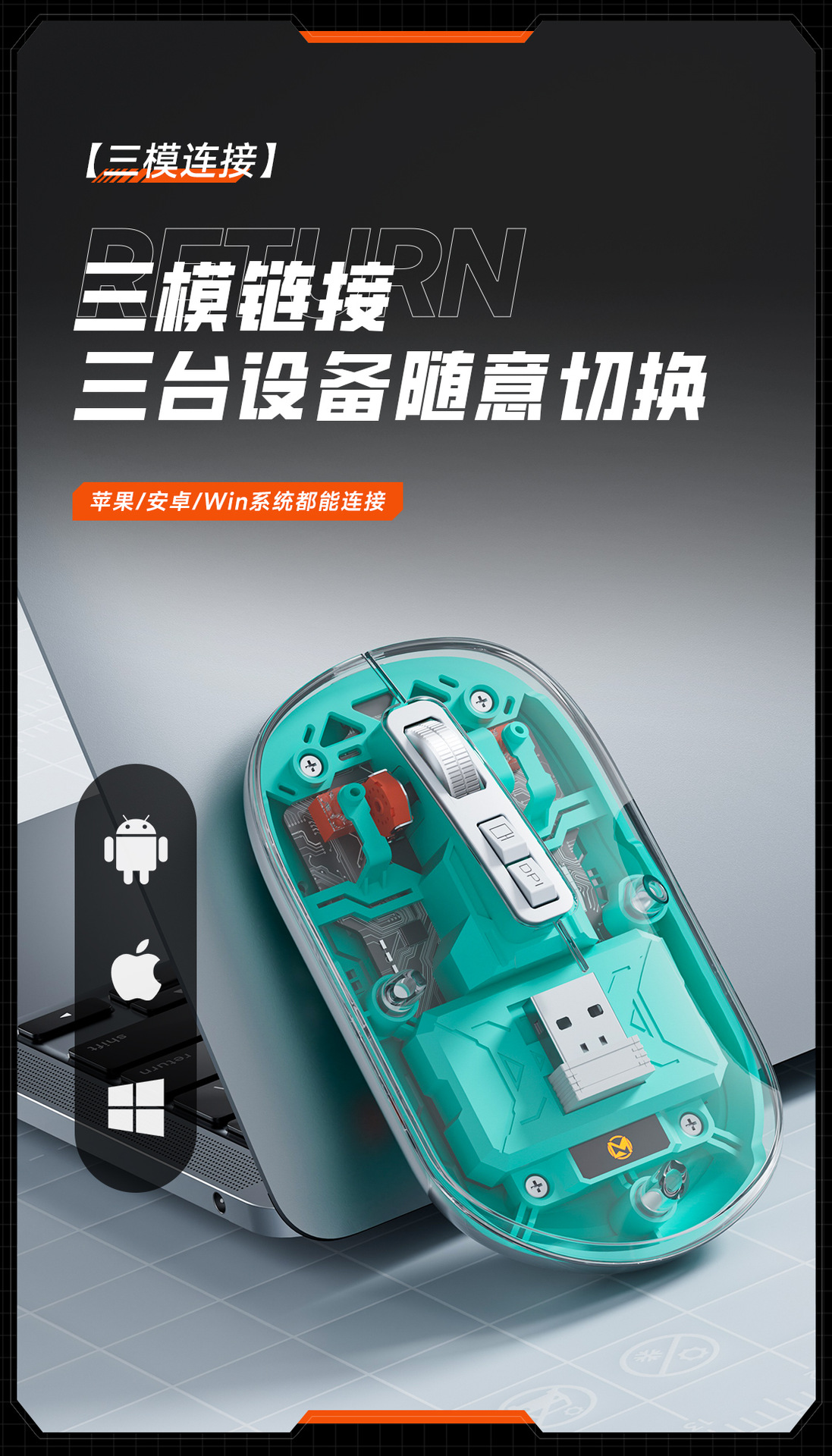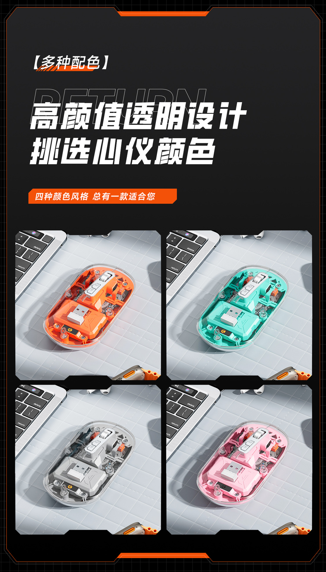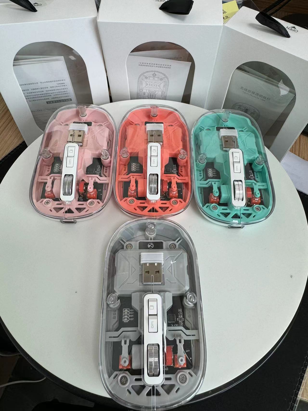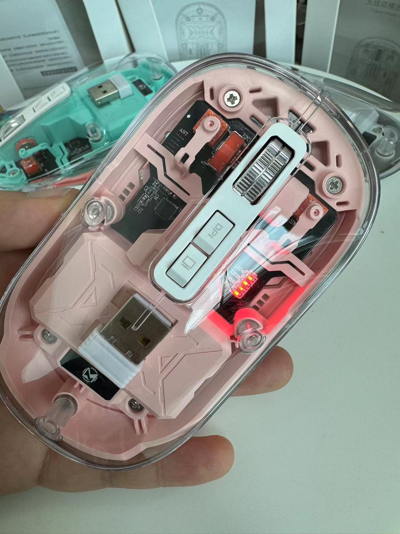 무선 마우스 3 모드 블루투스 마우스 높은 색상 가치 선물 투명 마우스 메카 바람 충전 마우스 스팟 도매스토어 가기