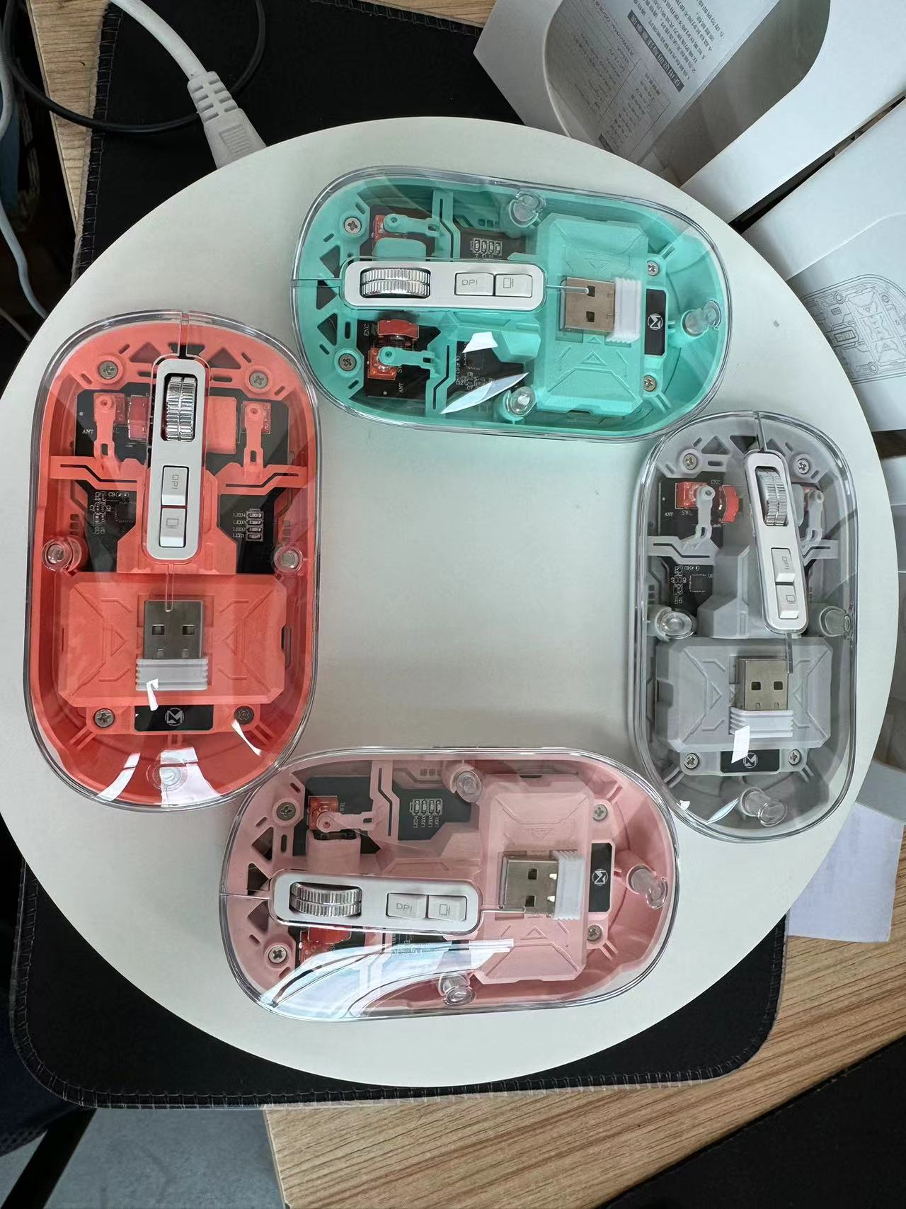 무선 마우스 3 모드 블루투스 마우스 높은 색상 가치 선물 투명 마우스 메카 바람 충전 마우스 스팟 도매