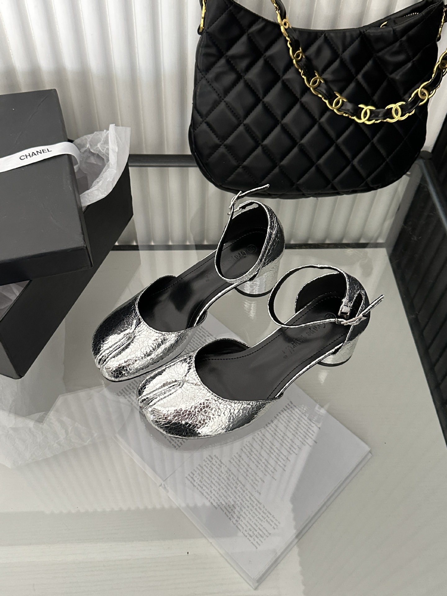 양가죽 버전 ~ 메리 제인 하이힐 여성 2024 새로운 두꺼운 뒤꿈치 실버 신발 둥근 발가락 얕은 발가락 돼지 토르