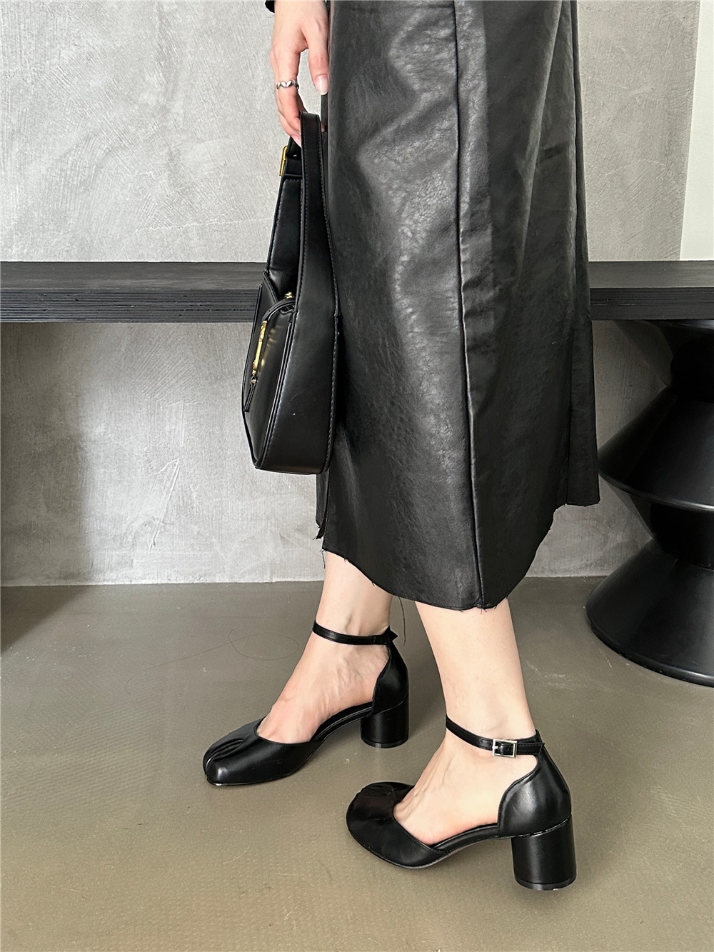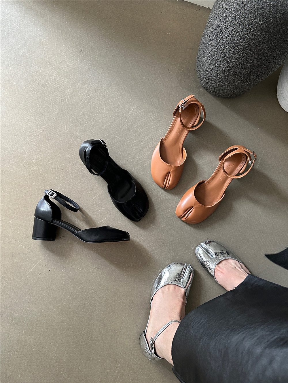 양가죽 버전 ~ 메리 제인 하이힐 여성 2024 새로운 두꺼운 뒤꿈치 실버 신발 둥근 발가락 얕은 발가락 돼지 토르스토어 가기