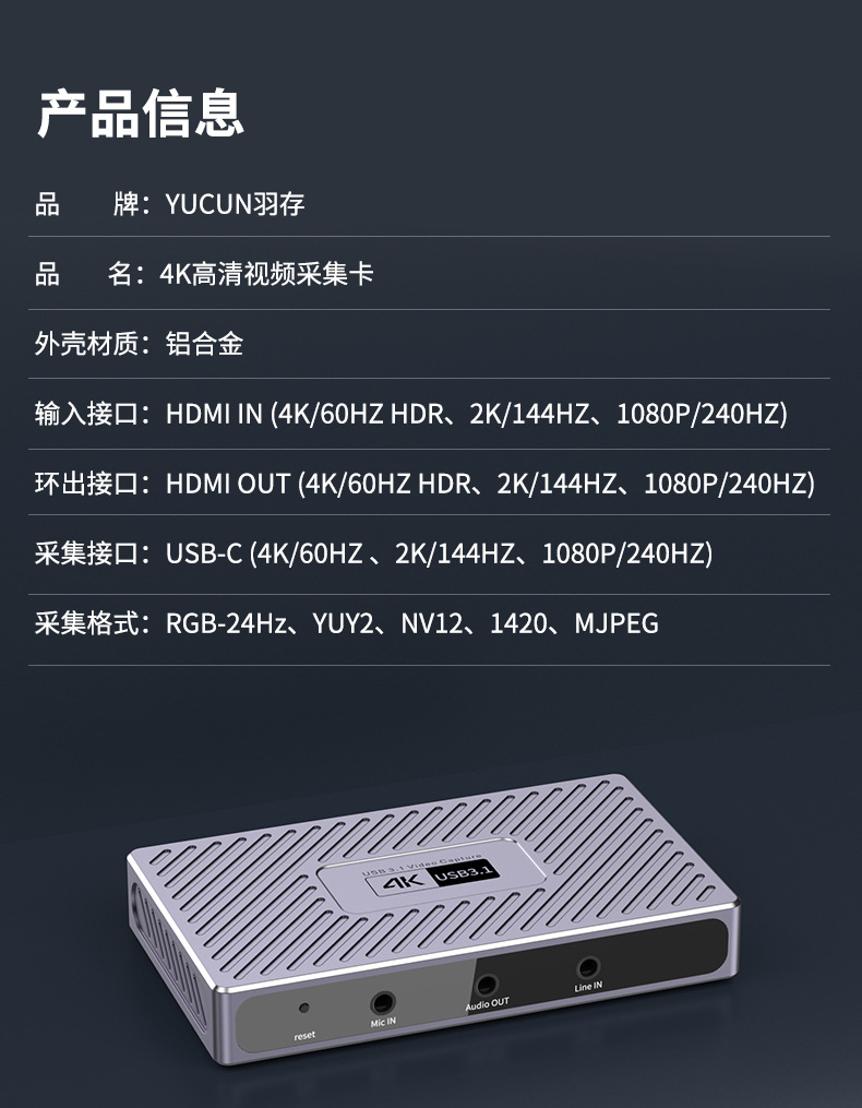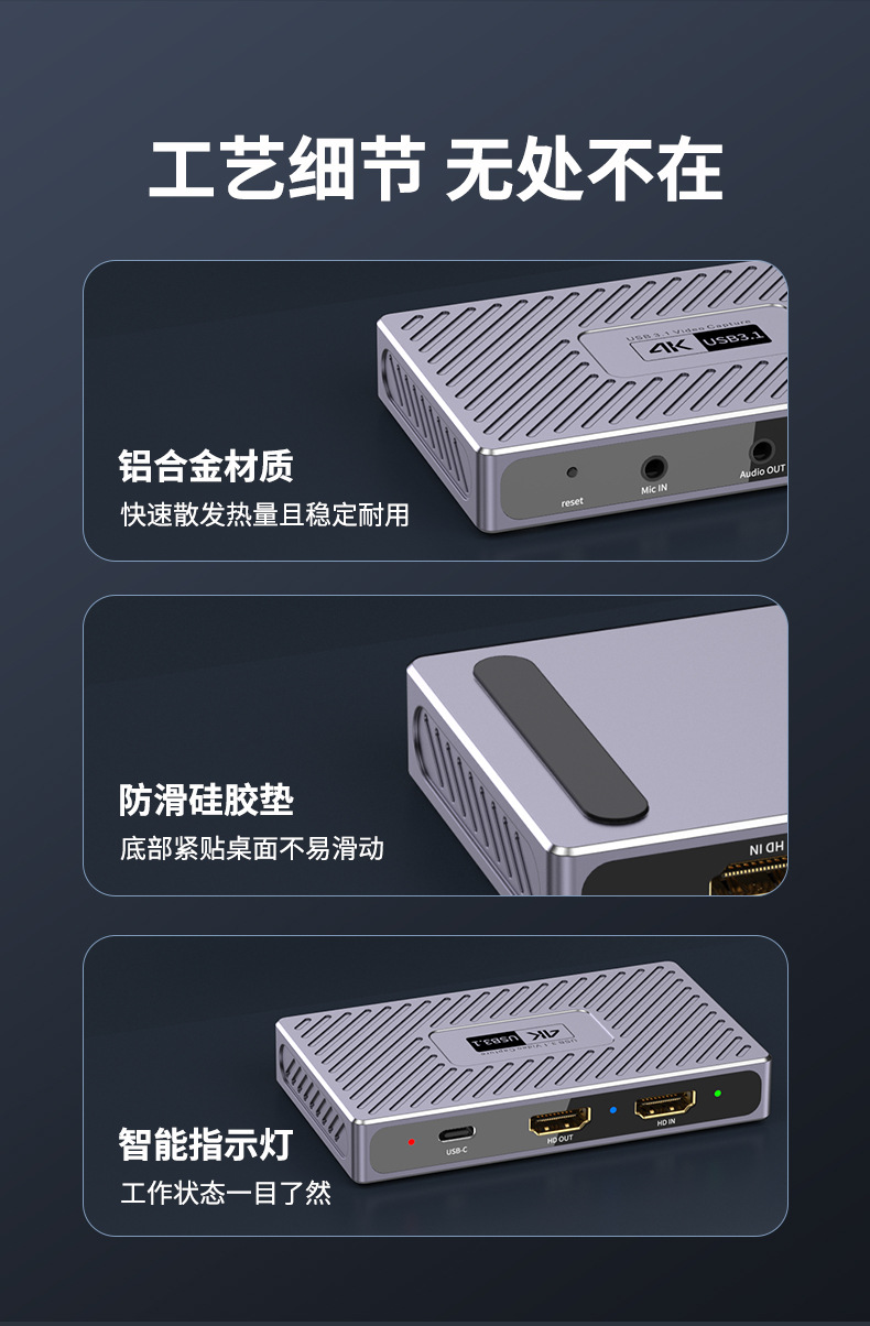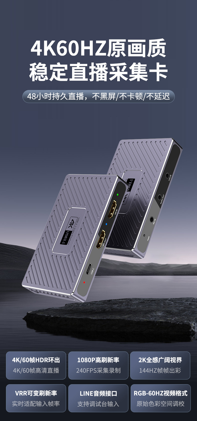 USB3.1 HD 비디오 HDMI 캡처 카드 4K60 프레임 카메라 휴대 전화 게임 컴퓨터 녹화 RGB24 라이브스토어 가기
