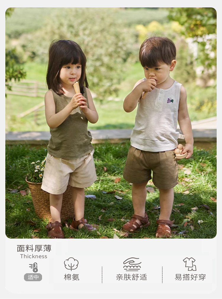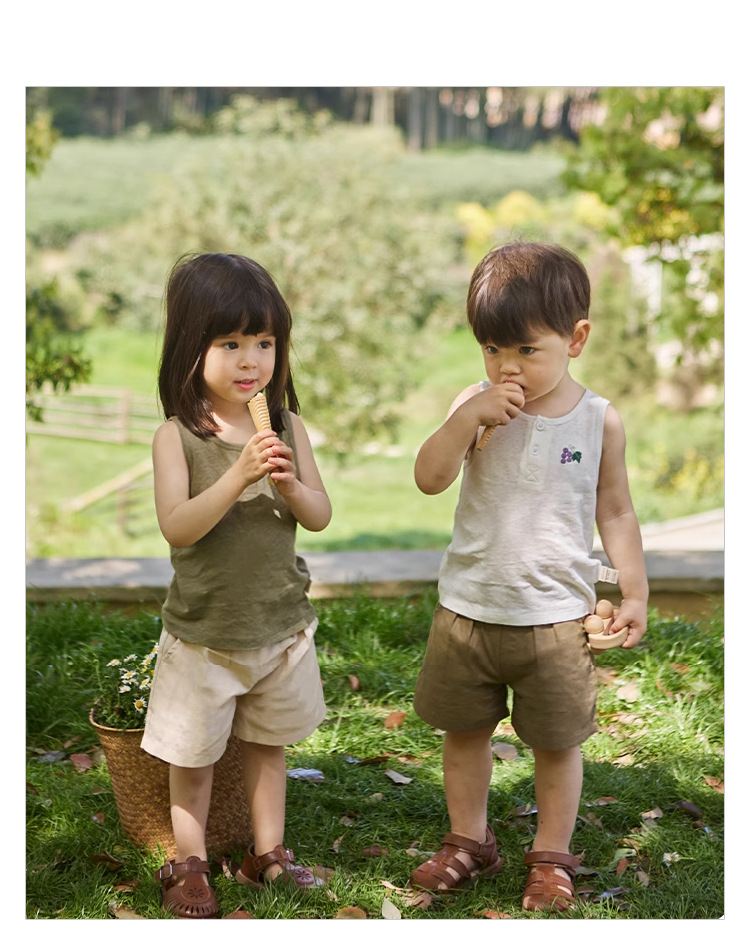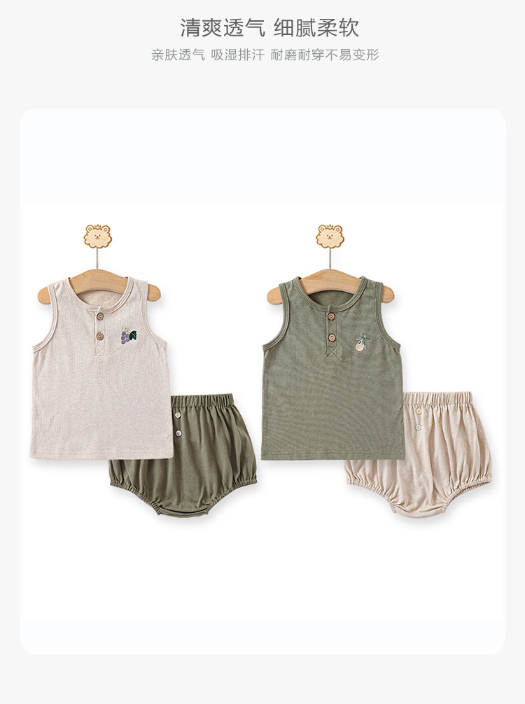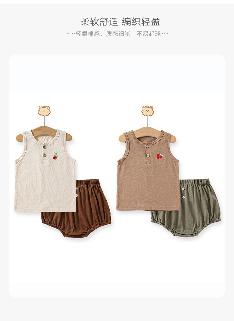 여름 새로운 어린이 조끼 세트 코튼 보이 아기 민소매 자수 티셔츠 아기 단색 반바지스토어 가기