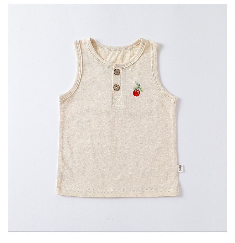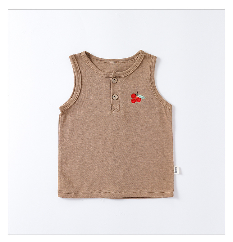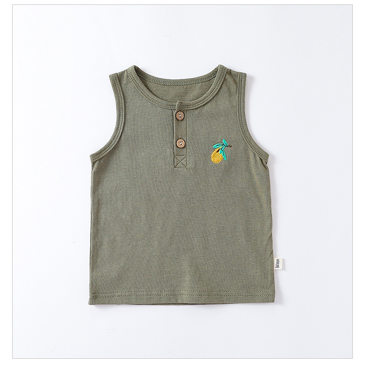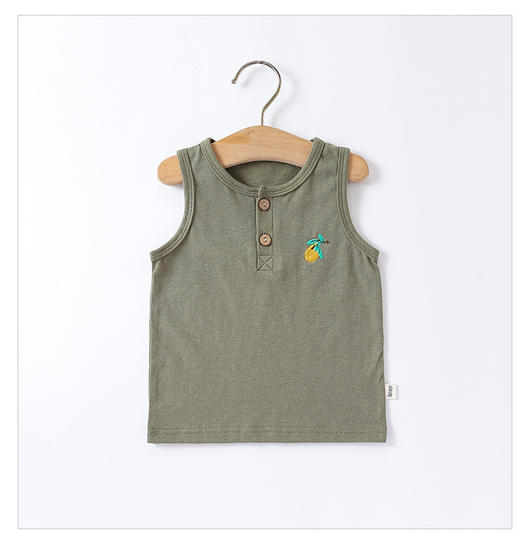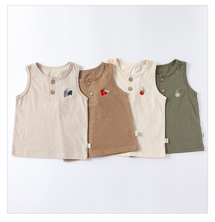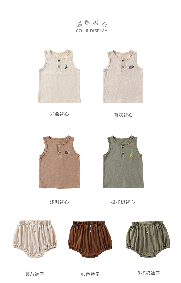 여름 새로운 어린이 조끼 세트 코튼 보이 아기 민소매 자수 티셔츠 아기 단색 반바지