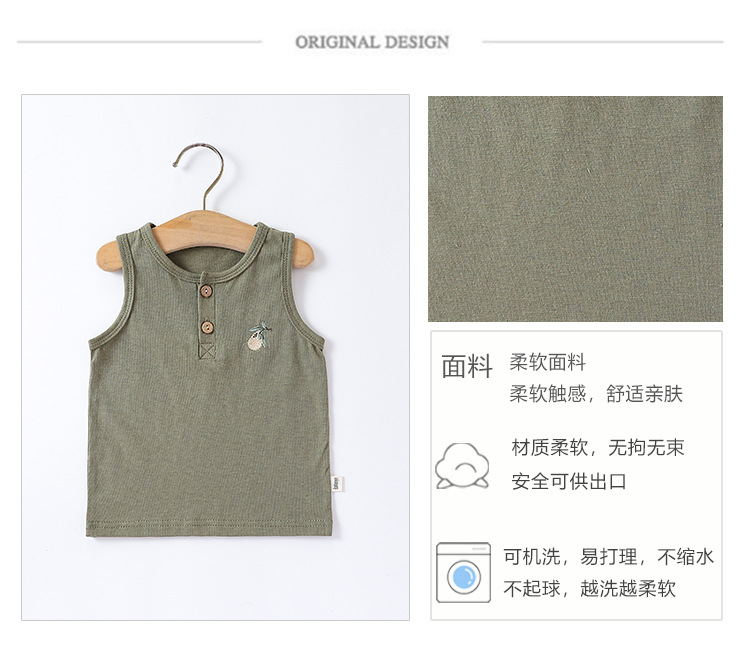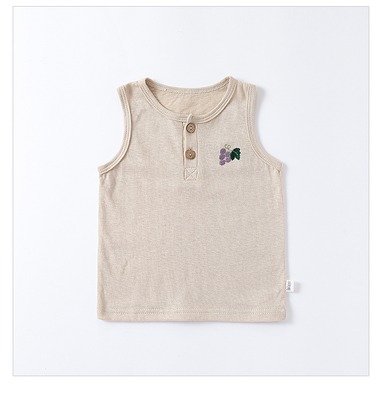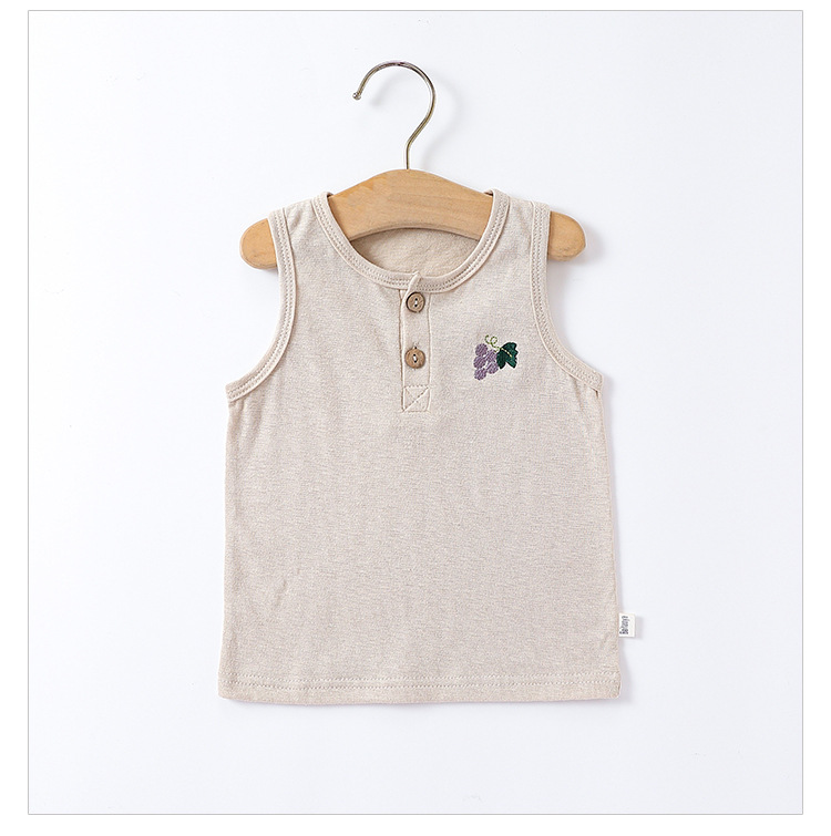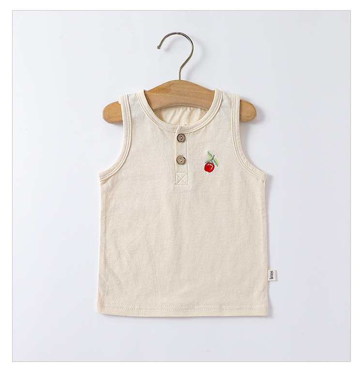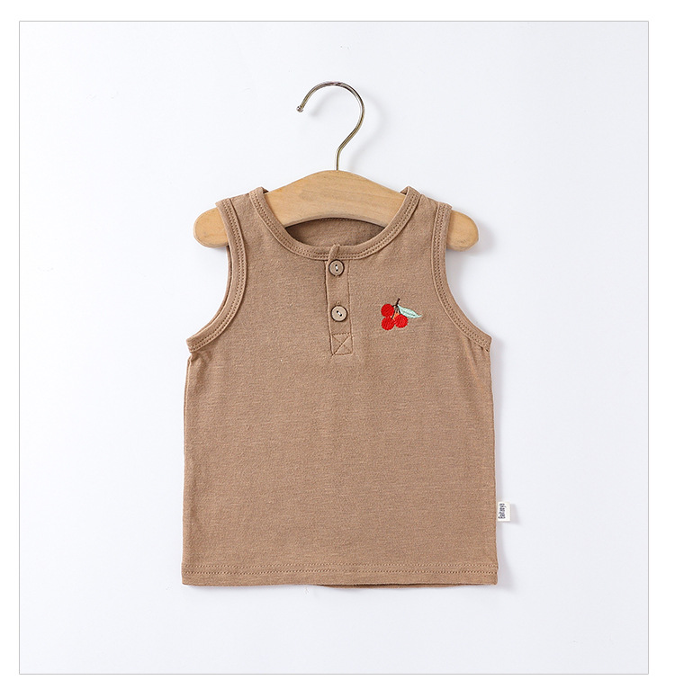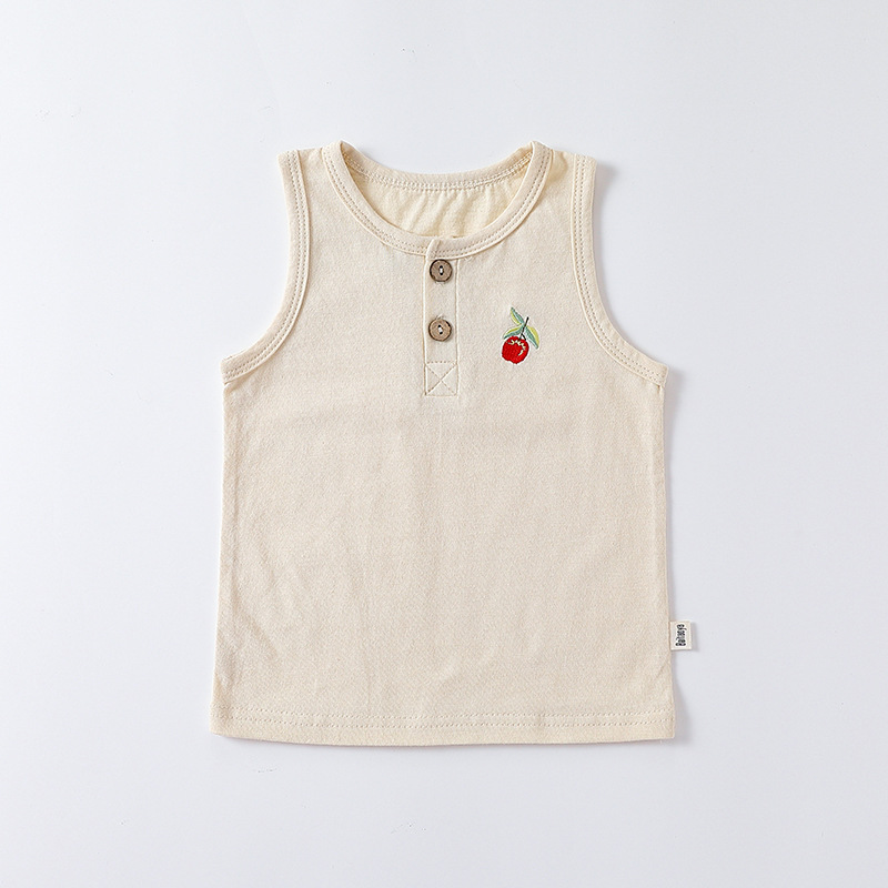 여름 새로운 어린이 조끼 세트 코튼 보이 아기 민소매 자수 티셔츠 아기 단색 반바지