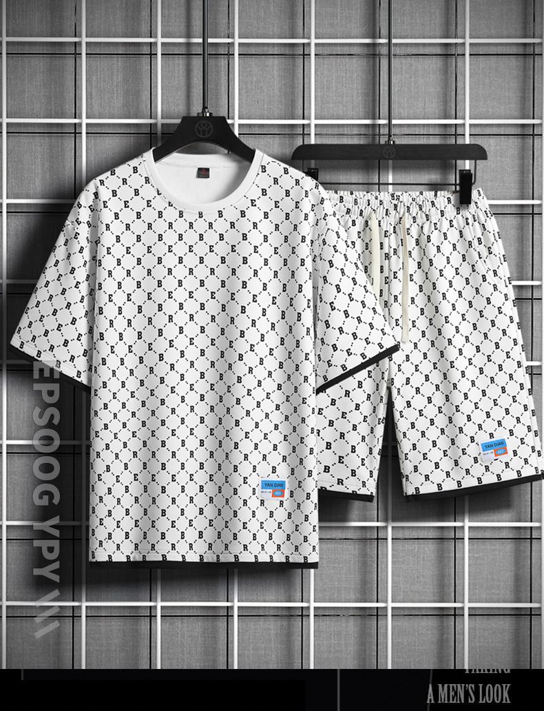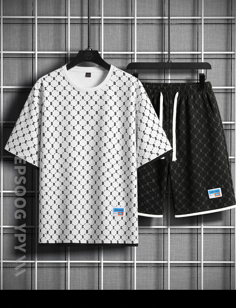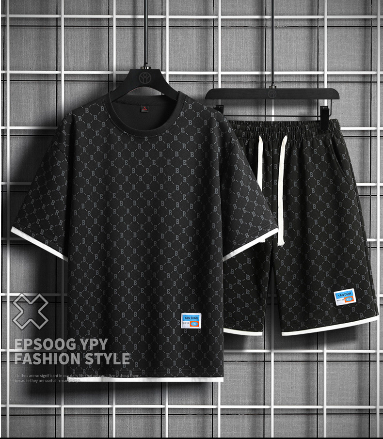 세트 남자 여름 중립 패션 짧은 T 느슨한 올 매치 최고 캐주얼 학생 반바지 스포츠 투피스 세트스토어 가기