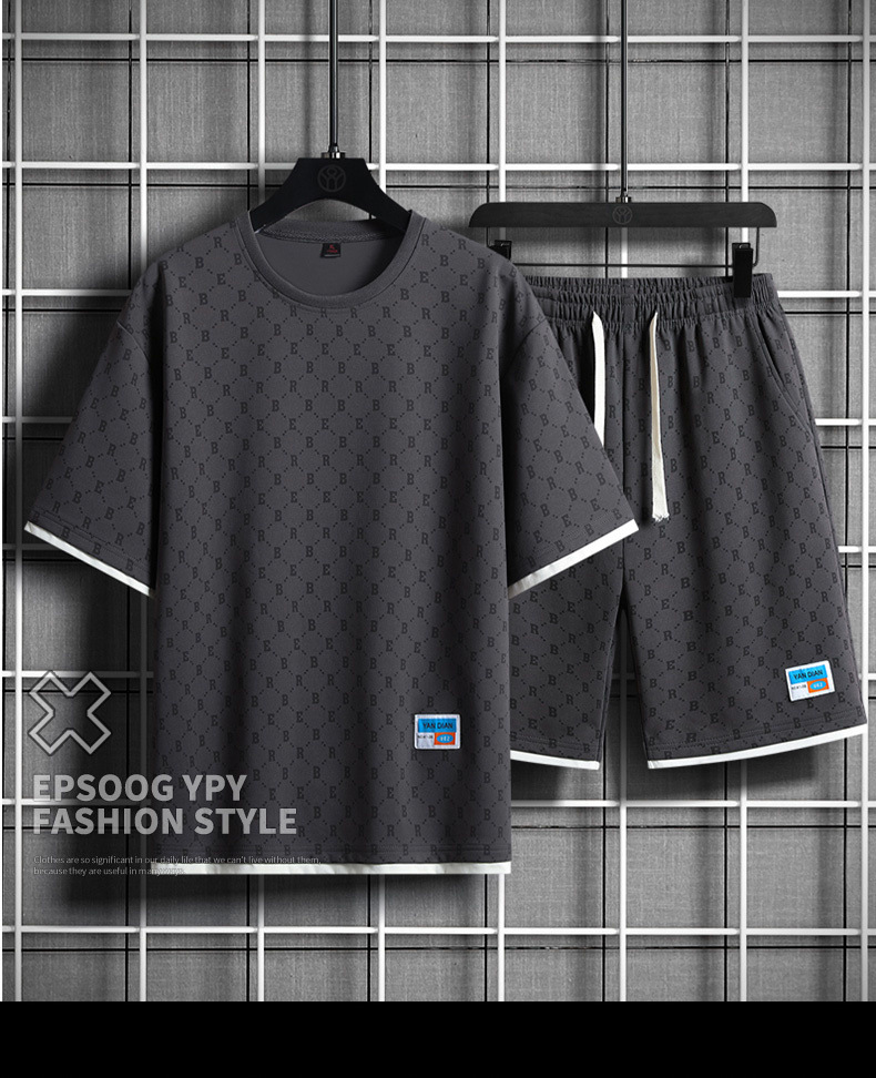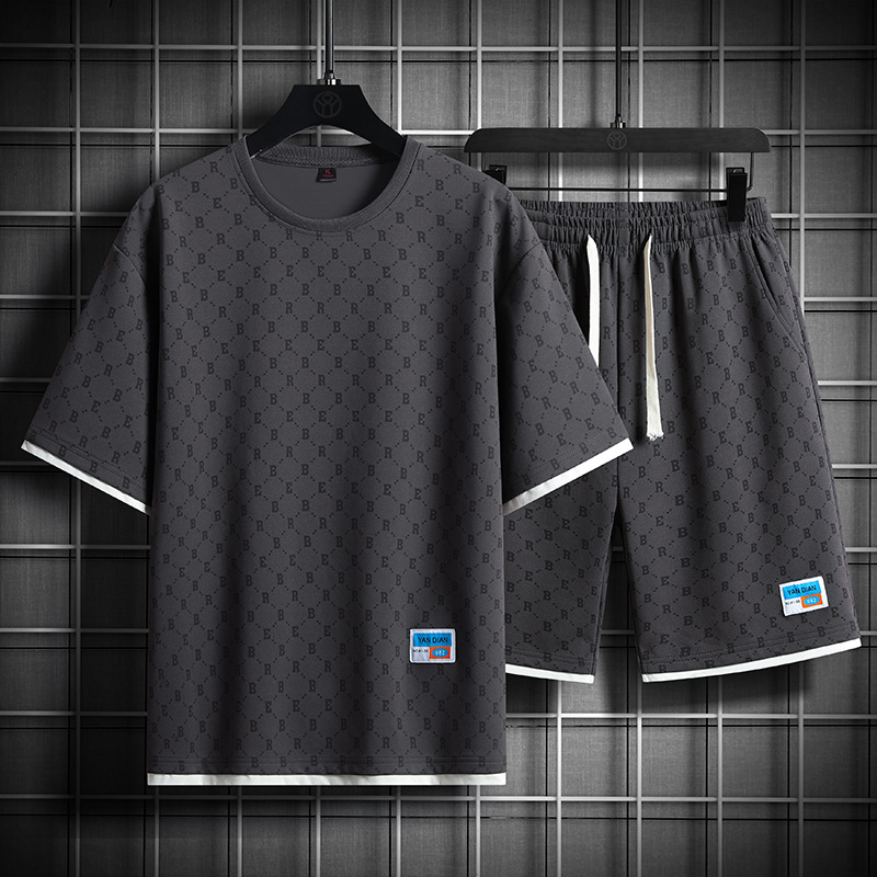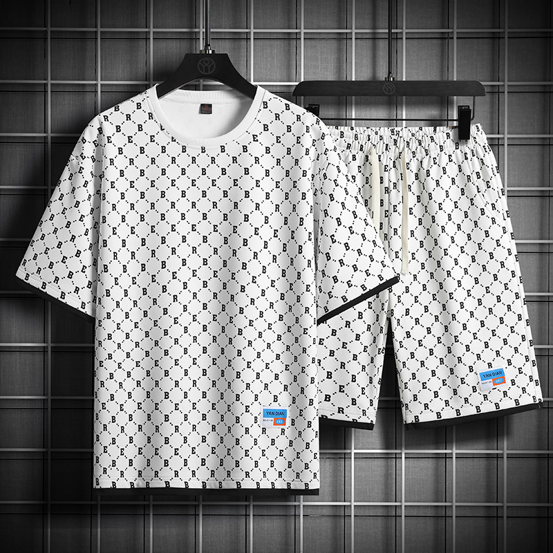 세트 남자 여름 중립 패션 짧은 T 느슨한 올 매치 최고 캐주얼 학생 반바지 스포츠 투피스 세트