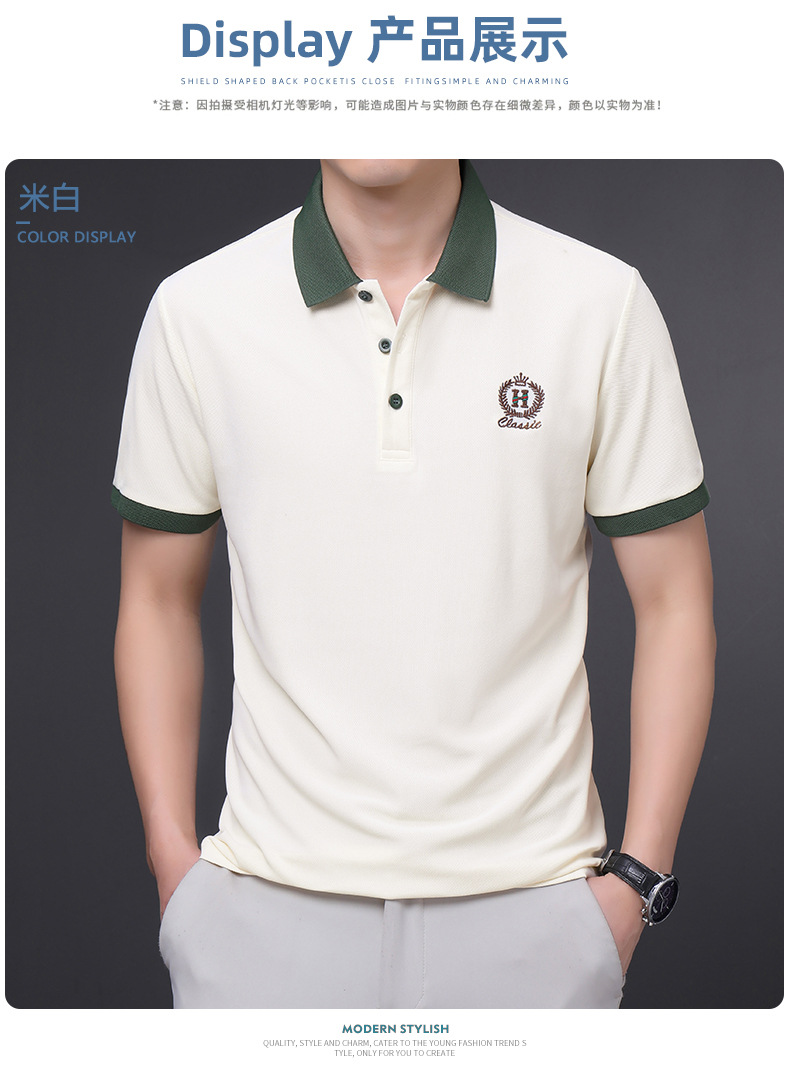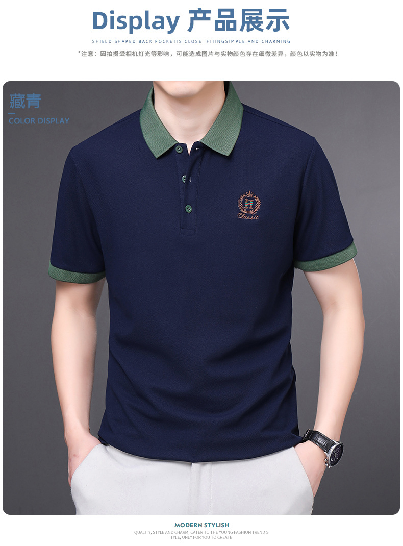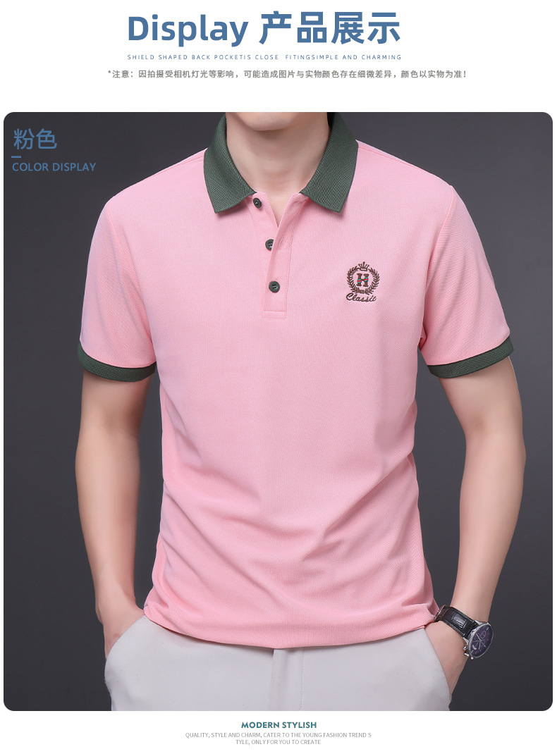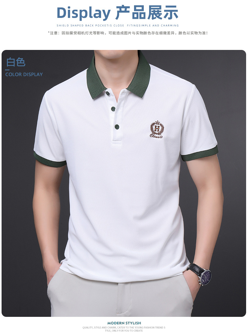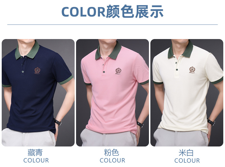여름 새로운 단색 캐주얼 남성 폴로 셔츠 중년 비즈니스 옷깃 짧은 소매 얇은 통기성 티셔츠 남성 도매스토어 가기