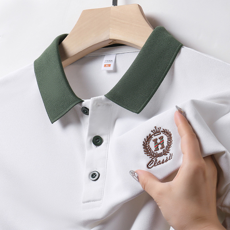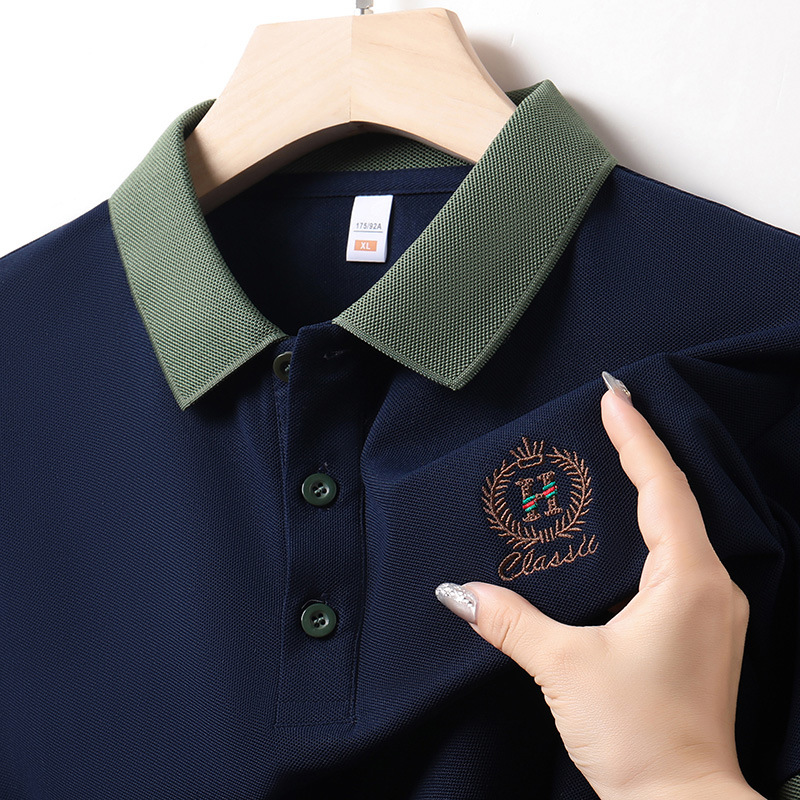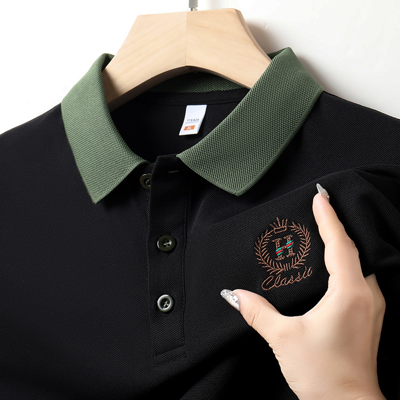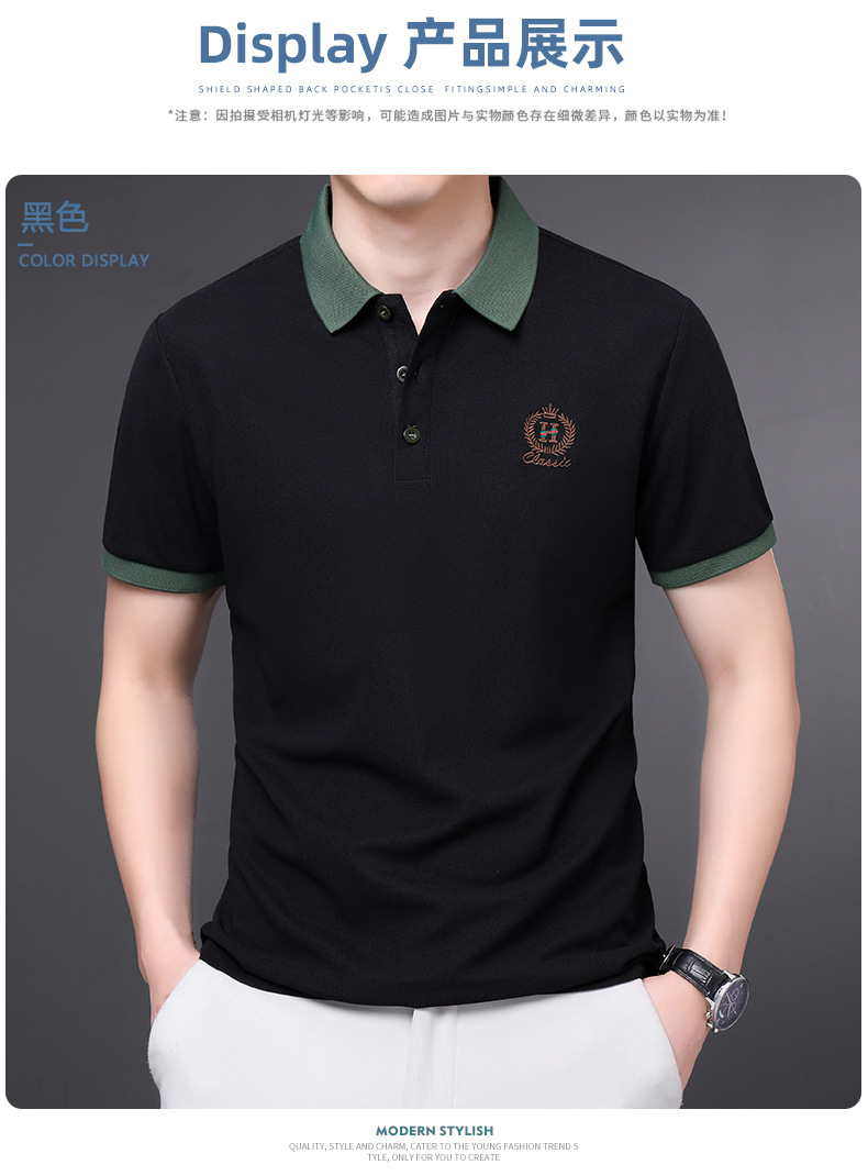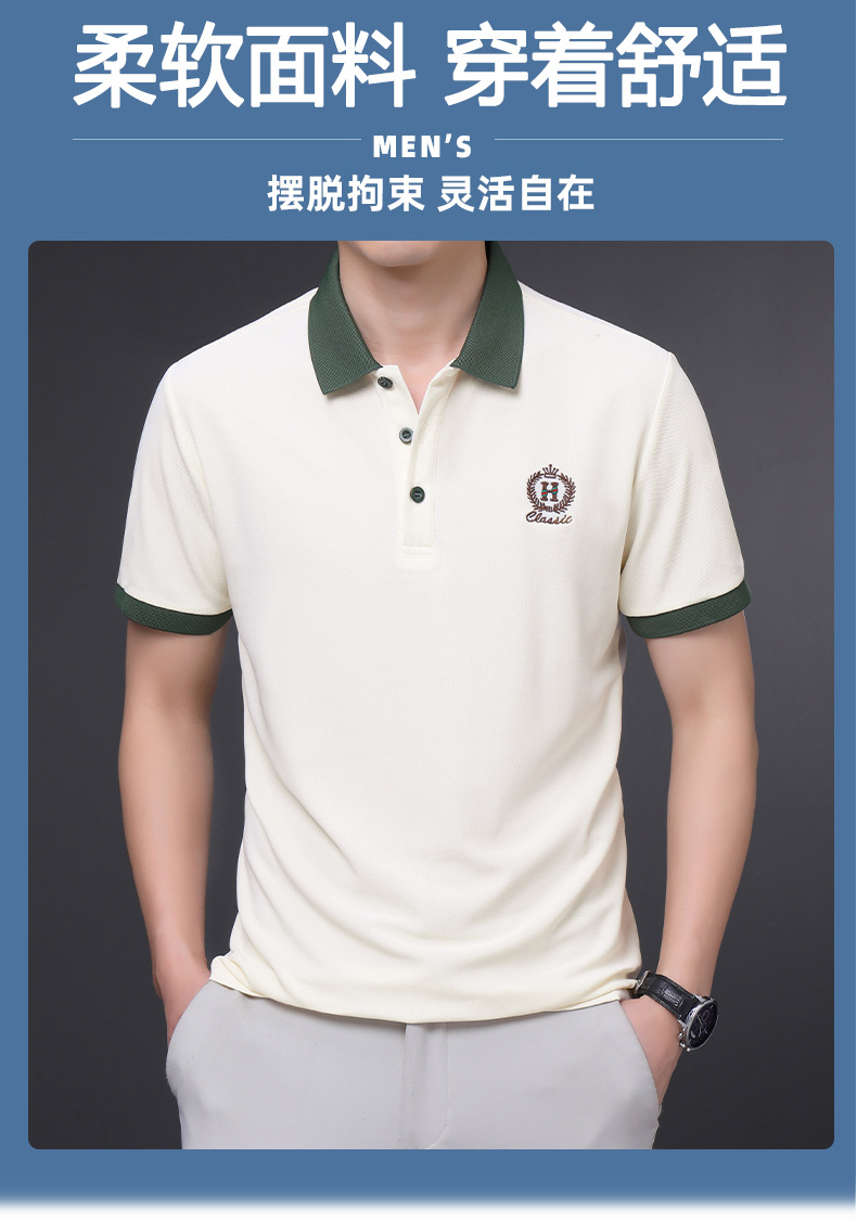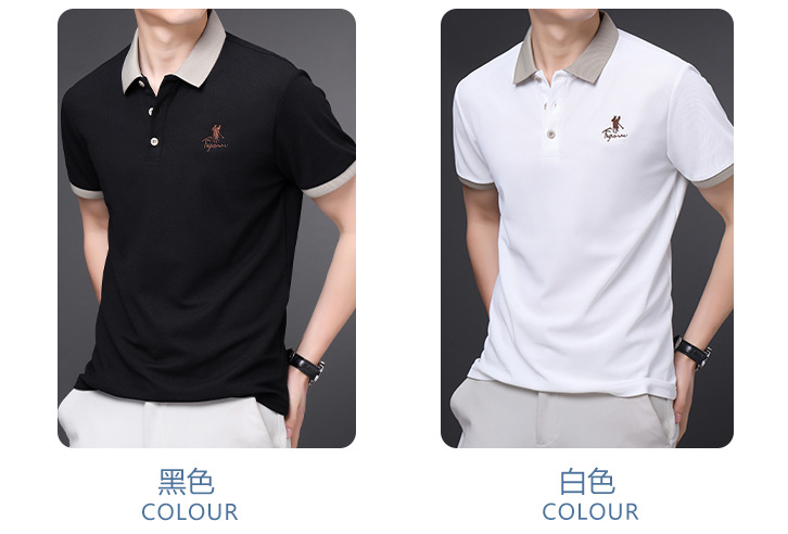 여름 새로운 단색 캐주얼 남성 폴로 셔츠 중년 비즈니스 옷깃 짧은 소매 얇은 통기성 티셔츠 남성 도매스토어 가기