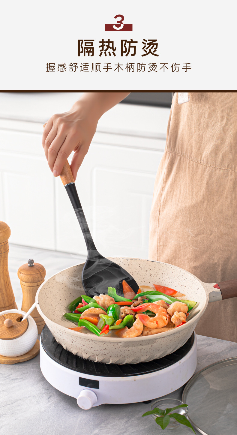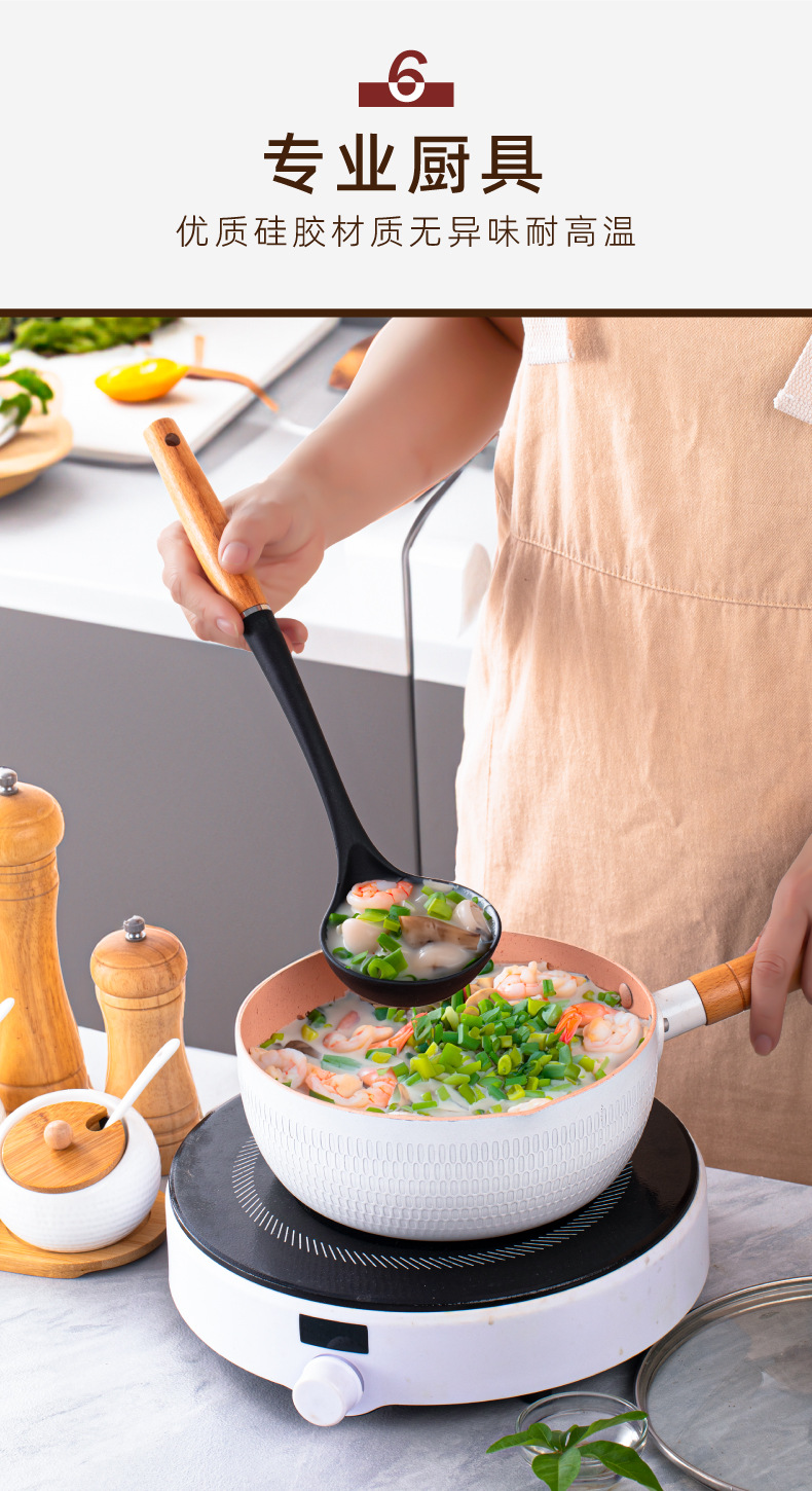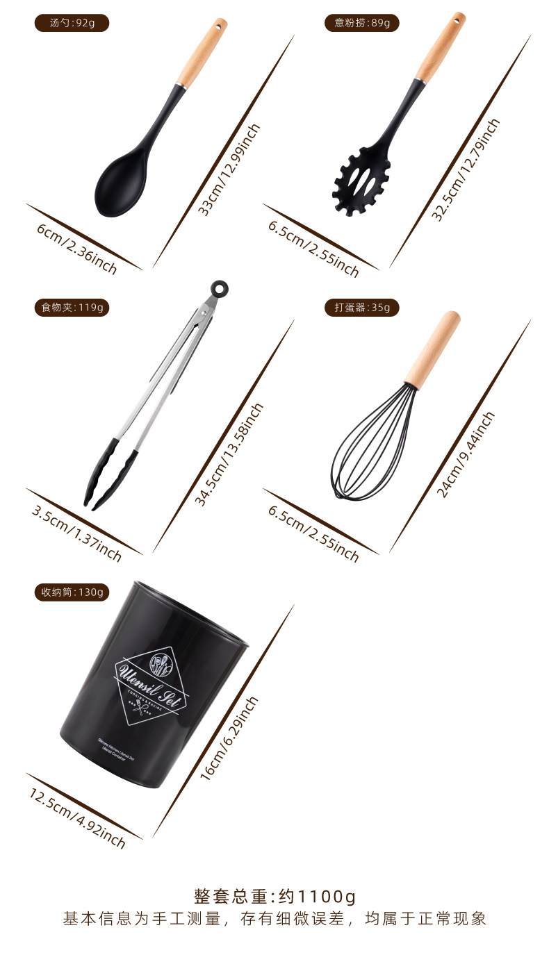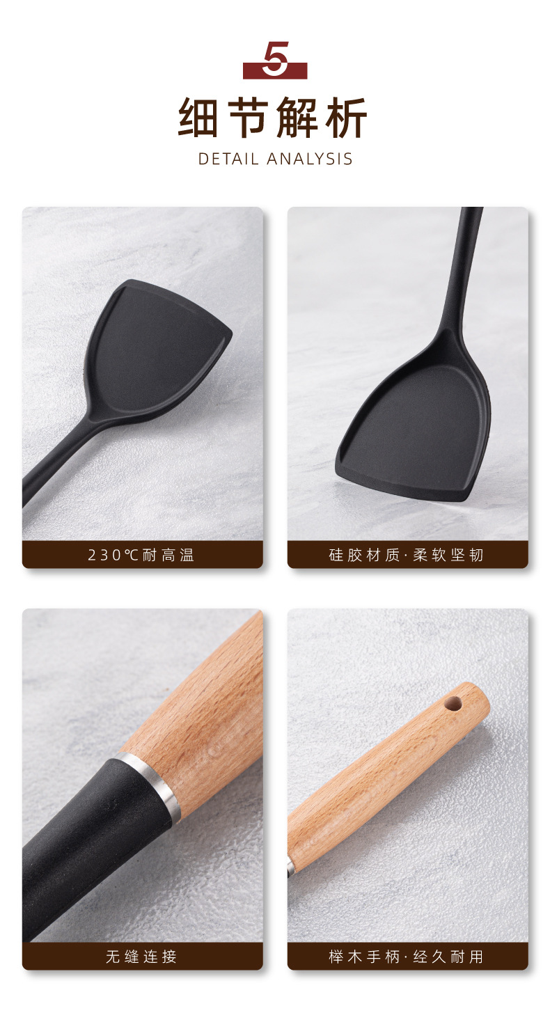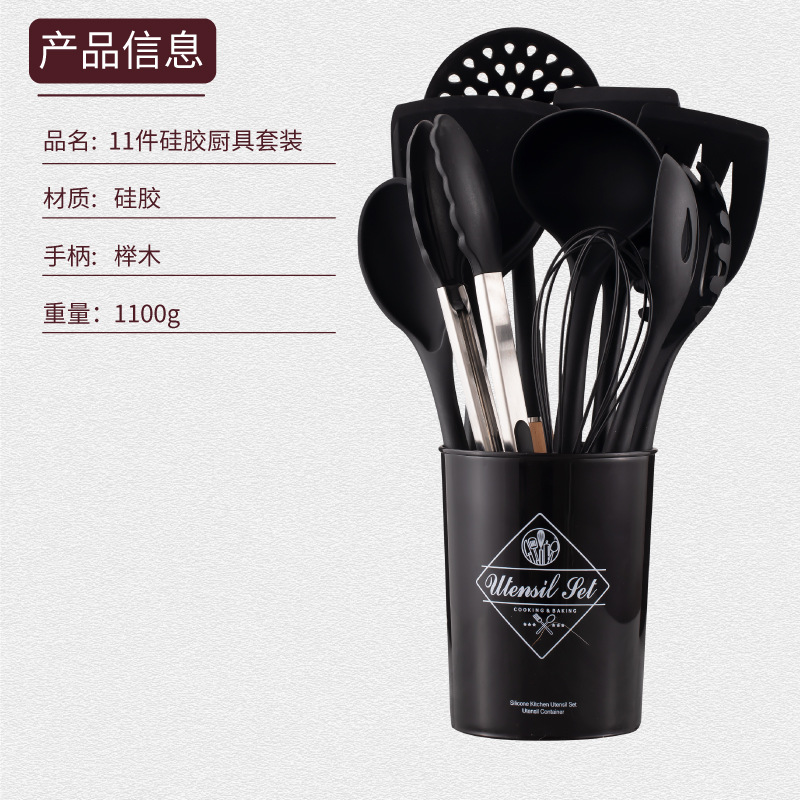 나무 손잡이 실리콘 주방용품 세트 11 조각 요리 숟가락 삽 유럽과 미국 스타일 간단한 긁지 않는 냄비 주방 도구 세트