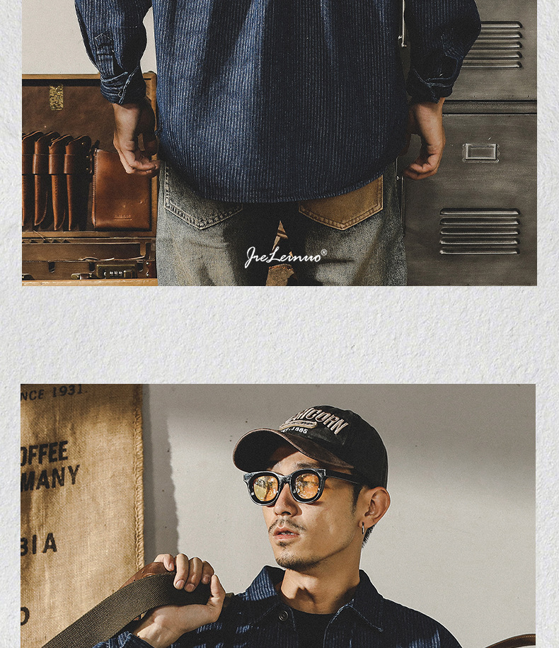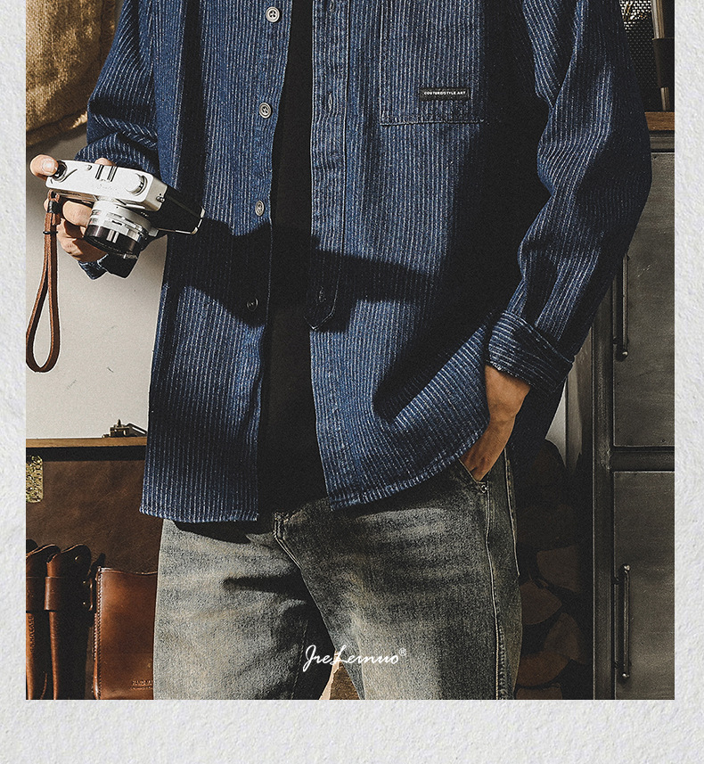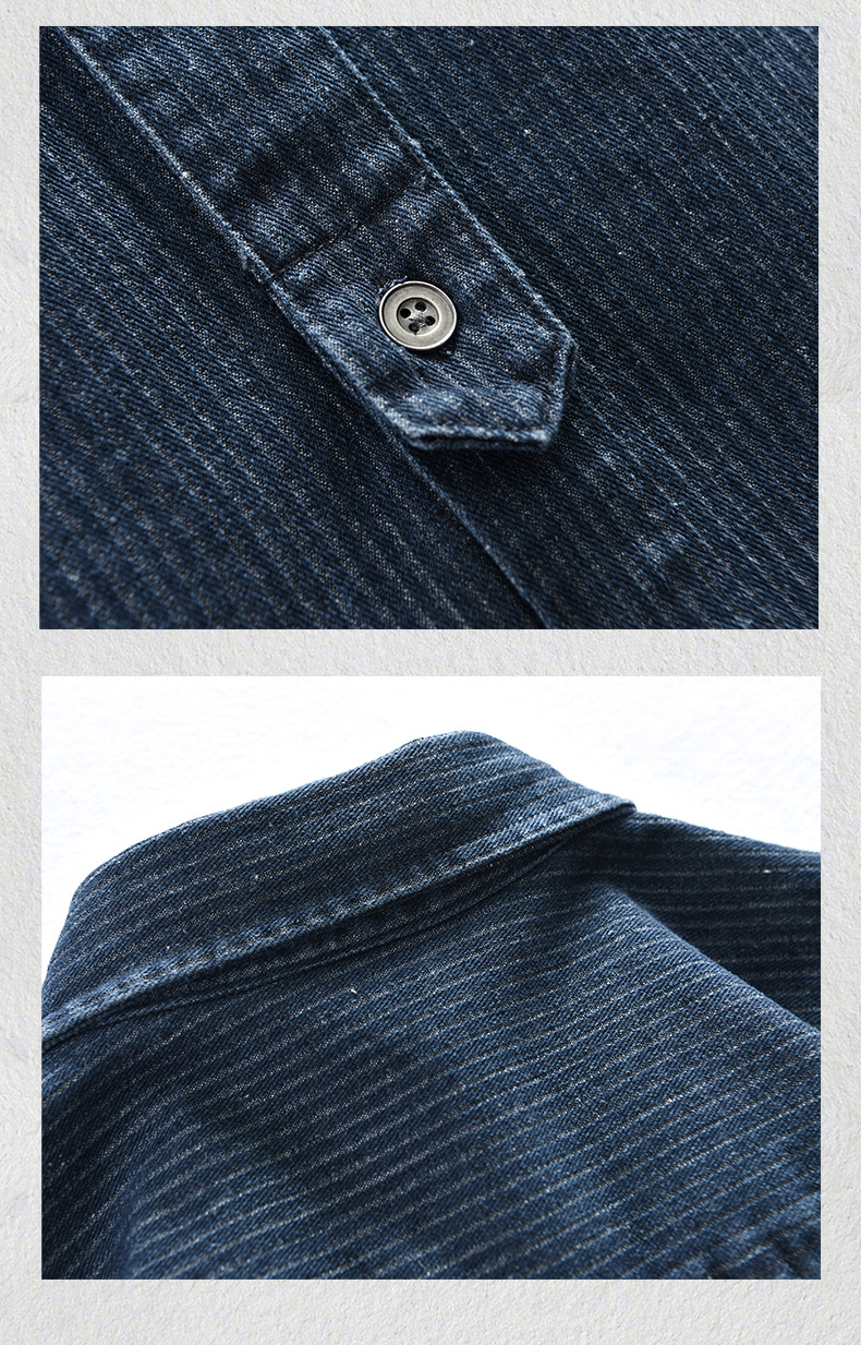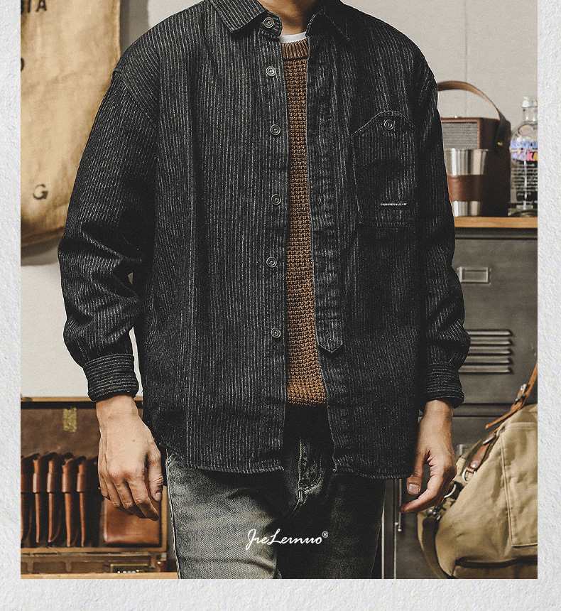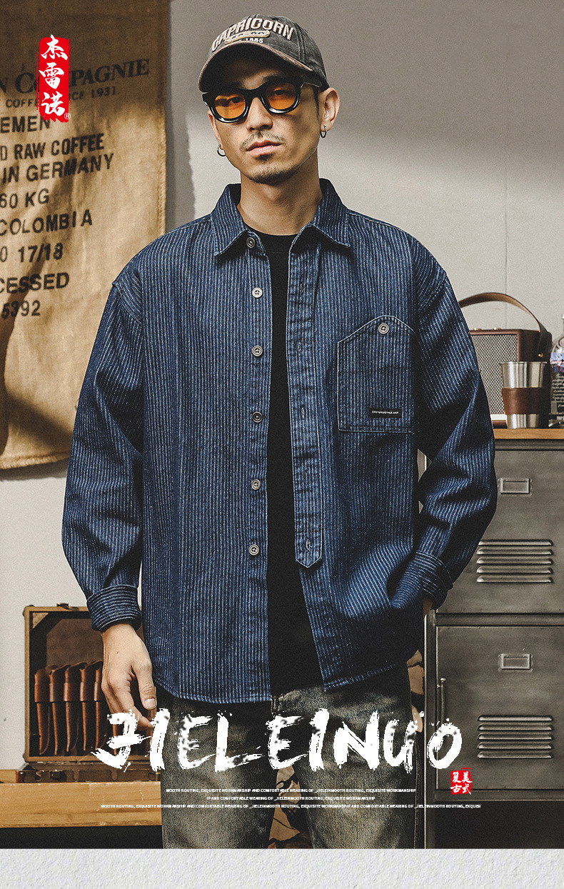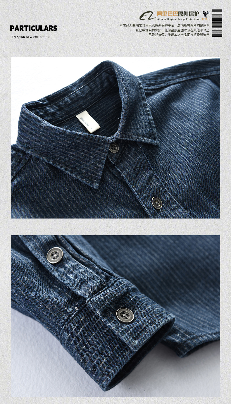Jie Renault 320g 무거운 줄무늬 작업 셔츠 남자의 긴 소매 봄과 가을 두꺼운 미국 캐주얼 느슨한 골동품 셔츠